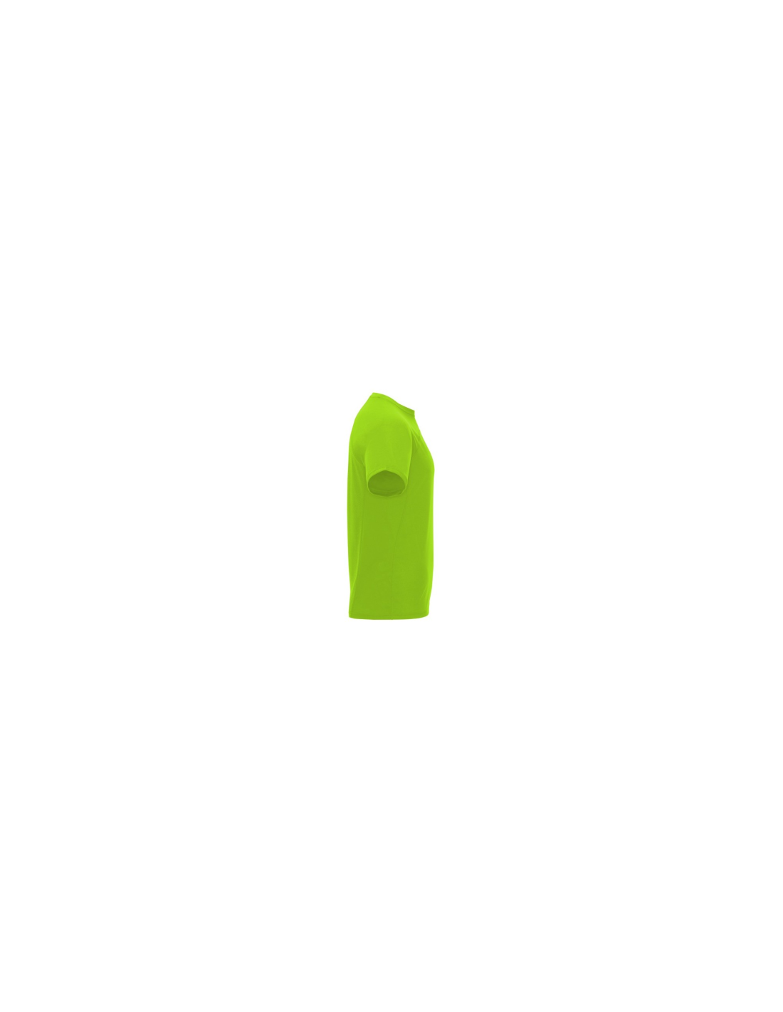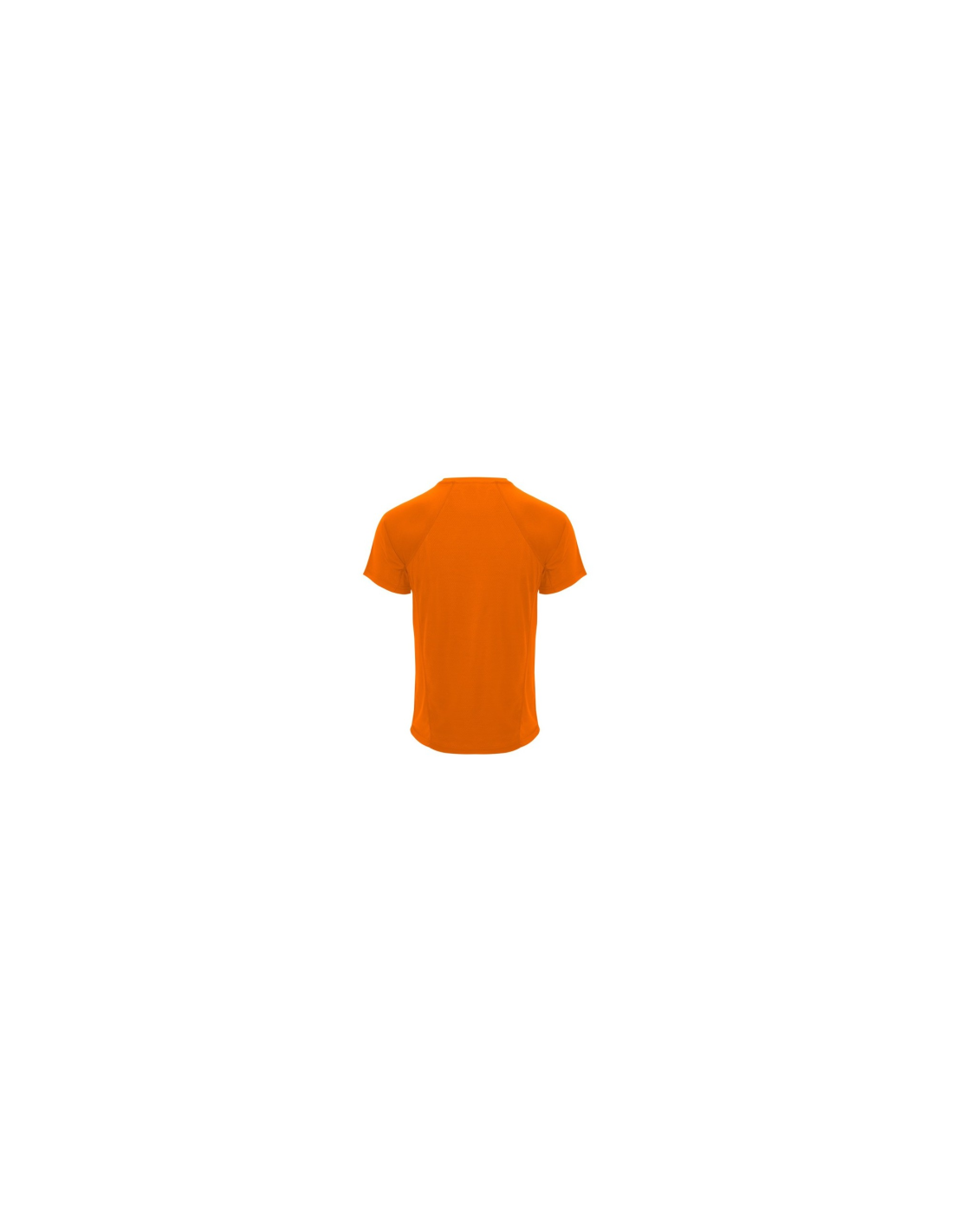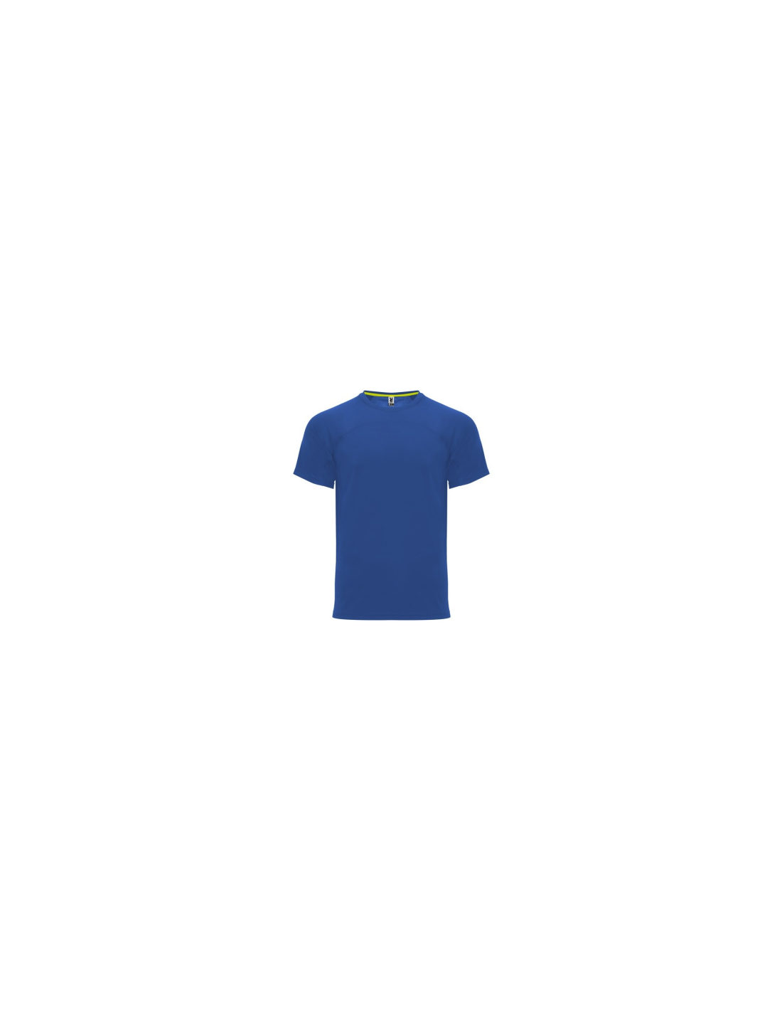 Koszulka techniczna unisex z krótkim rękawem. 1. Okrągły kołnierzyk z wzmocnionymi, krytymi szwami na karczku w kolorze żółtym fluorescencyjnym. 2. Połączenie dwóch materiałów polistrowych na plecach.