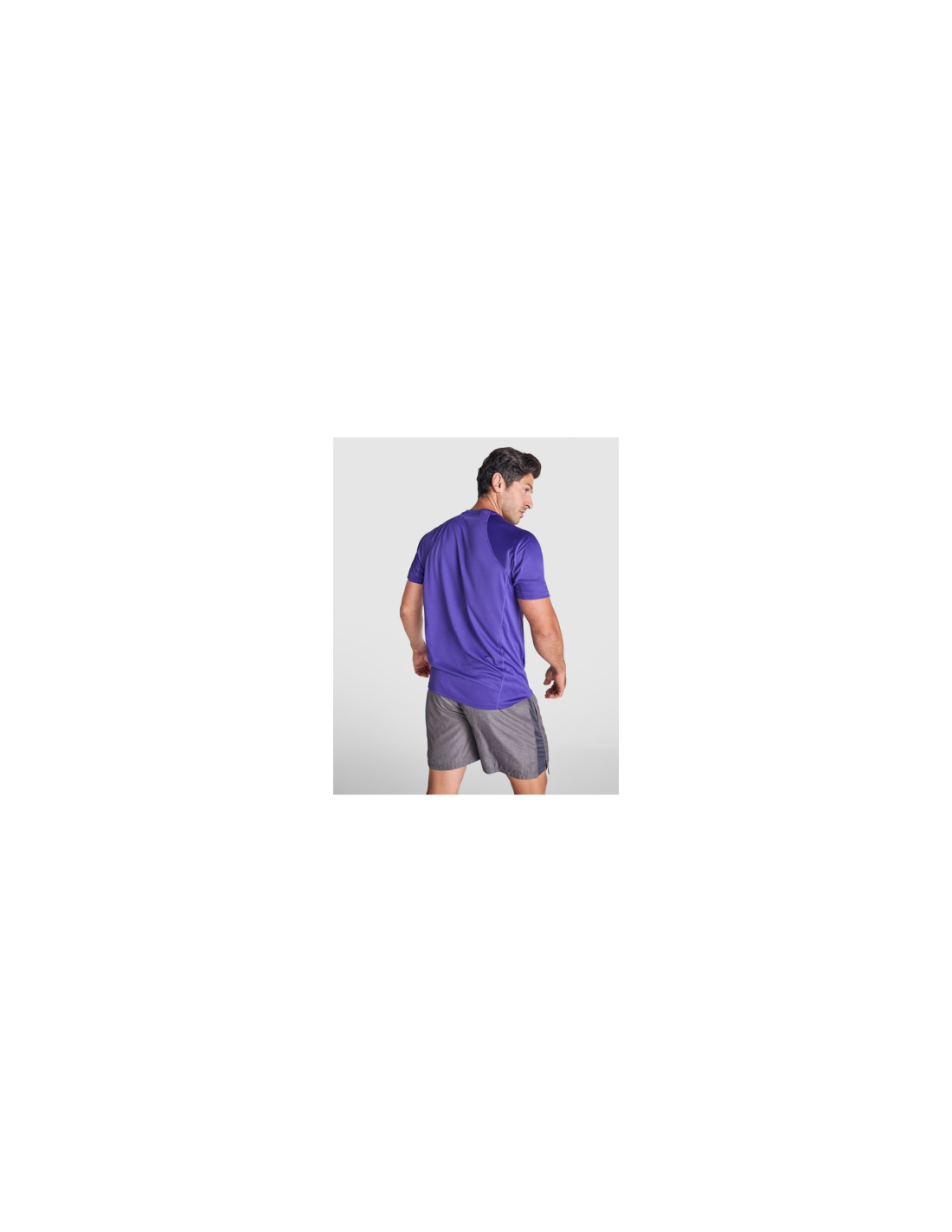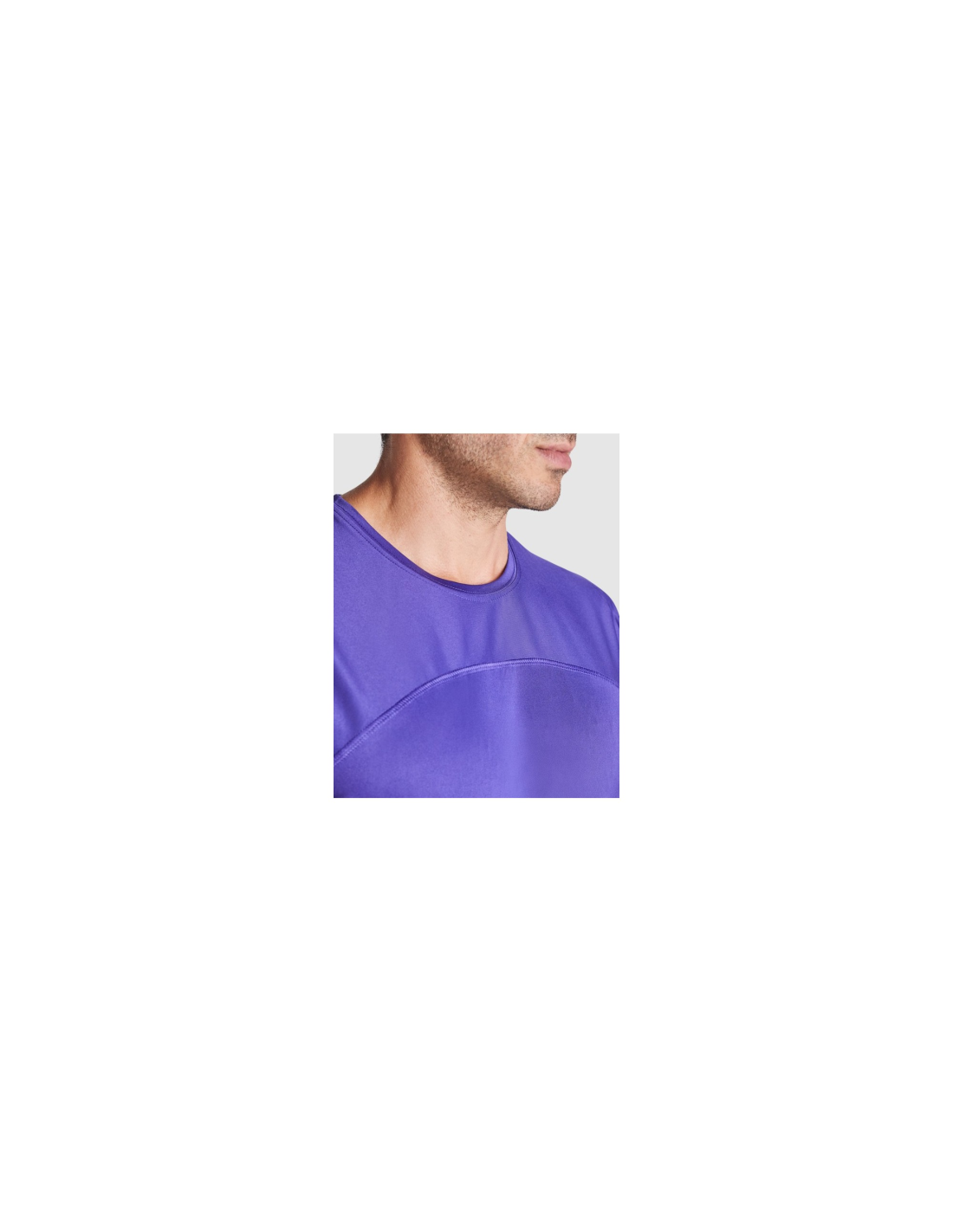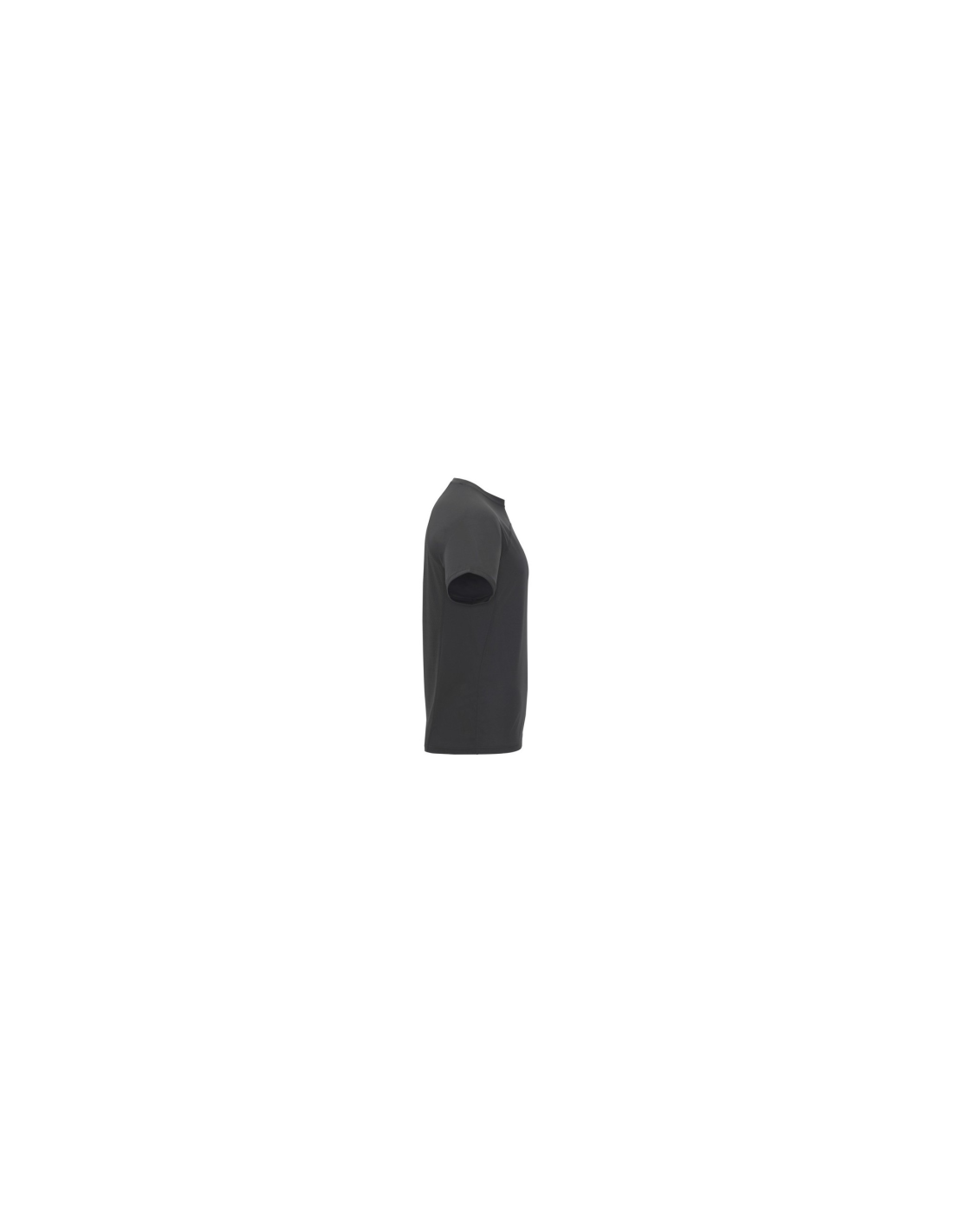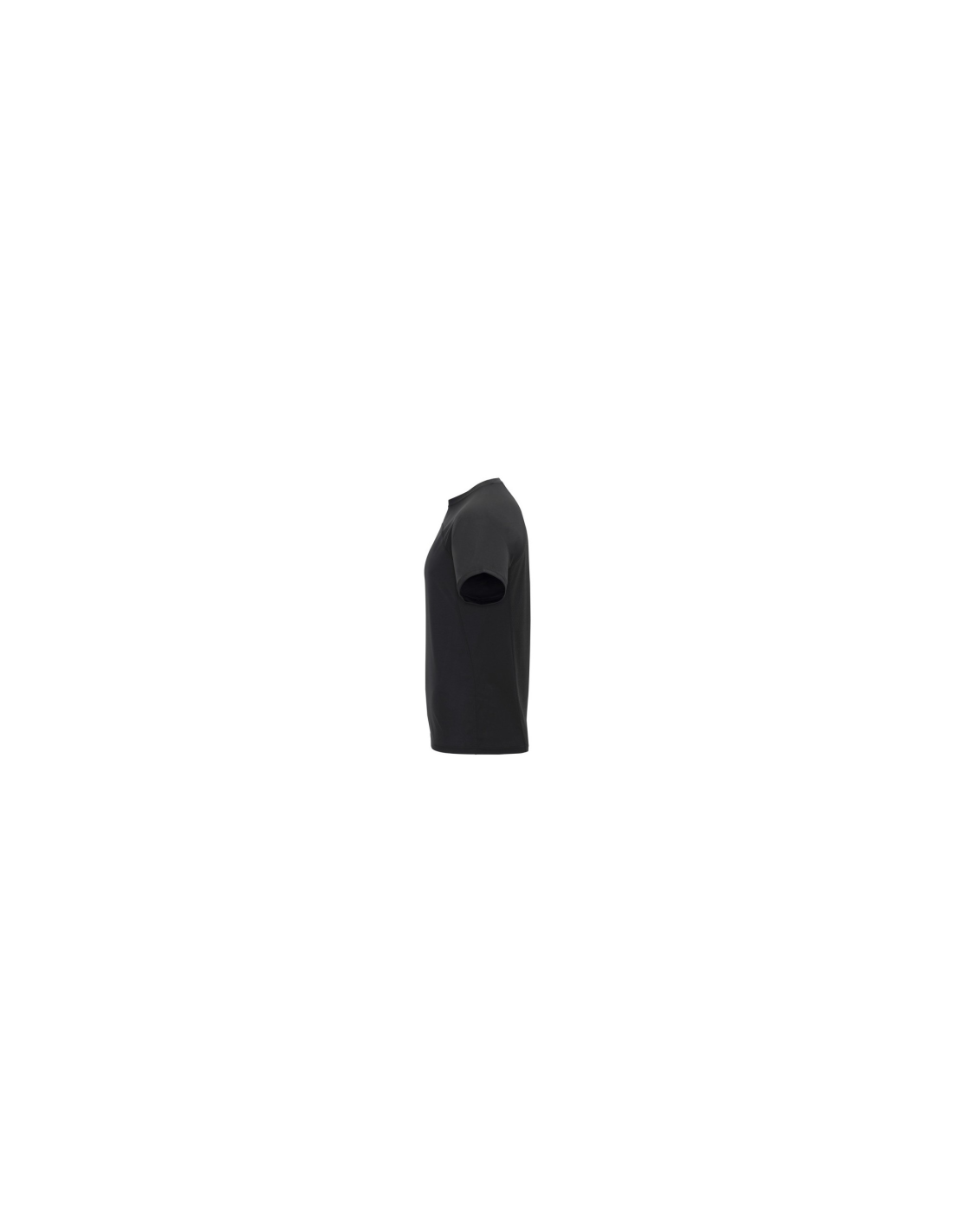 Koszulka techniczna unisex z krótkim rękawem. 1. Okrągły kołnierzyk z wzmocnionymi, krytymi szwami na karczku w kolorze żółtym fluorescencyjnym. 2. Połączenie dwóch materiałów polistrowych na plecach.