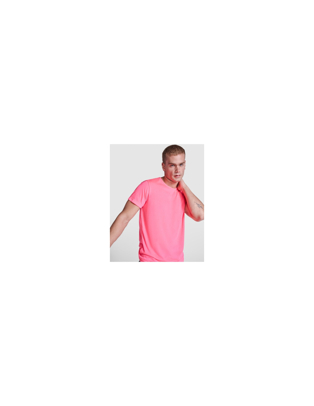 Koszulka z krótkim rękawem. Okrągły dekolt, wzmocnione kryte szwy. Fluorescencyjne kolory. Koszulka wykonana z tkaniny poliestrowej przypominającej w dotyku bawełnę.