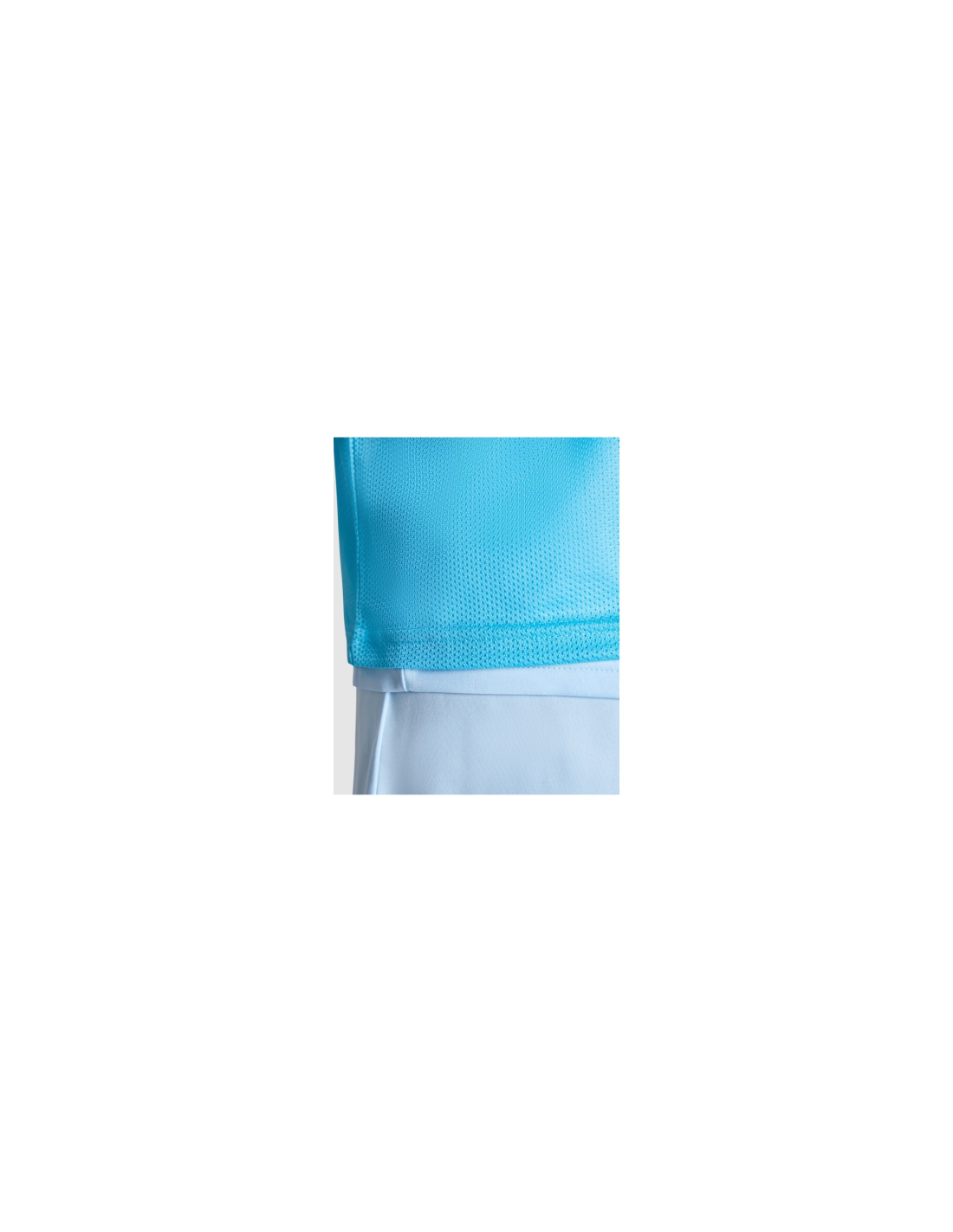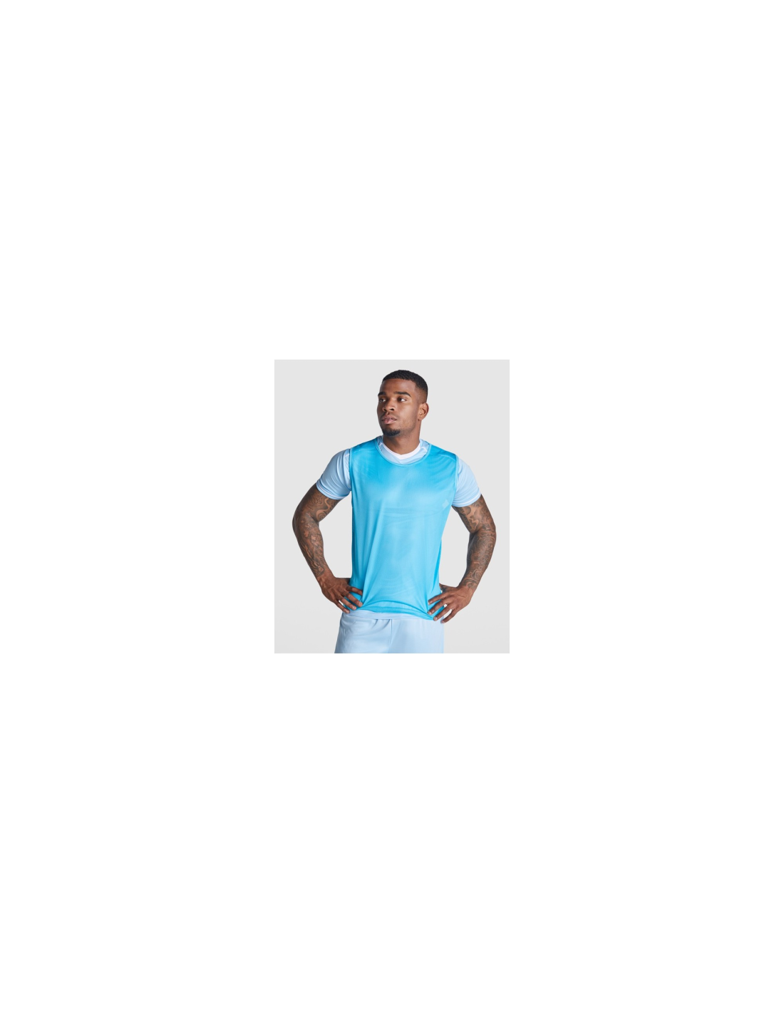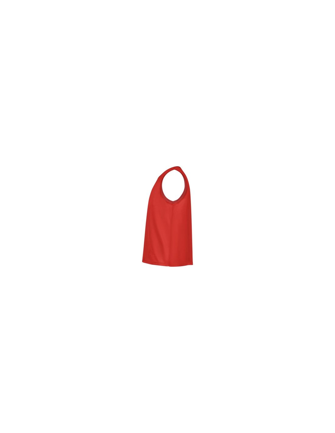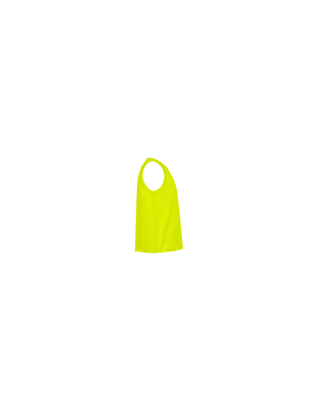 Oddychająca sportowa kamizelka uniseks. · Naszycie lamówki z tej samej tkaniny w otworach rękawów i szyi. · Podwójne szwy na obszyciu.