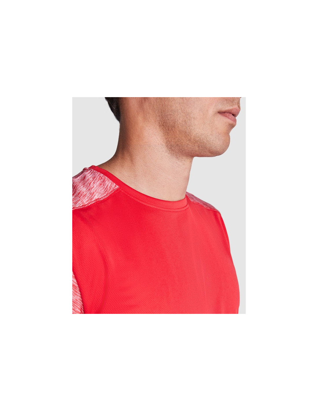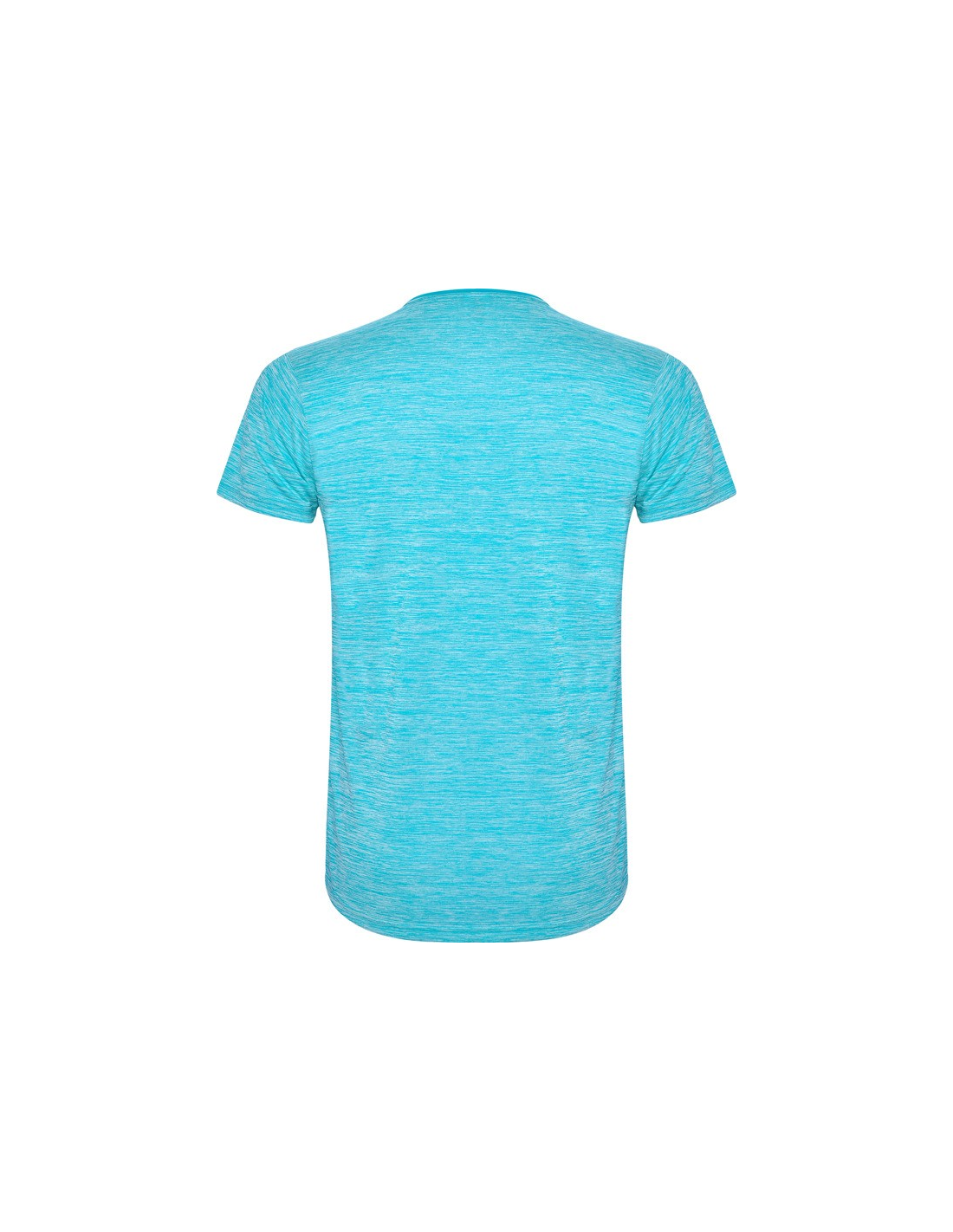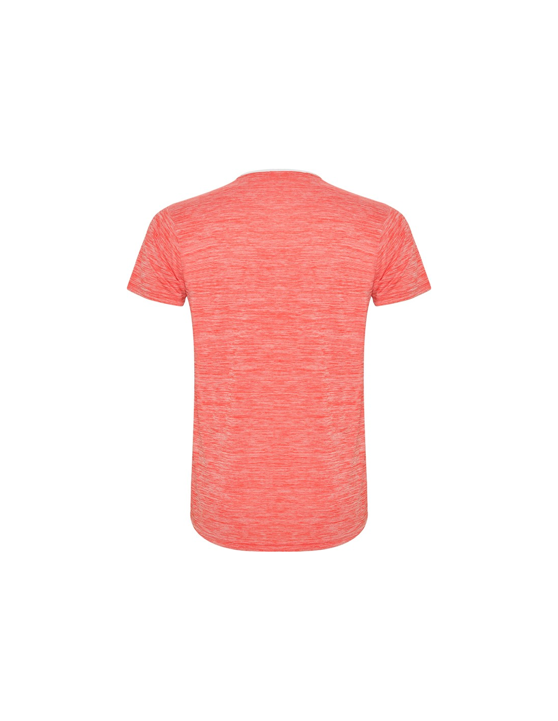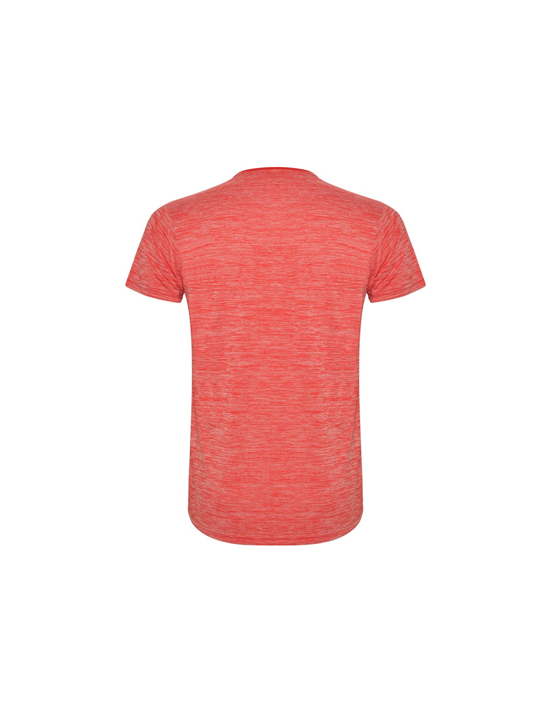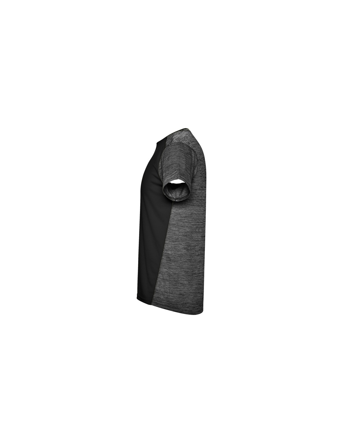 Koszulka techniczna z krótkim rękawem. 1,- Okrągły dekolt. 2.- Połączenie dwóch materiałów poliestrowych. 3,- Główna tkanina o strukturze bird´s eye, tylna część wykonana z Space Dye. 4.- Delikatnie wydłużony tył.