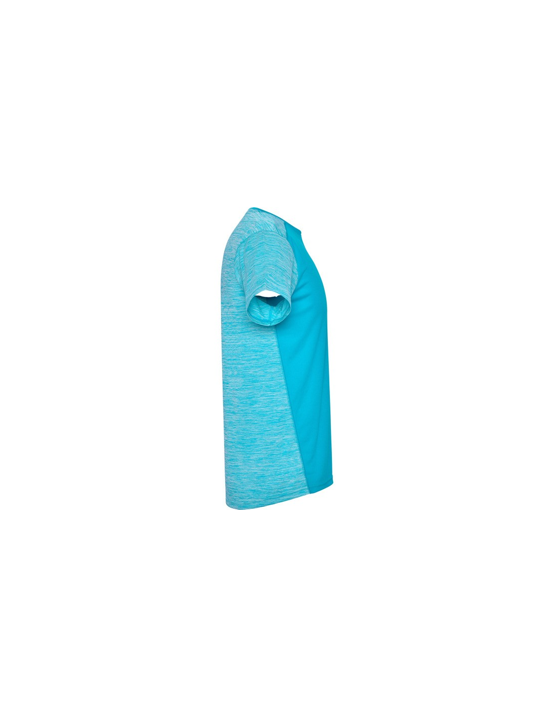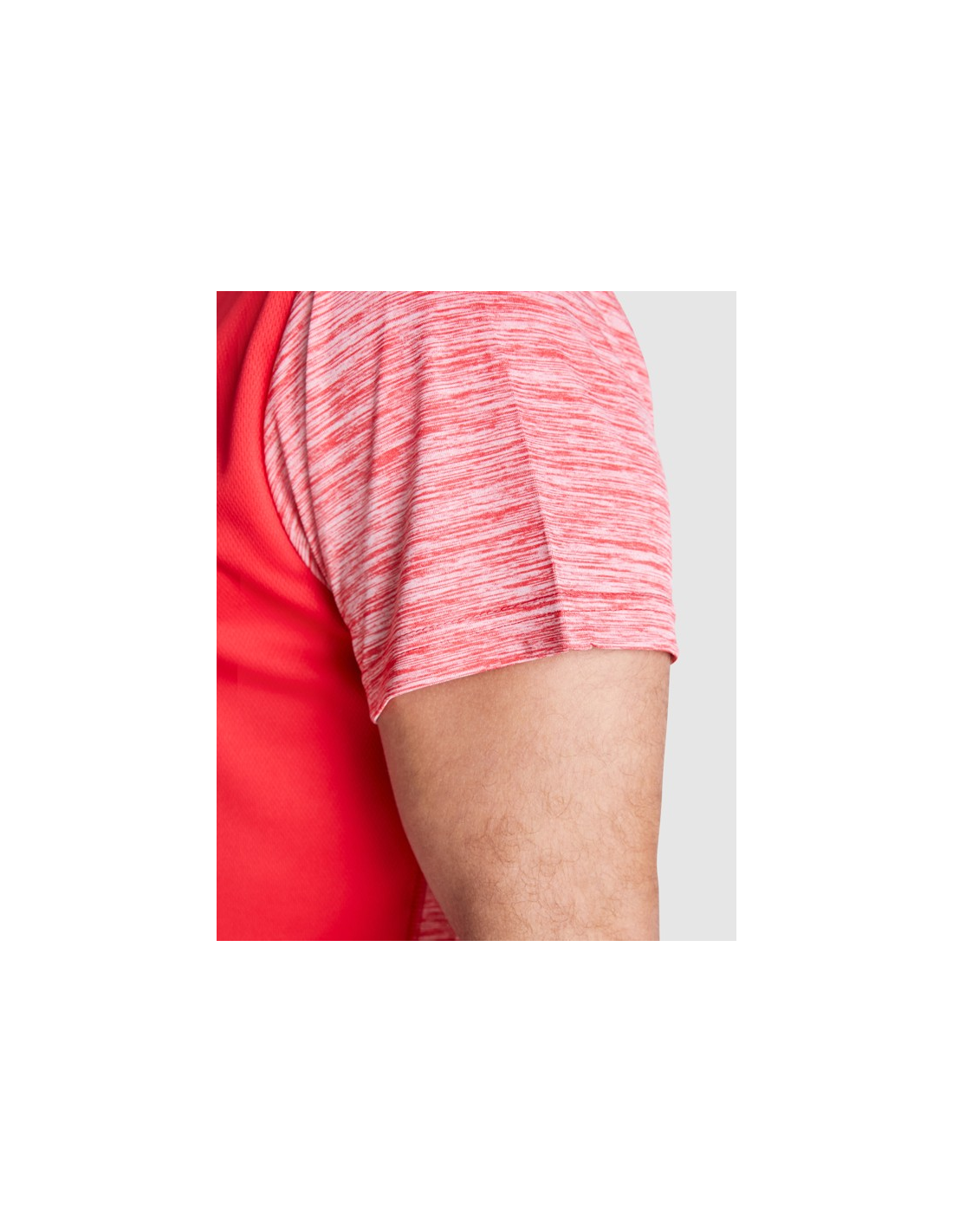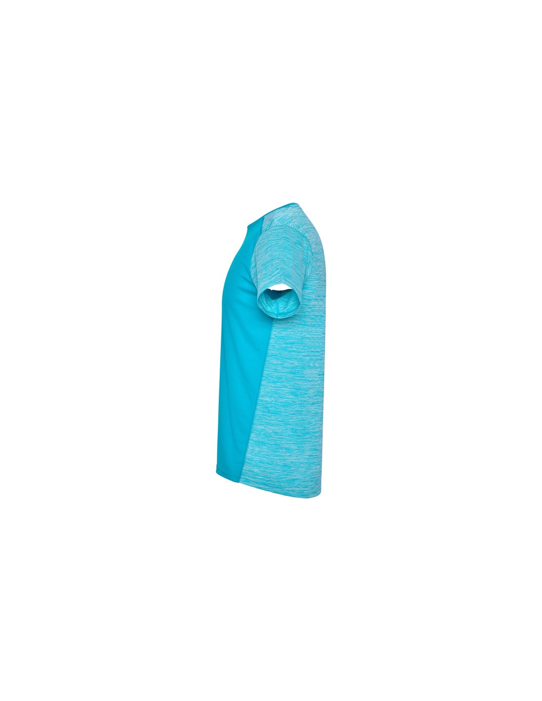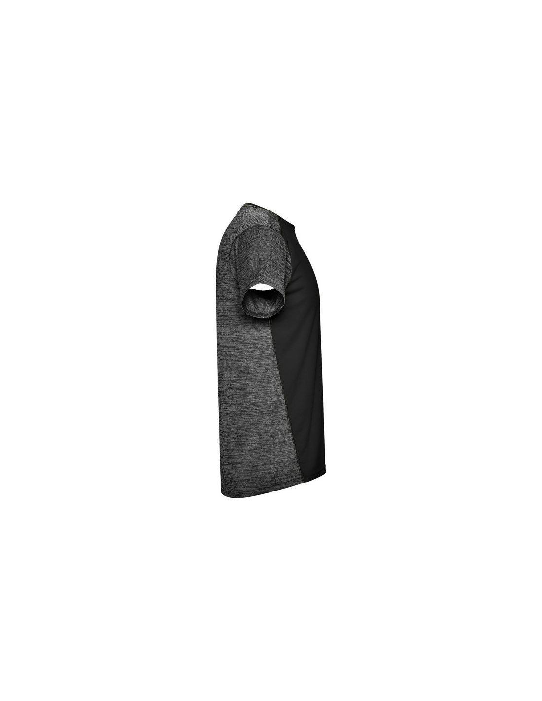 Koszulka techniczna z krótkim rękawem. 1,- Okrągły dekolt. 2.- Połączenie dwóch materiałów poliestrowych. 3,- Główna tkanina o strukturze bird´s eye, tylna część wykonana z Space Dye. 4.- Delikatnie wydłużony tył.