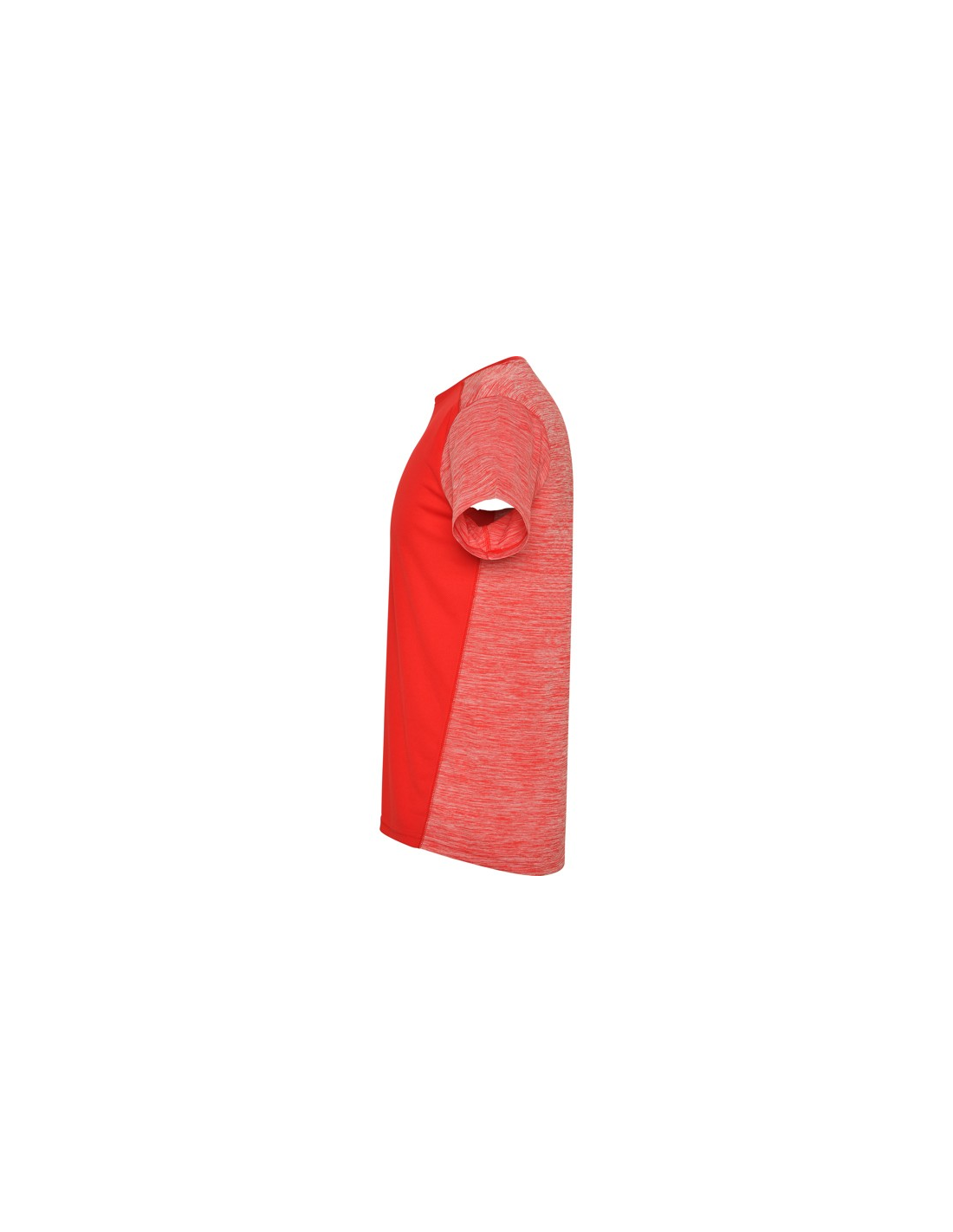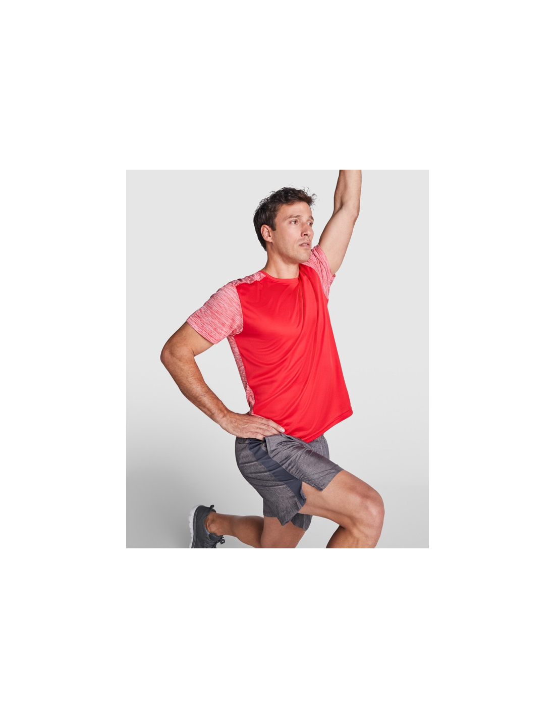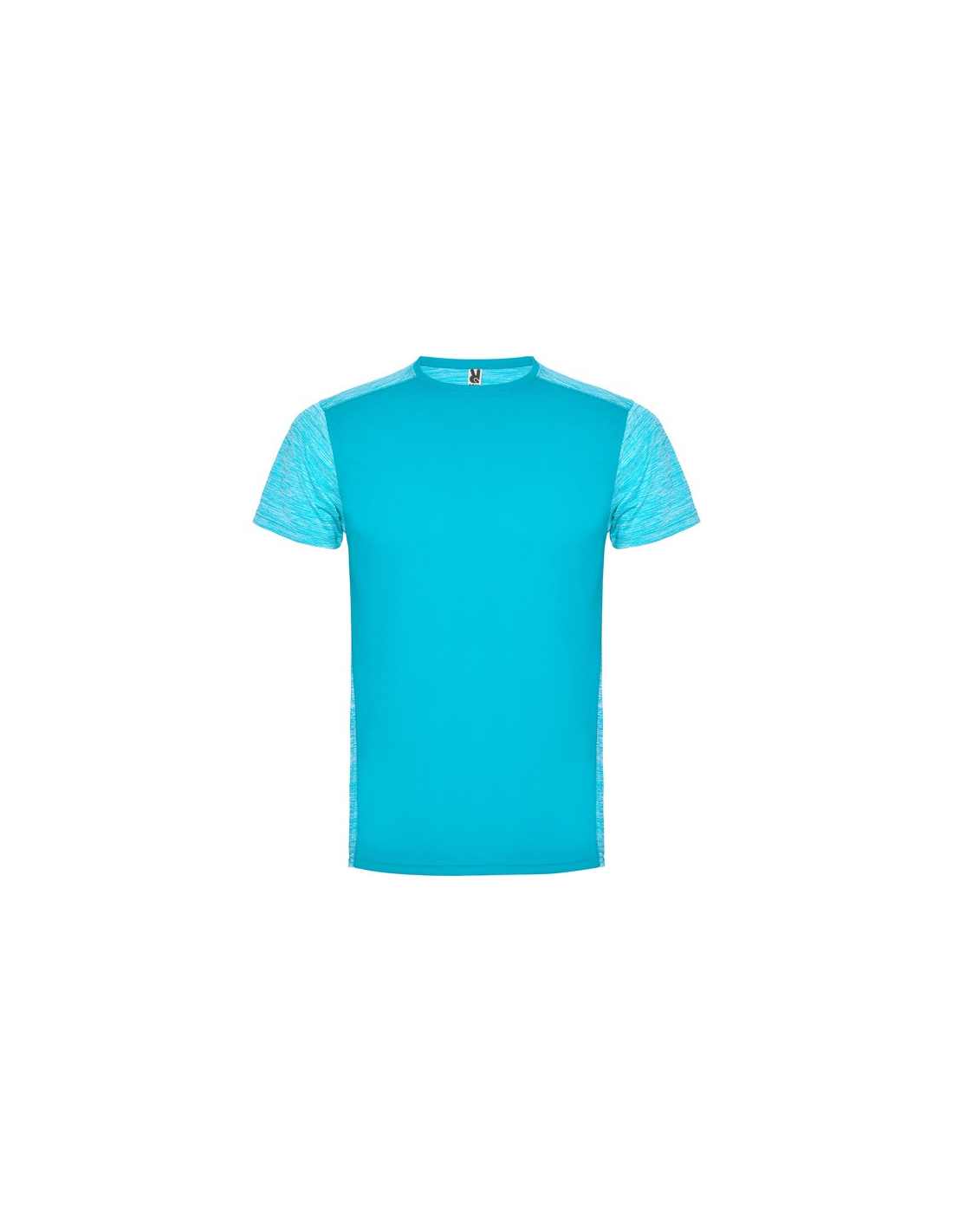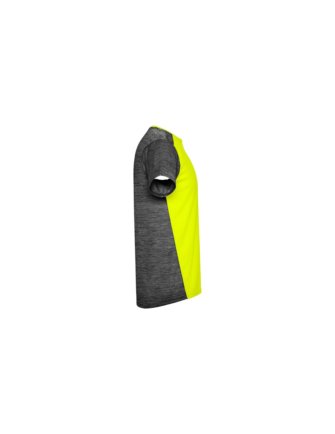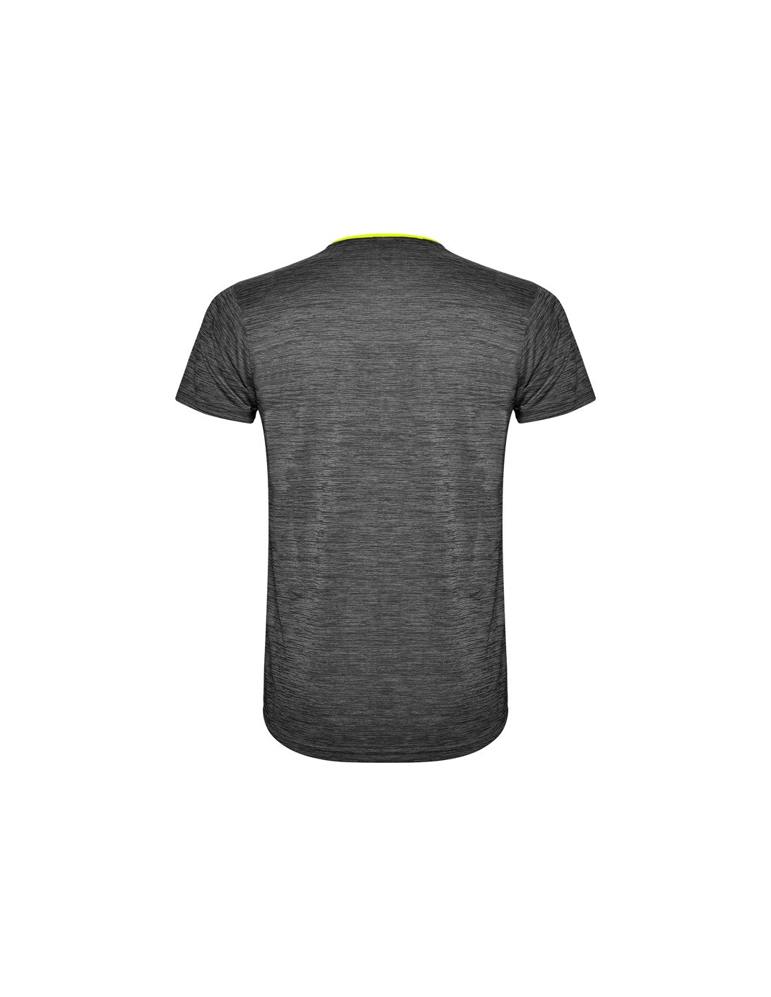 Koszulka techniczna z krótkim rękawem. 1,- Okrągły dekolt. 2.- Połączenie dwóch materiałów poliestrowych. 3,- Główna tkanina o strukturze bird´s eye, tylna część wykonana z Space Dye. 4.- Delikatnie wydłużony tył.