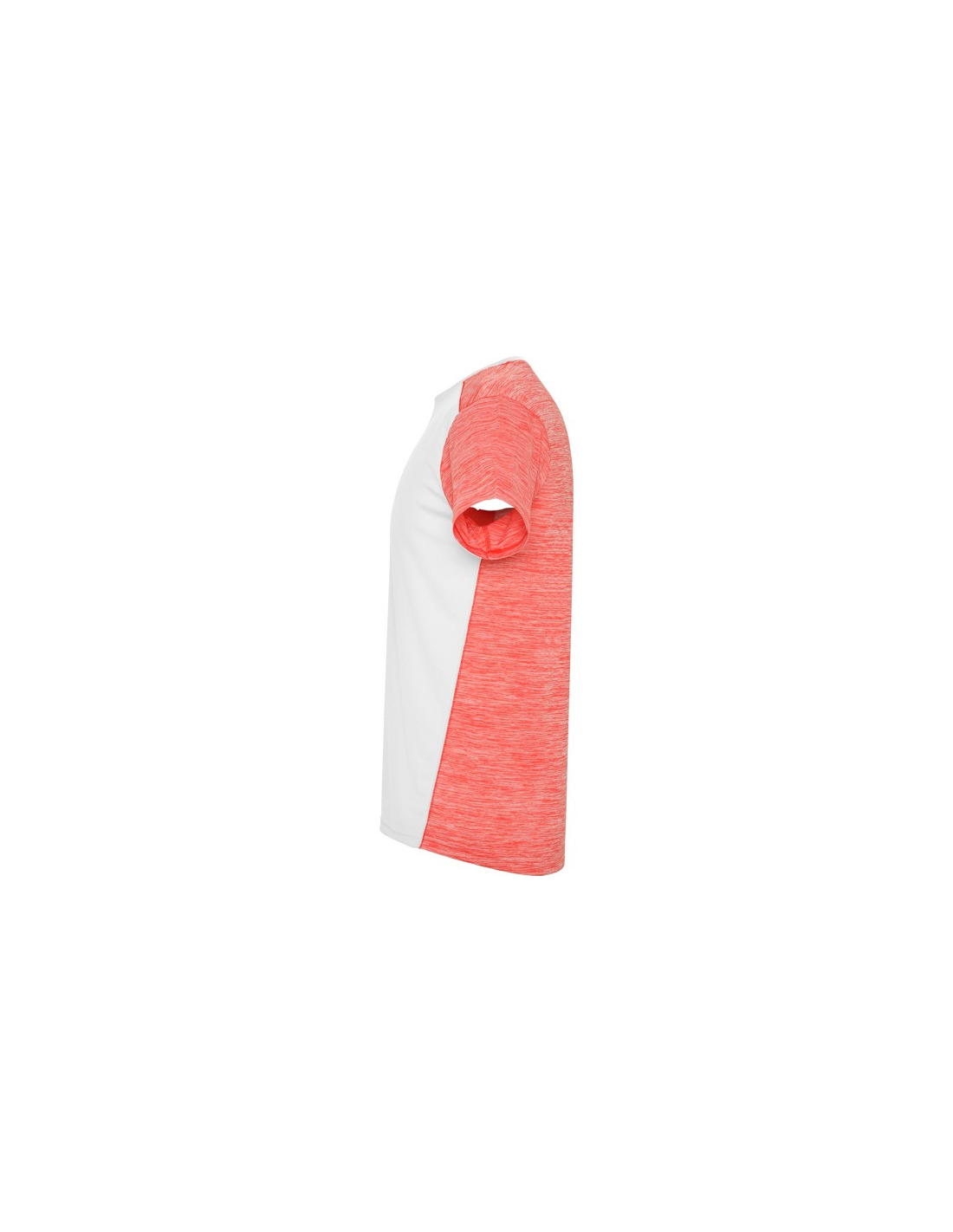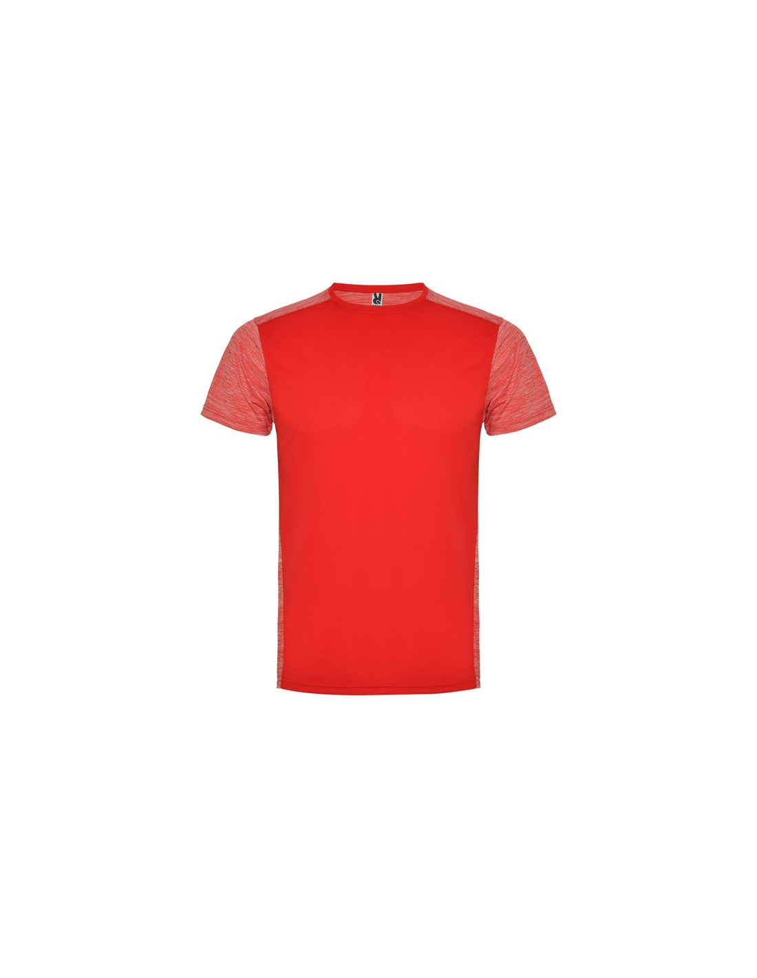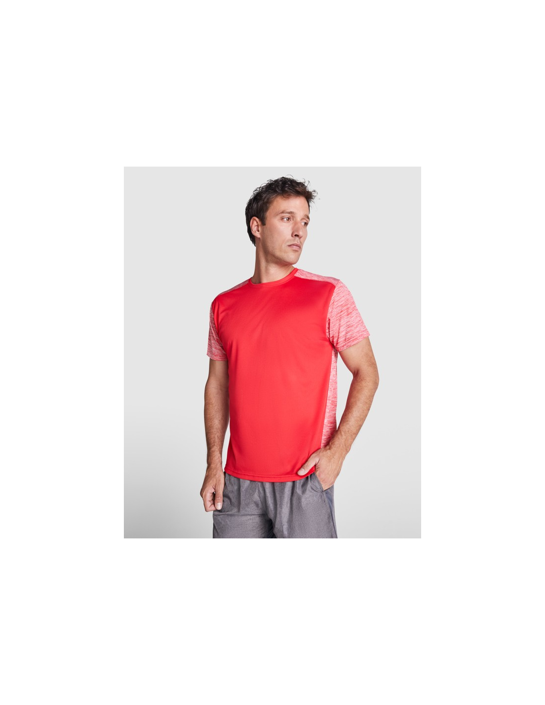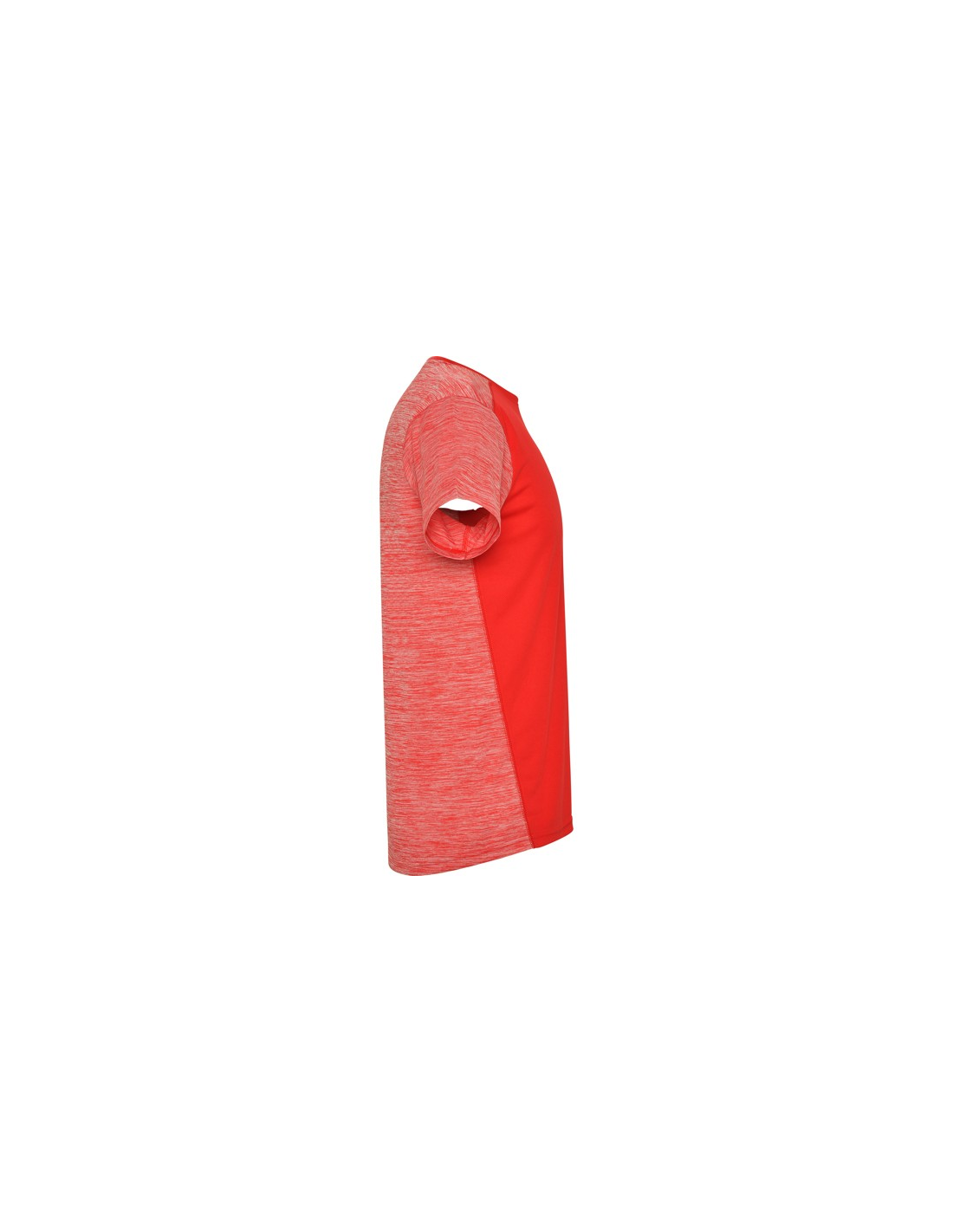 Koszulka techniczna z krótkim rękawem. 1,- Okrągły dekolt. 2.- Połączenie dwóch materiałów poliestrowych. 3,- Główna tkanina o strukturze bird´s eye, tylna część wykonana z Space Dye. 4.- Delikatnie wydłużony tył.