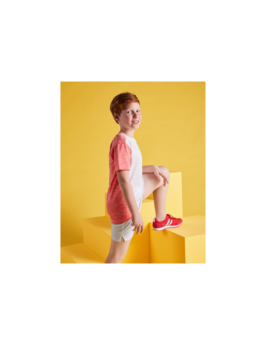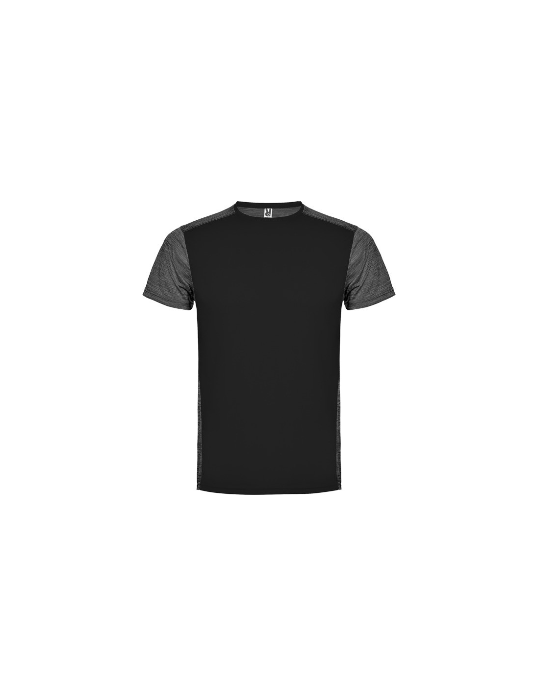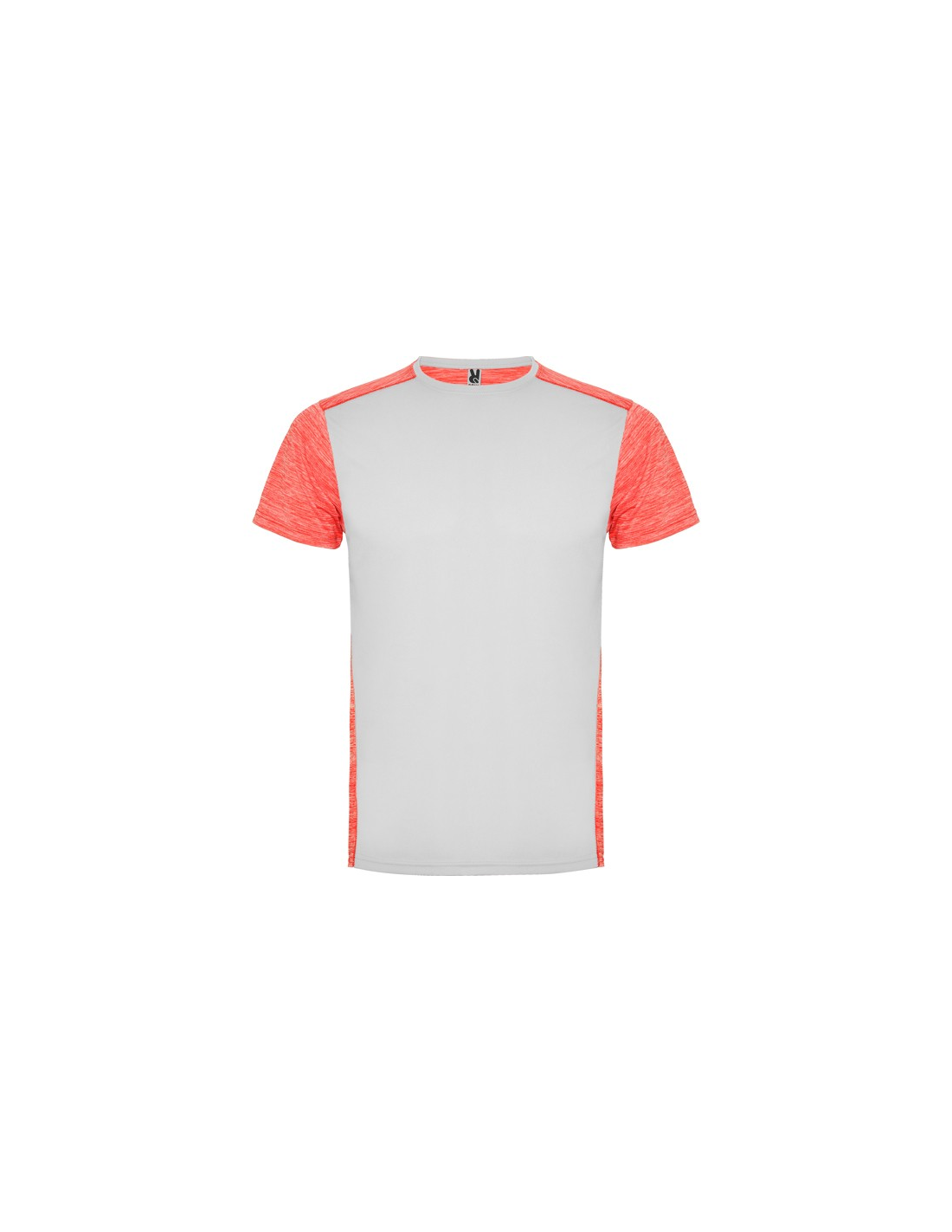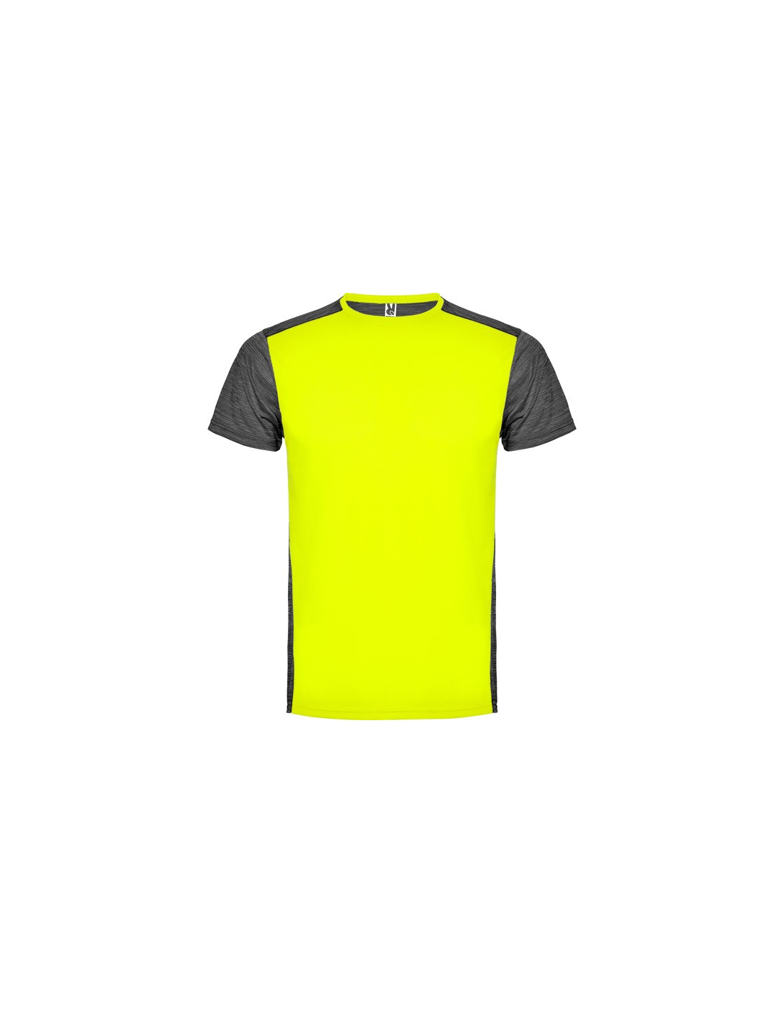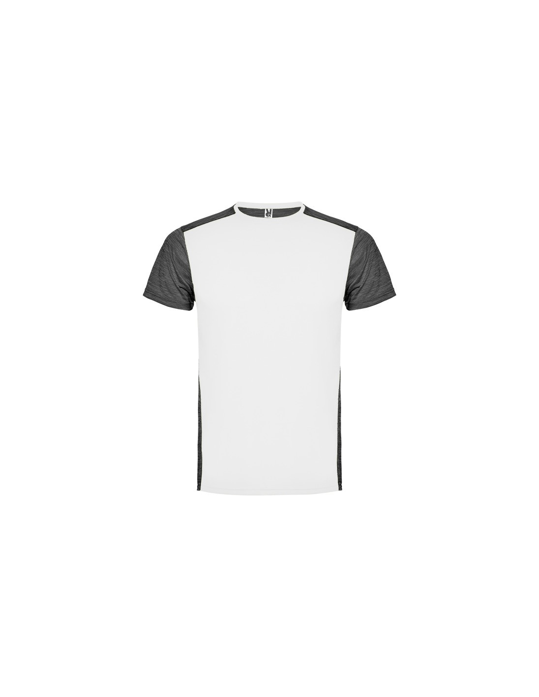 Koszulka techniczna z krótkim rękawem. 1,- Okrągły dekolt. 2.- Połączenie dwóch materiałów poliestrowych. 3,- Główna tkanina o strukturze bird´s eye, tylna część wykonana z Space Dye. 4.- Delikatnie wydłużony tył.