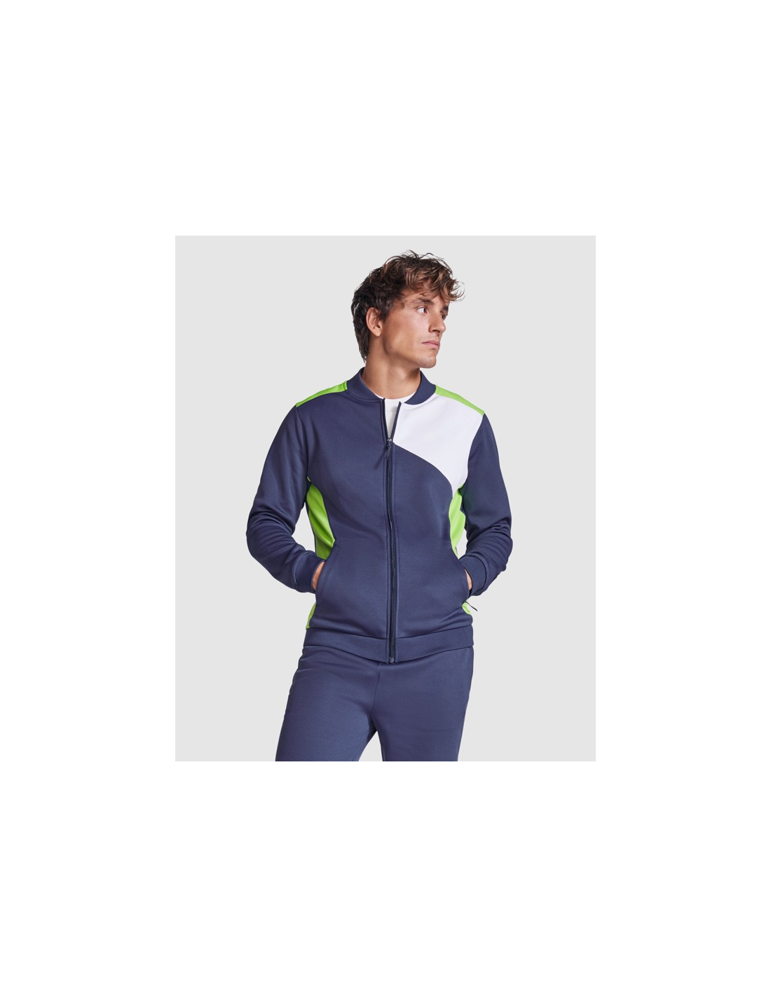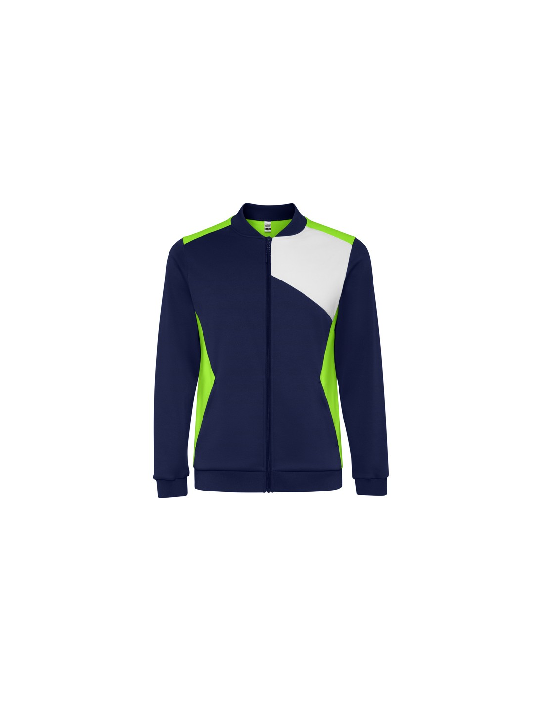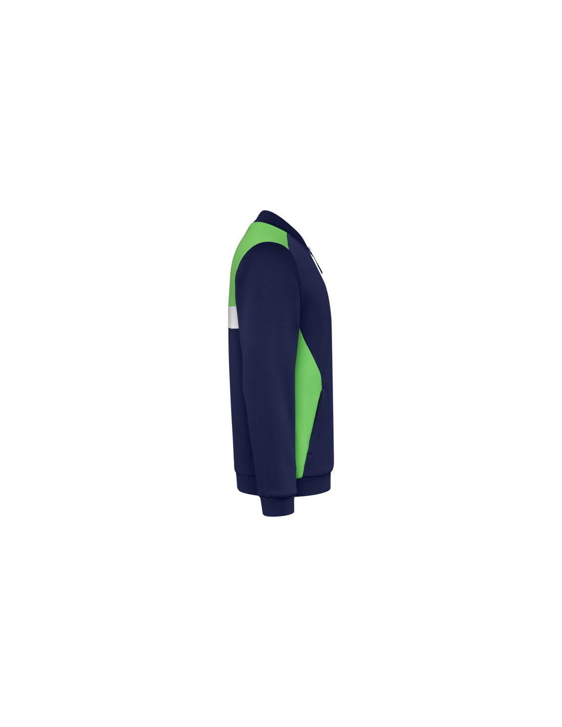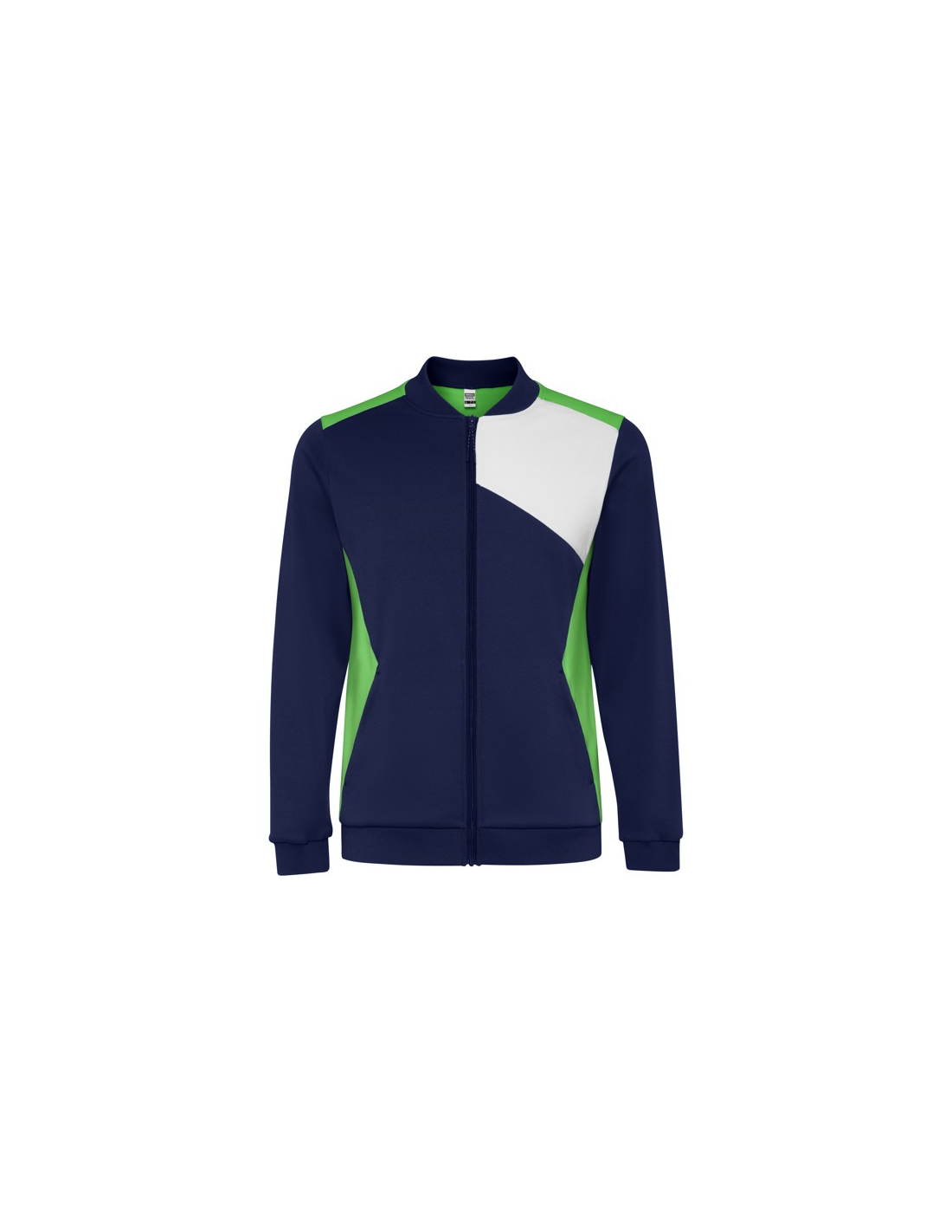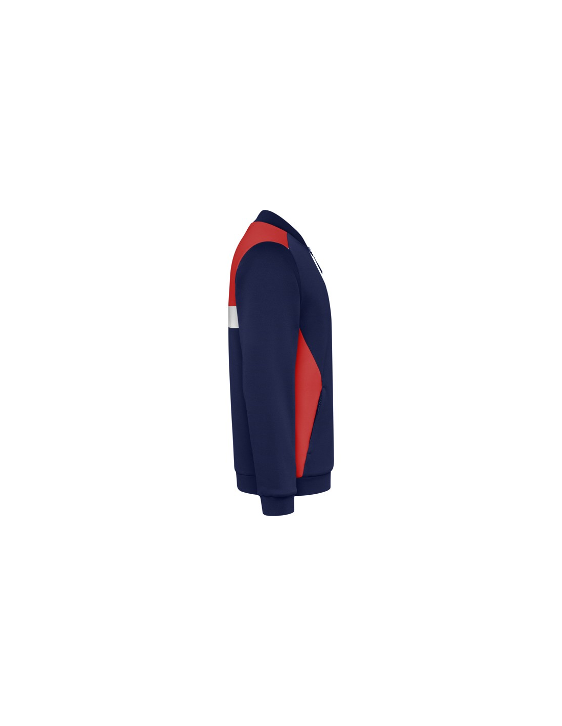 Bluza sportowa zapinana z przodu na zamek błyskawiczny. Boczne kieszenie z zapięciem na zamek błyskawiczny. Kołnierz, mankiety i dół ze ściągaczem 1x1. Asymetryczny element główny na lewej piersi, zaprojektowany specjalnie do haftowania. Można go łączyć ze spodniami RODAS.