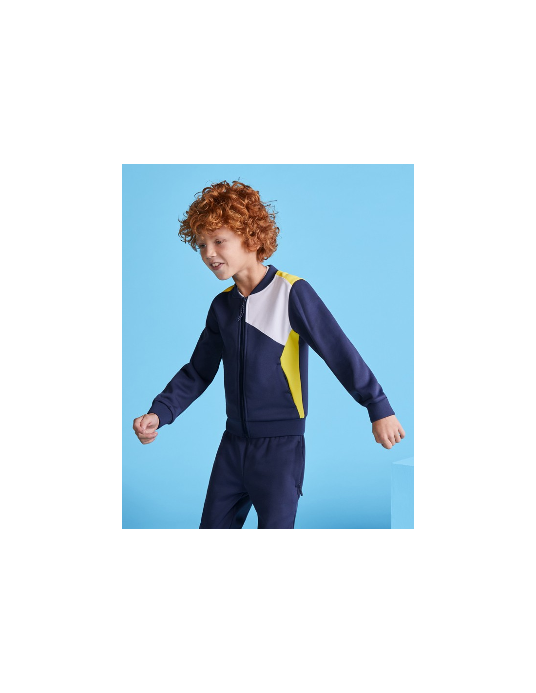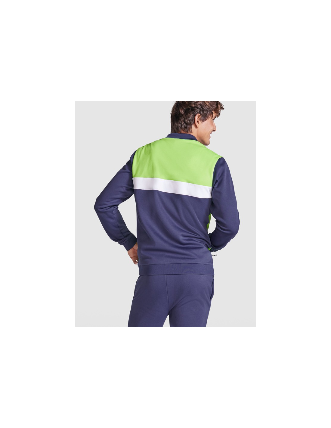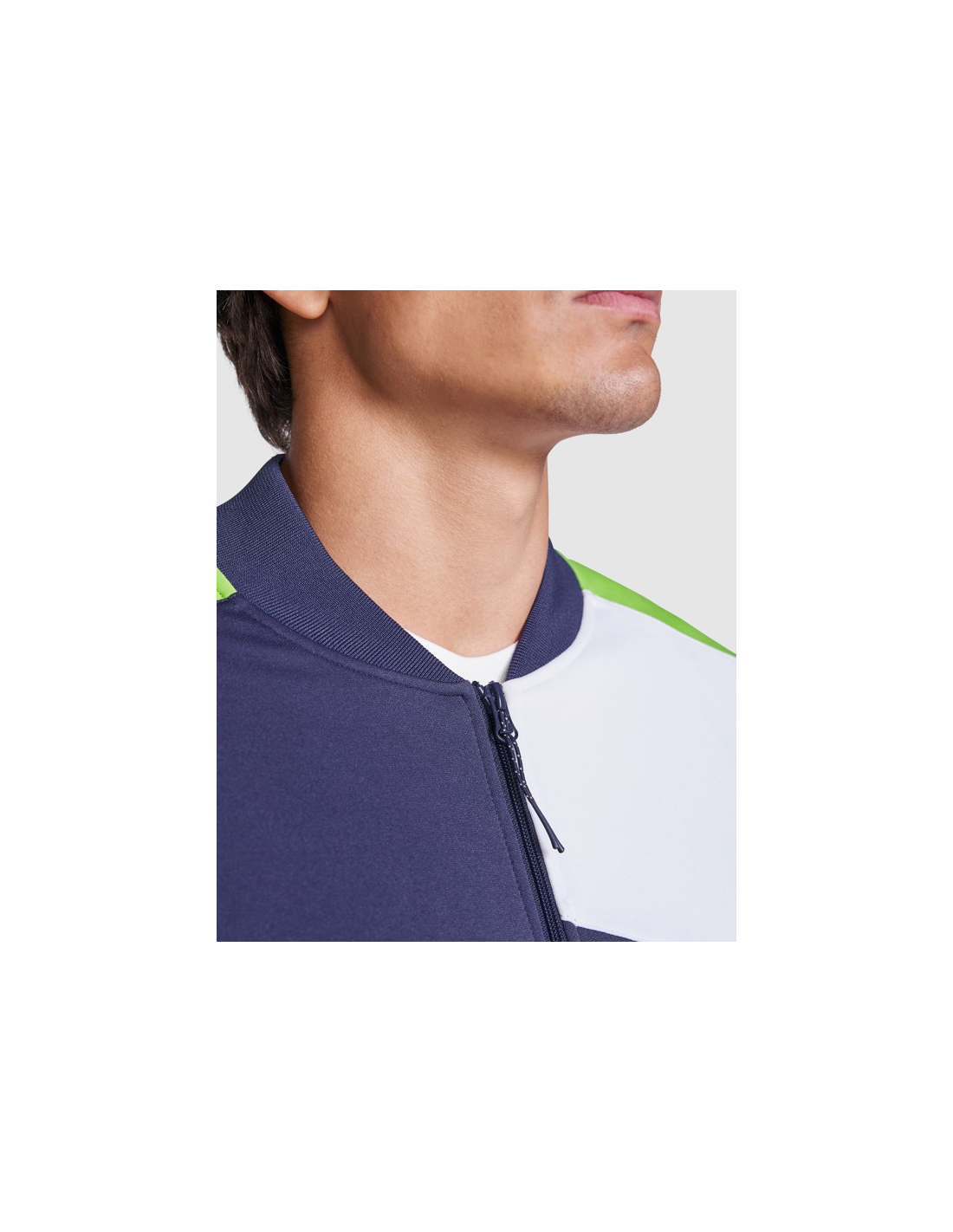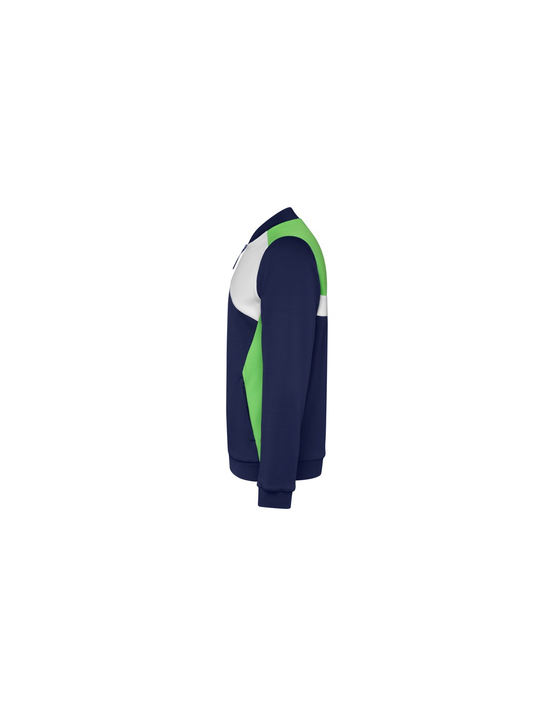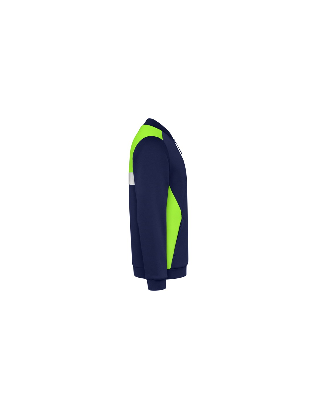 Bluza sportowa zapinana z przodu na zamek błyskawiczny. Boczne kieszenie z zapięciem na zamek błyskawiczny. Kołnierz, mankiety i dół ze ściągaczem 1x1. Asymetryczny element główny na lewej piersi, zaprojektowany specjalnie do haftowania. Można go łączyć ze spodniami RODAS.