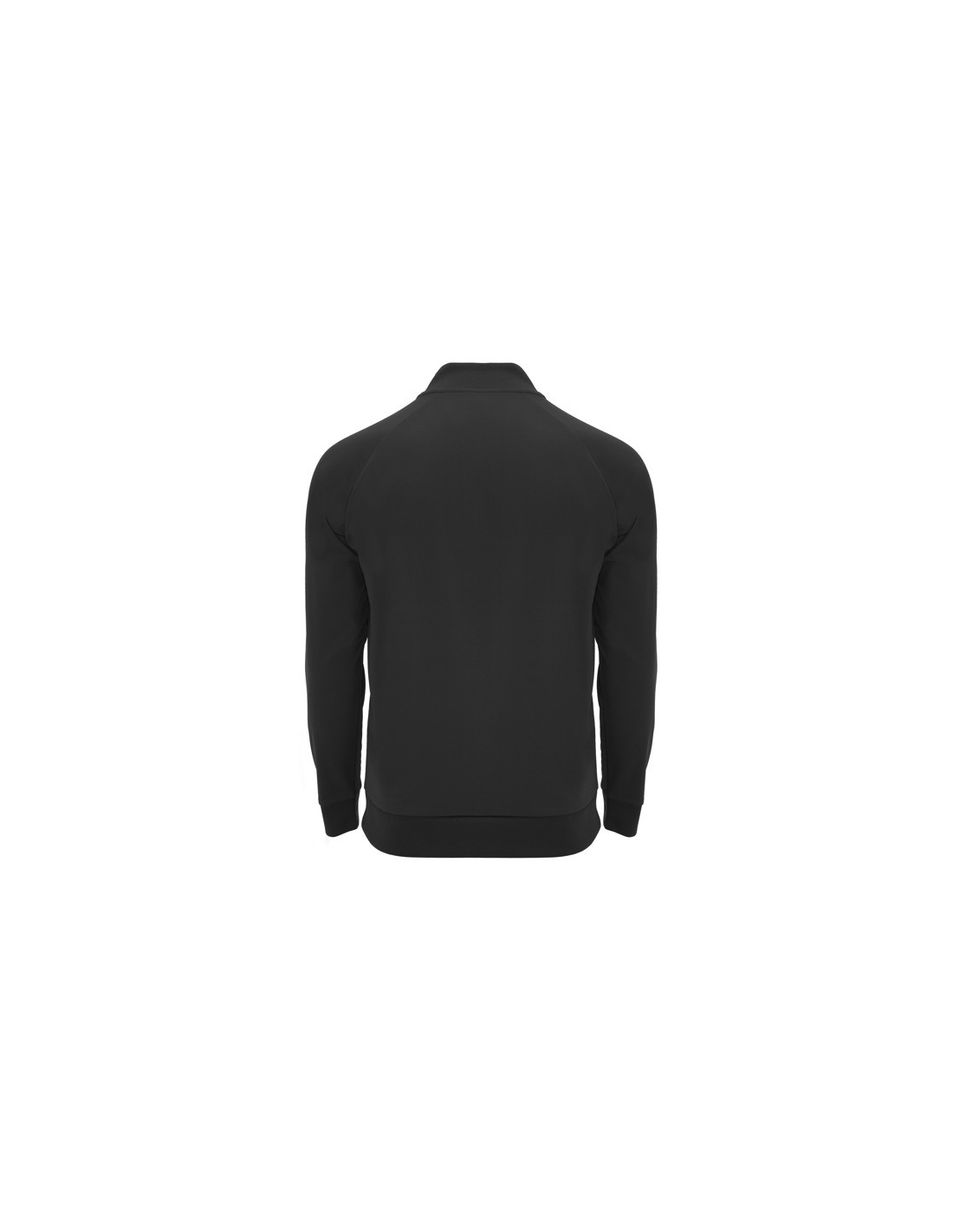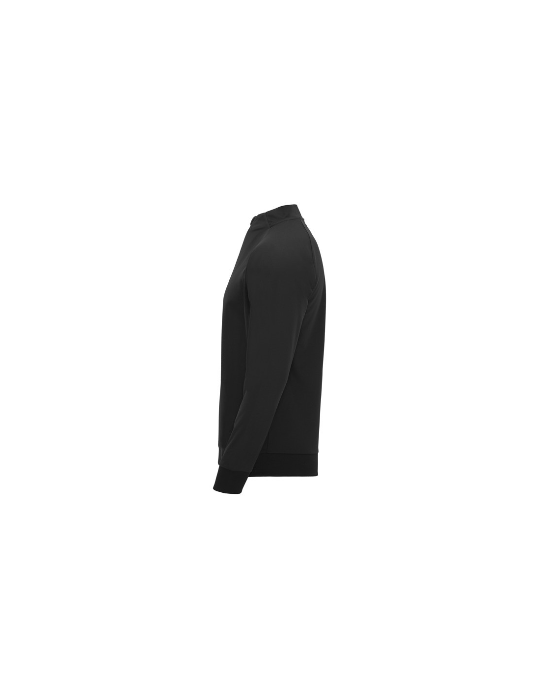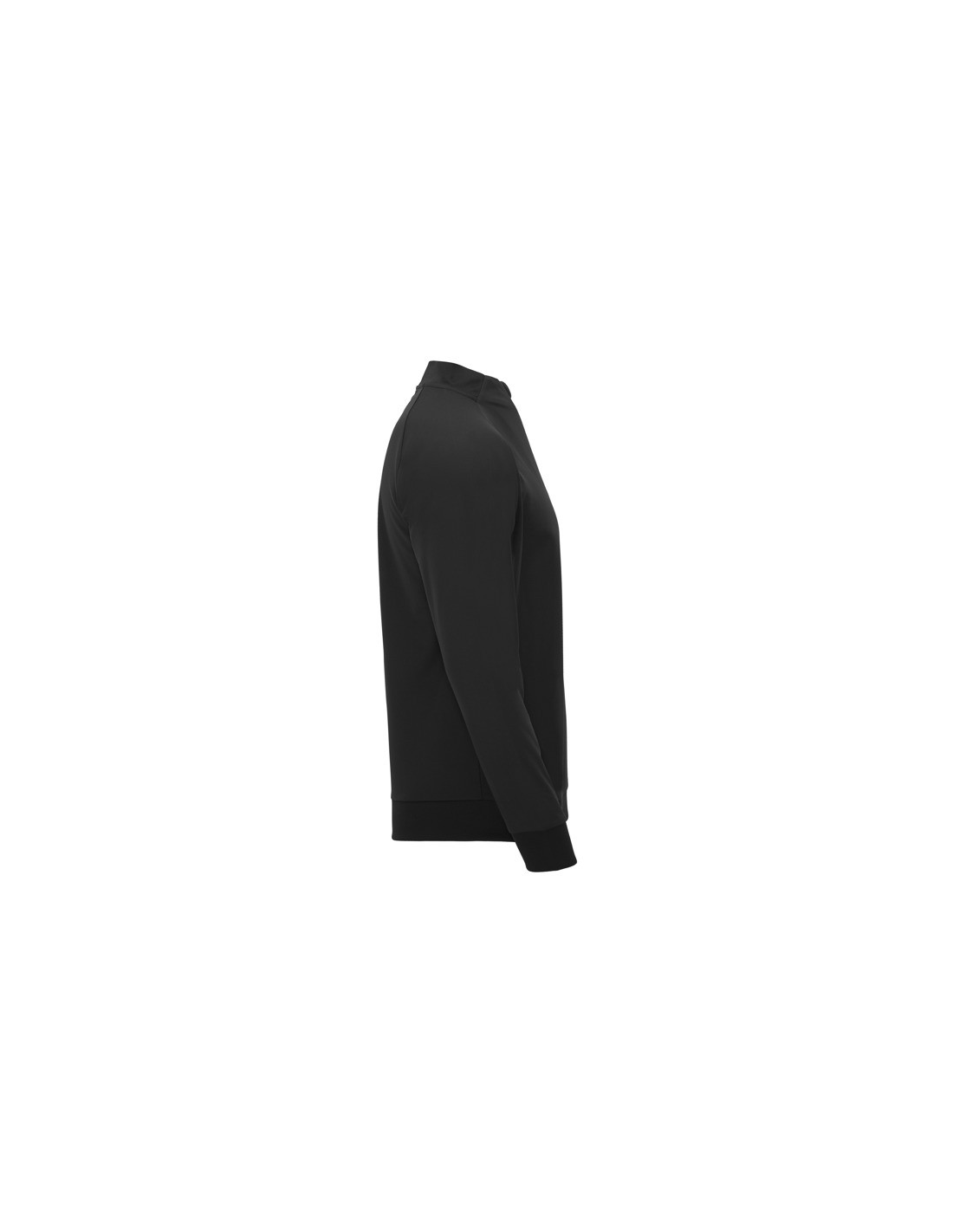 Bluza z reglanowymi rękawami. 1. Wewnętrzna szczotkowana tkanina. 2. Krótki zamek z wzmocnionymi, krytymi szwami w tonie. 3. Prązkowany karczek, manikety i dół bluzy 1x1.