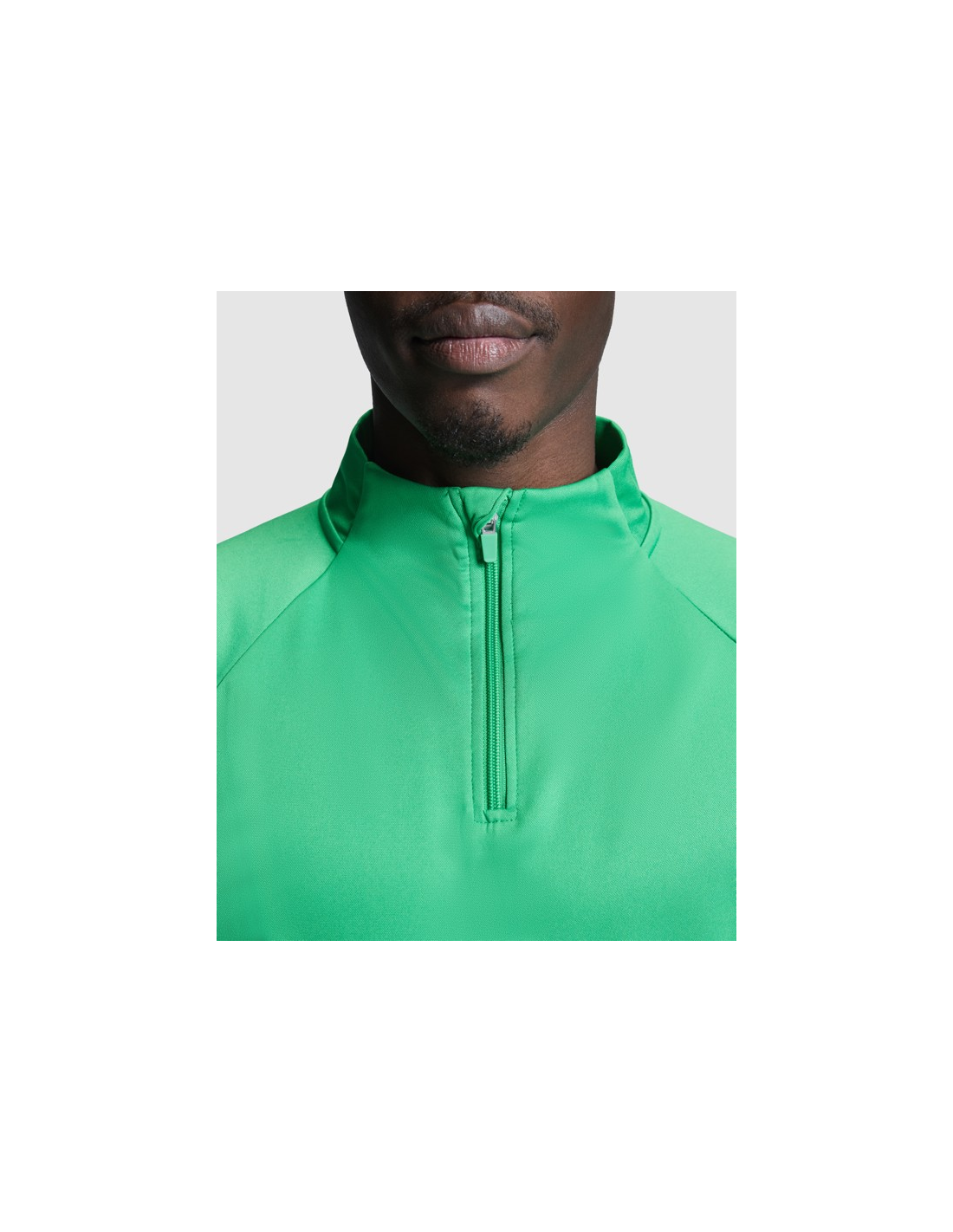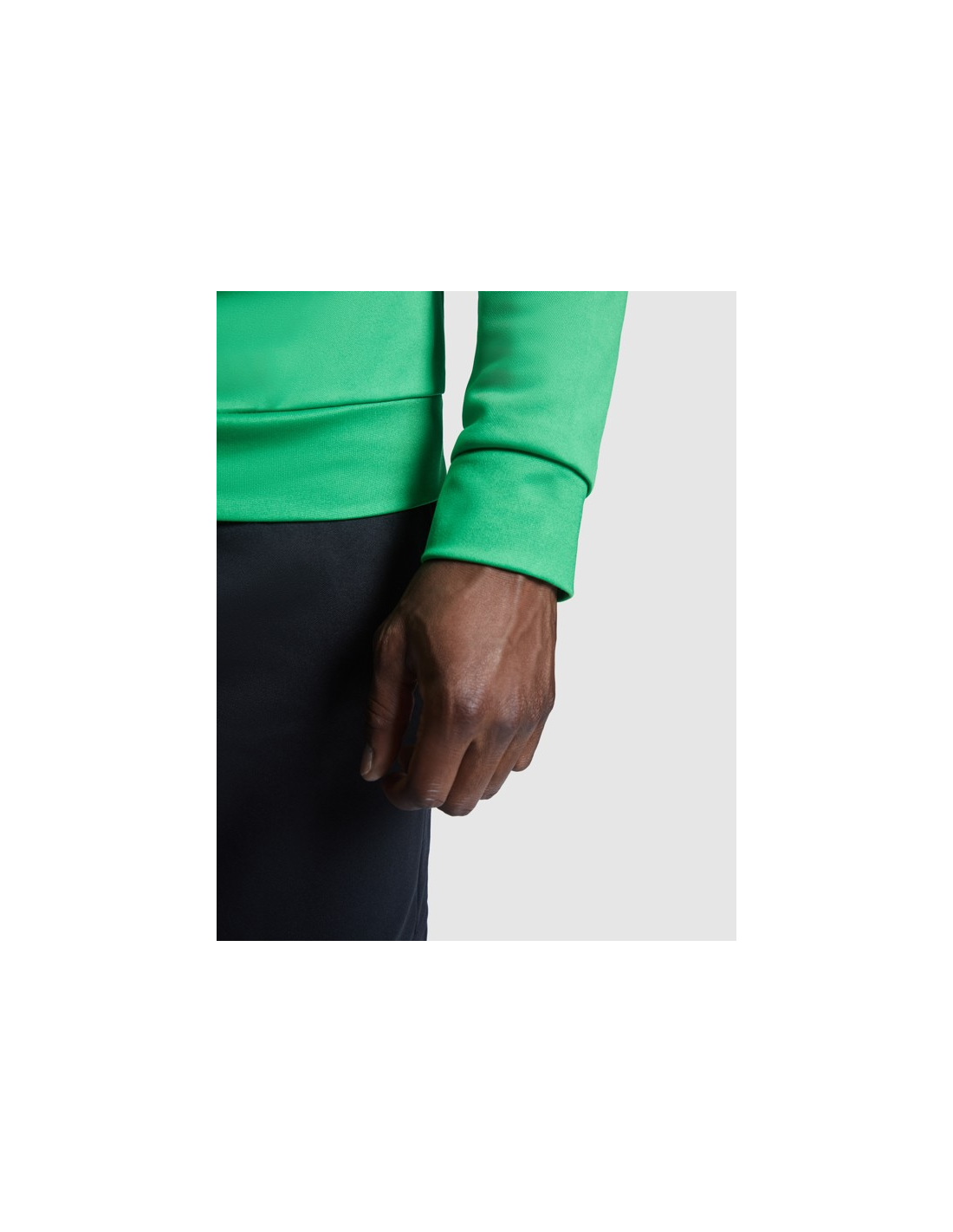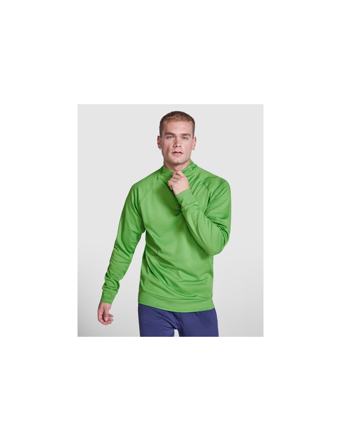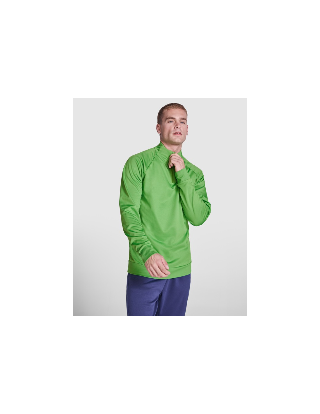 Bluza z reglanowymi rękawami. 1. Wewnętrzna szczotkowana tkanina. 2. Krótki zamek z wzmocnionymi, krytymi szwami w tonie. 3. Prązkowany karczek, manikety i dół bluzy 1x1.