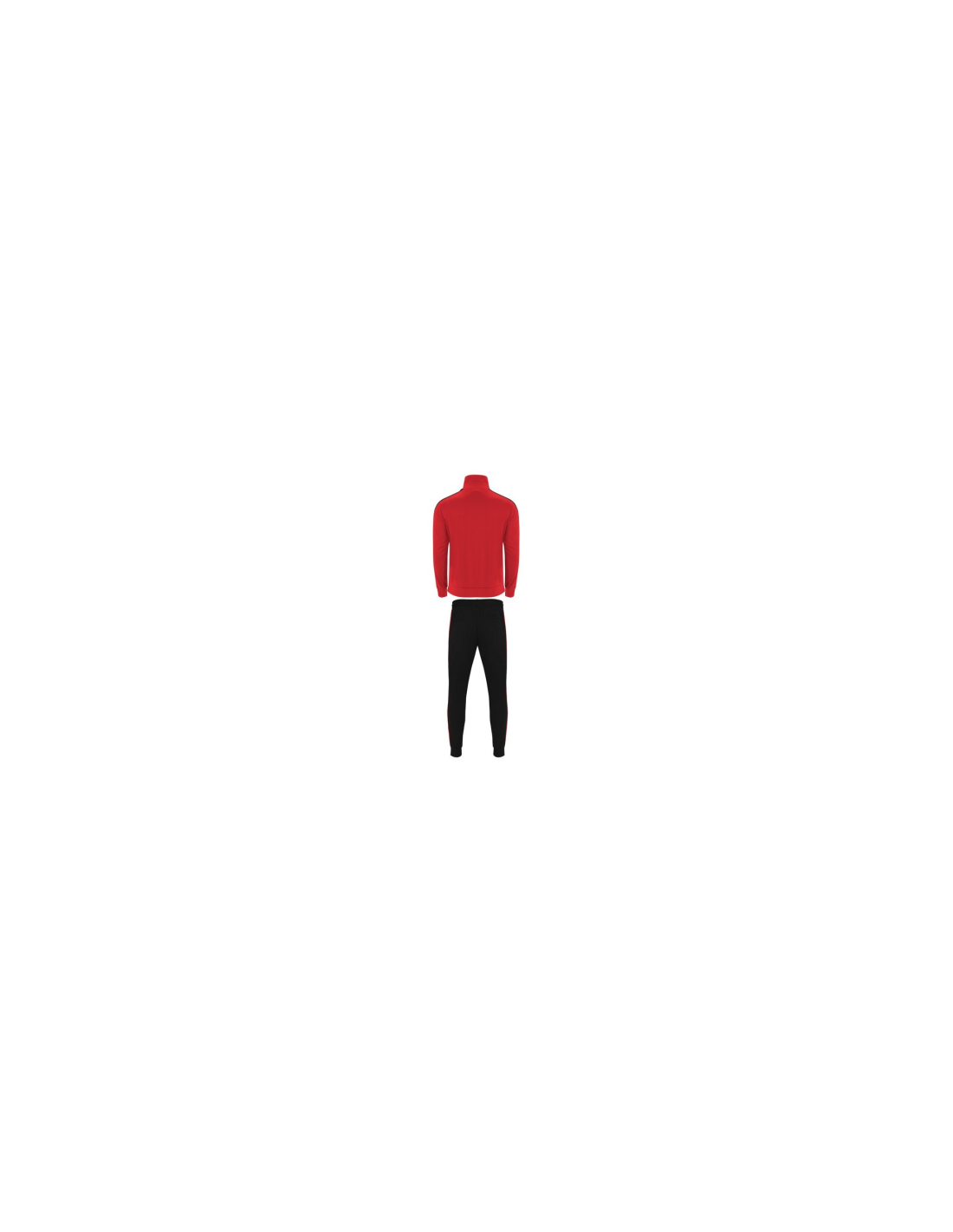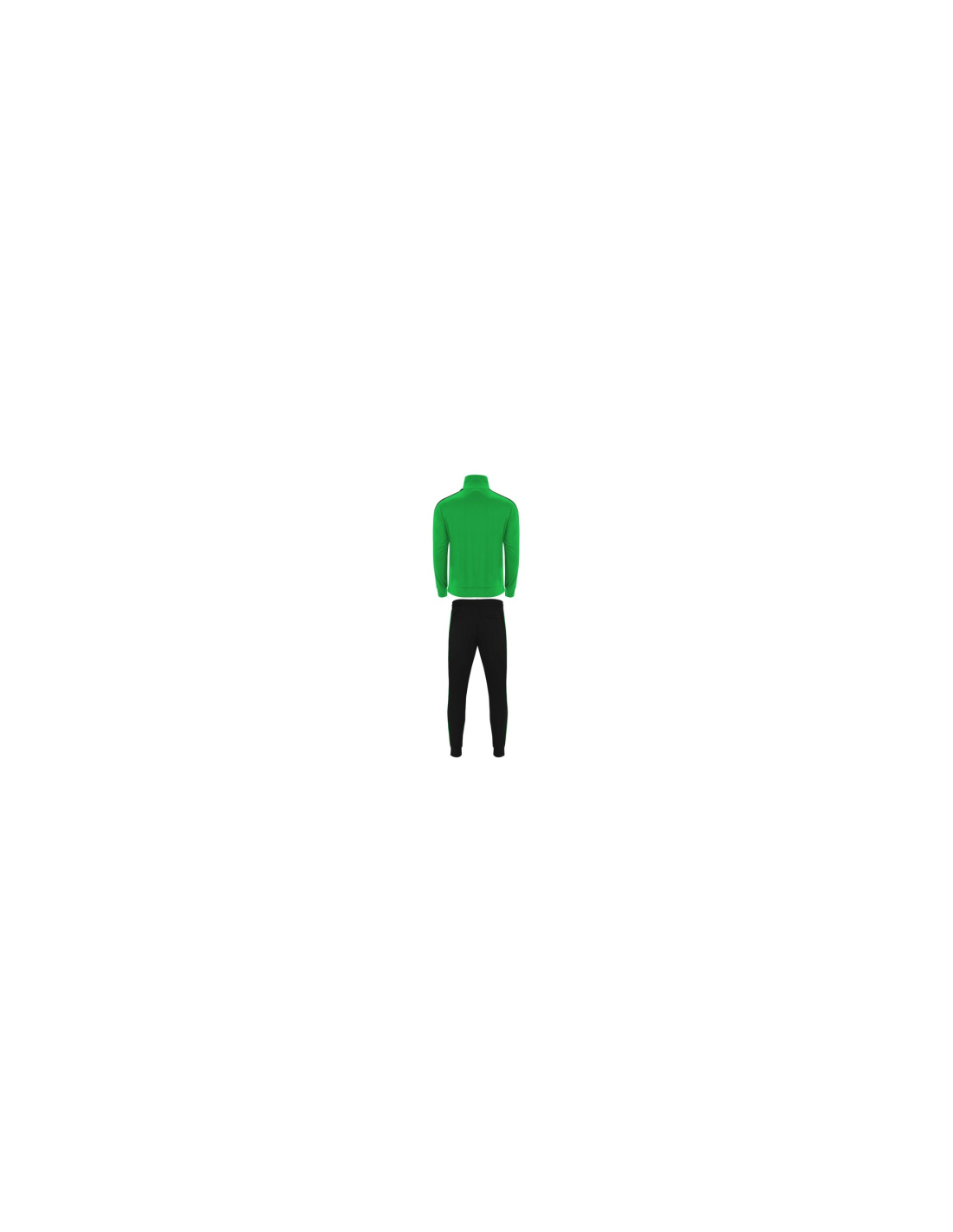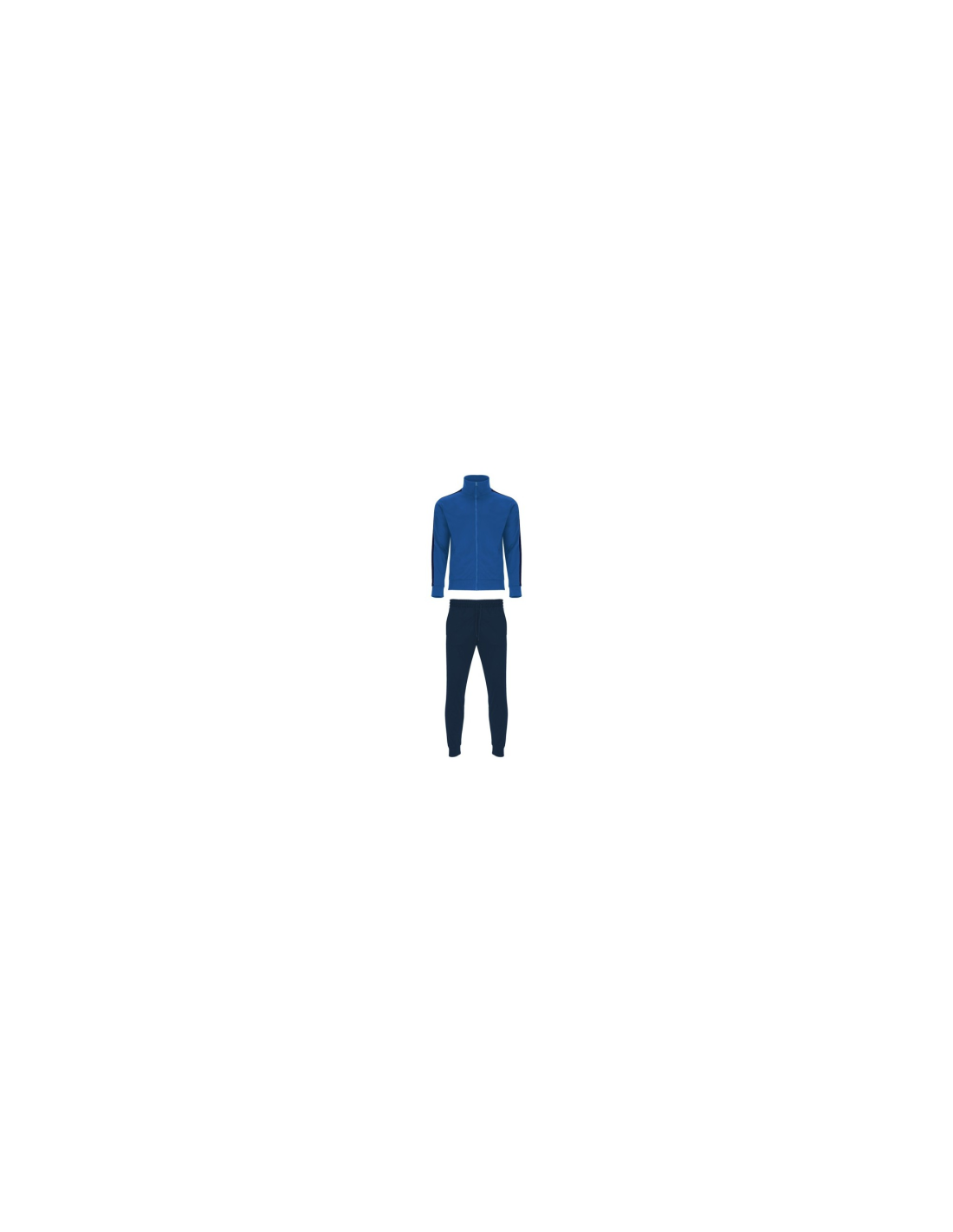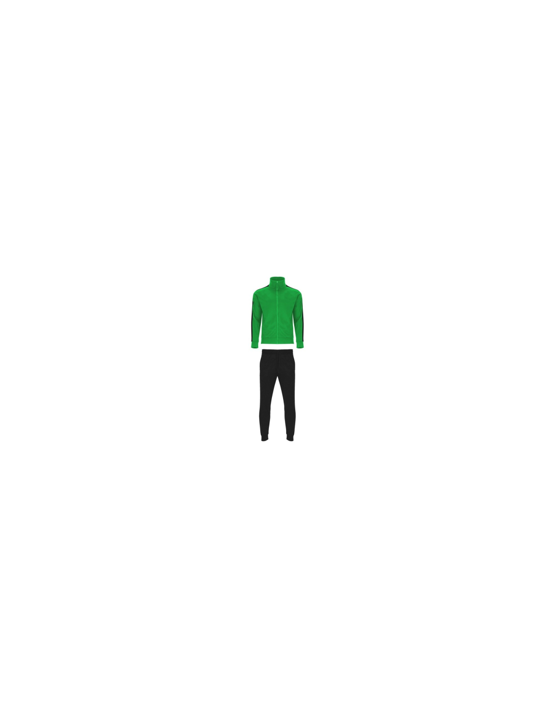 Zestaw sportowy składający się z bluzy i spodni. 1. Kołnierz ze stójką. 2. Mankiety, kołnierz i pas wykończone lamówką 1x1. 3. Centralny zamek błyskawiczny z uchwytem. 4. Kieszenie boczne zapinane na zamek błyskawiczny. 5. Kontrastowy pasek boczny. 6. Spodnie z elastycznym pasem i regulowane wewnętrznym sznurkiem. 7. Dwie kieszenie boczne. 8. Tylna kieszeń zapinana na zamek. 9. Prązkowane ściągacze w nogawkach.