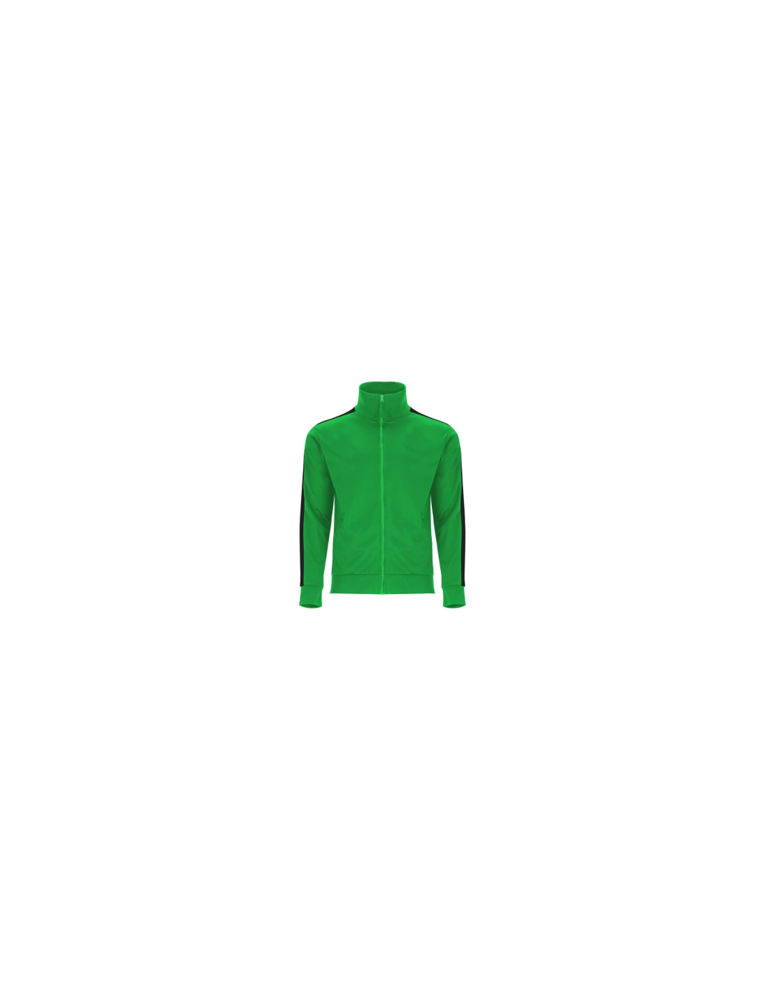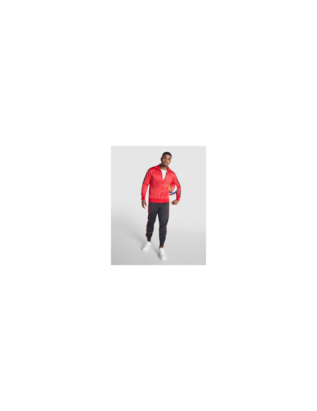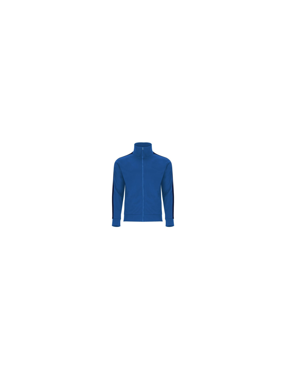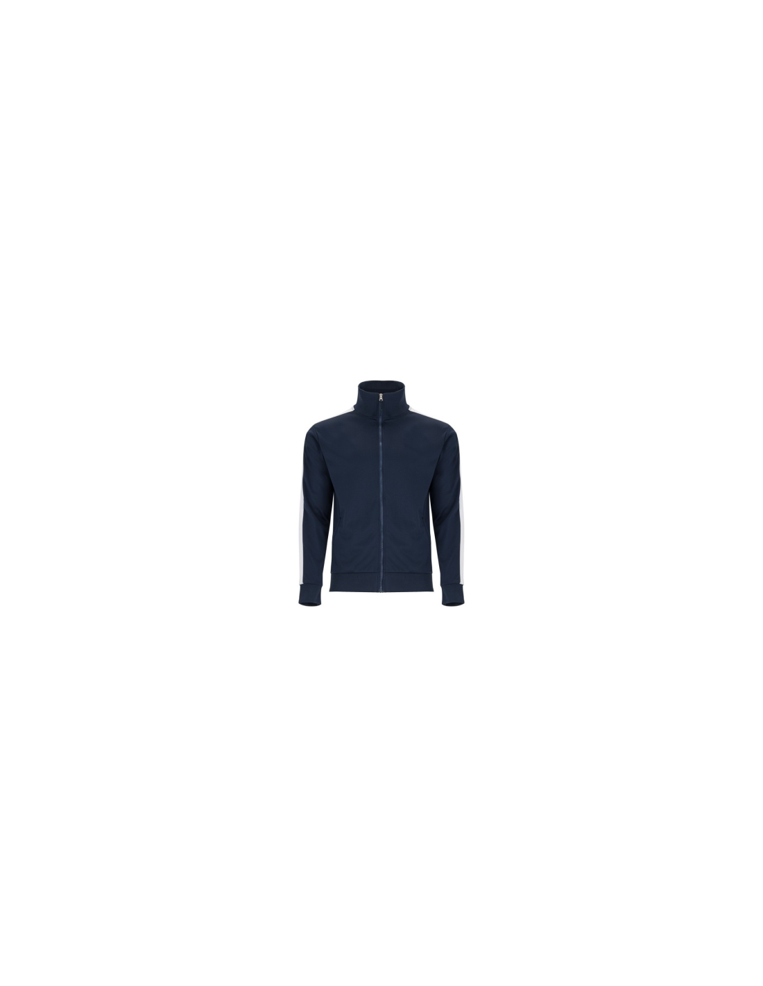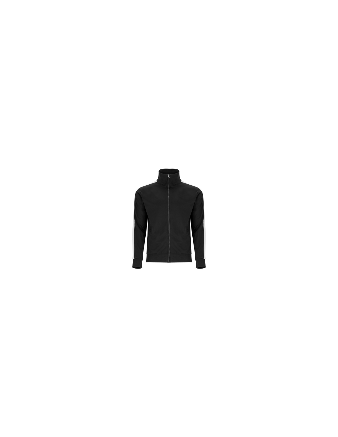 Zestaw sportowy składający się z bluzy i spodni. 1. Kołnierz ze stójką. 2. Mankiety, kołnierz i pas wykończone lamówką 1x1. 3. Centralny zamek błyskawiczny z uchwytem. 4. Kieszenie boczne zapinane na zamek błyskawiczny. 5. Kontrastowy pasek boczny. 6. Spodnie z elastycznym pasem i regulowane wewnętrznym sznurkiem. 7. Dwie kieszenie boczne. 8. Tylna kieszeń zapinana na zamek. 9. Prązkowane ściągacze w nogawkach.
