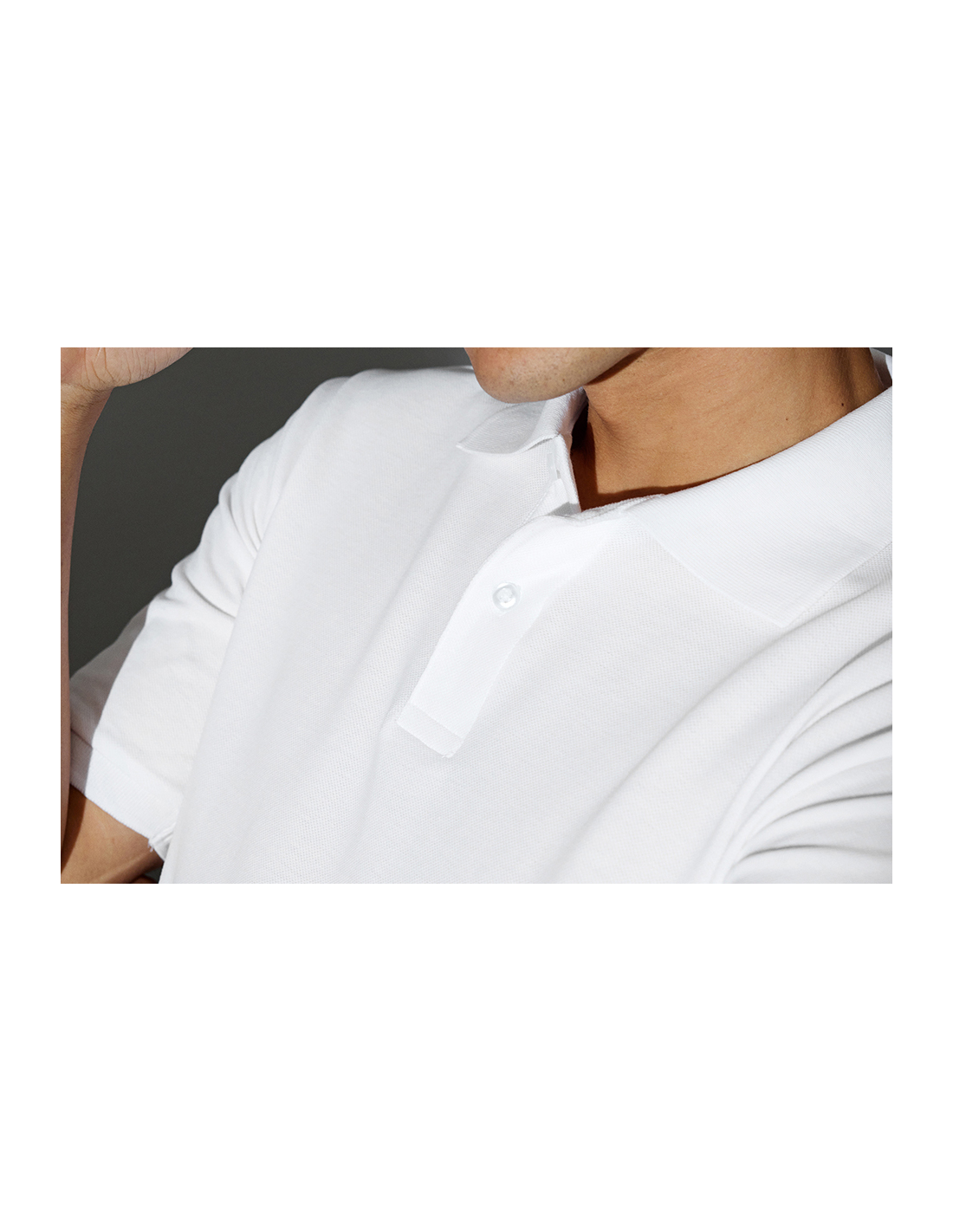 Promocyjna koszulka polo z dzianiny o splocie piqué z tasma wzmacniajaca na linii szyi. Rozciecie polo zapinane na guziki w kolorze ton w ton. Rekawki zakonczone sciagaczem.
