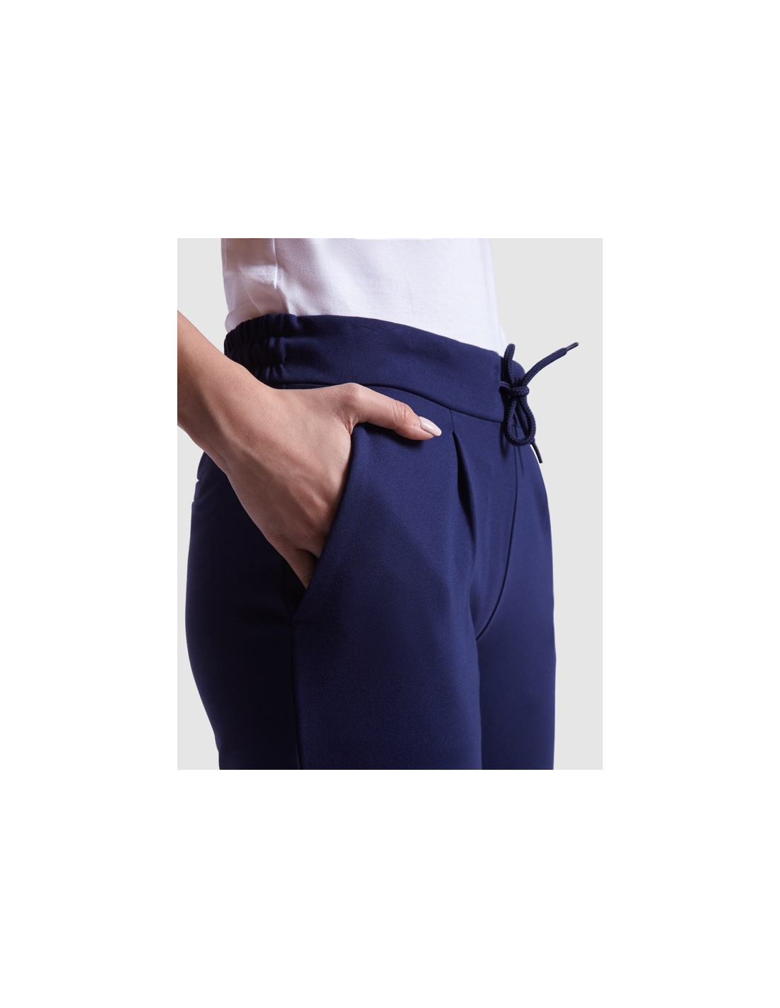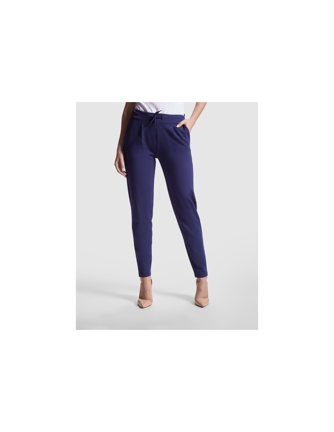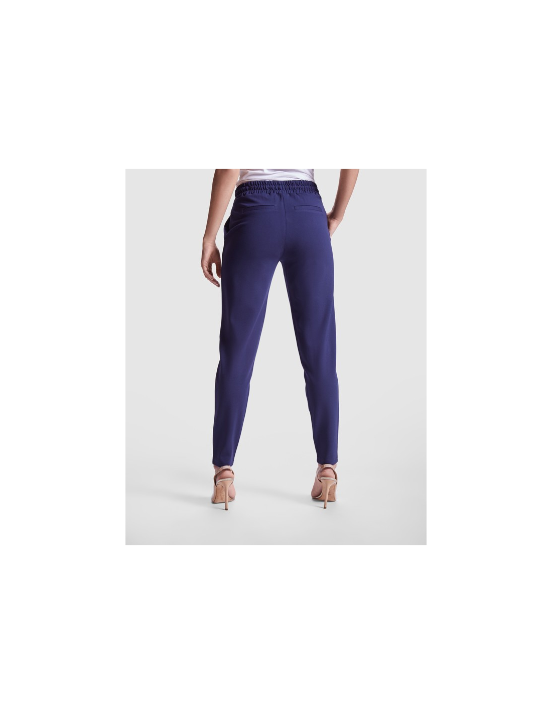 Spodnie damskie wykonane z elastycznej tkaniny. · Elastyczny ściągacz w pasie z tyłu. · Plisy przednie. · Dwie przednie kieszenie. · Dwie tylne kieszenie zapinane na guziki.