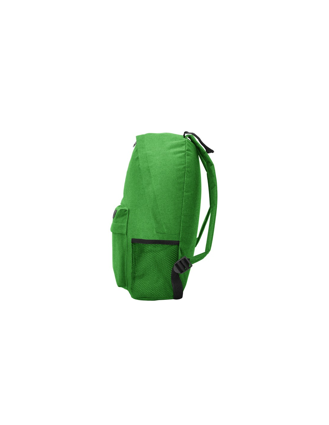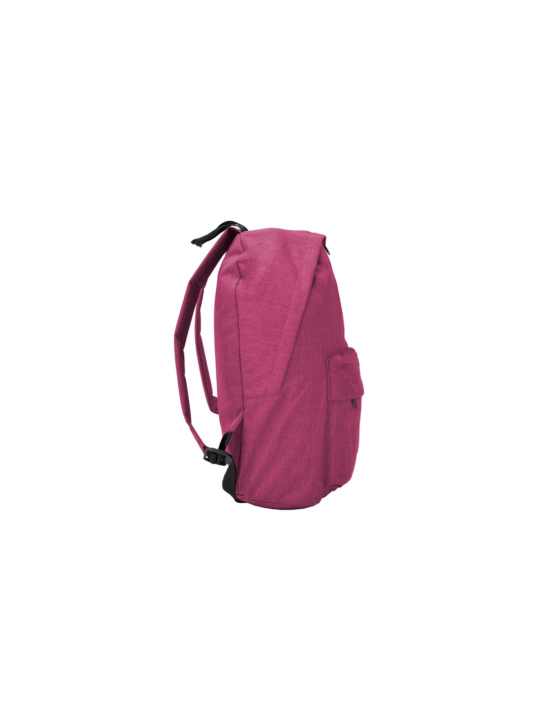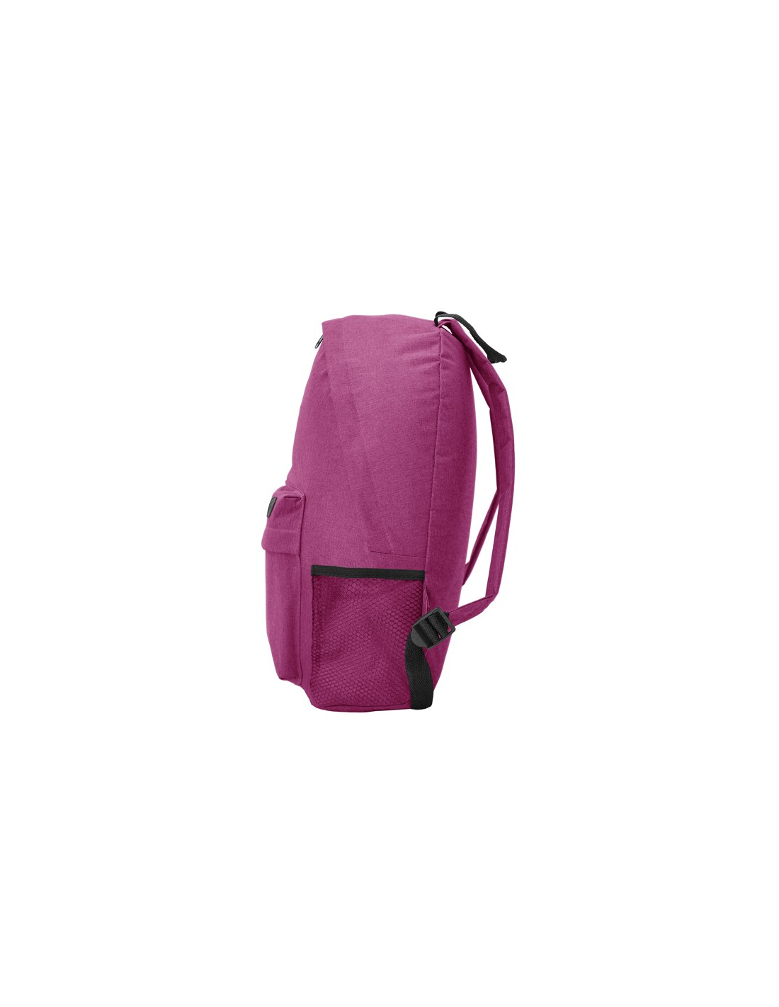 Klasyczny plecak wykonany z poliestru 300D o wrzosowym wykończeniu. Przednia kieszeń z oczkiem na kabel. Wyściełane plecy i szelki. Szczegółowe elementy w kolorze czarnym. Zdejmowana etykieta.