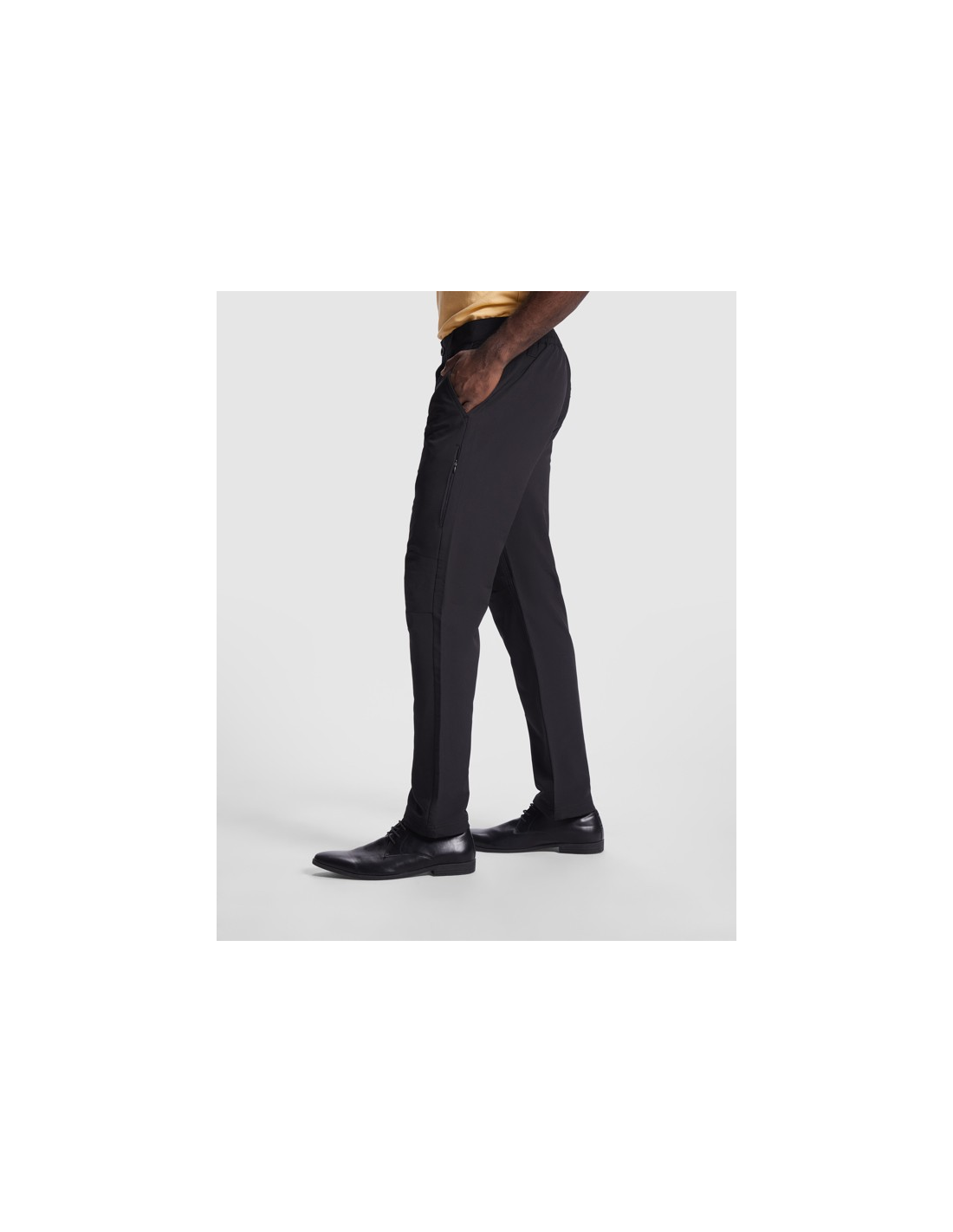Długie spodnie uniseks wykonane z tkaniny technicznej. · Czarny regulowany elastyczny pas. · Szlufki. · Dwie boczne kieszenie o klasycznym kroju. · Dwie boczne kieszenie w szwach zapinane na zamek kryty pod plisą. · Tylna kieszeń z zatrzaskiem. · Plisy na kolanach. · Podwójny szew na wewnętrznej stronie nogawki, w kroku i przy obszyciu. · Ściągacze z PCV i elastyczne paski na obszyciach.