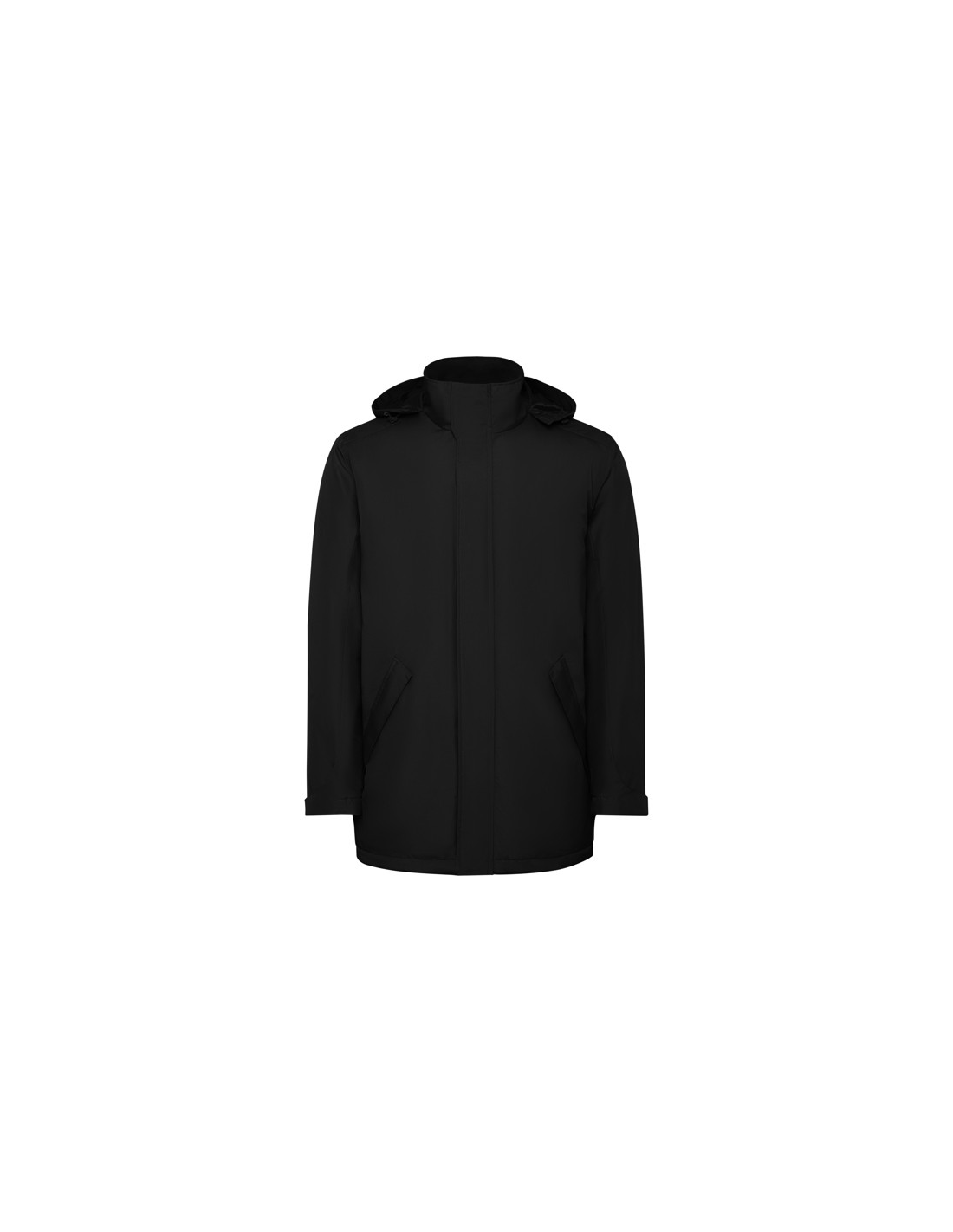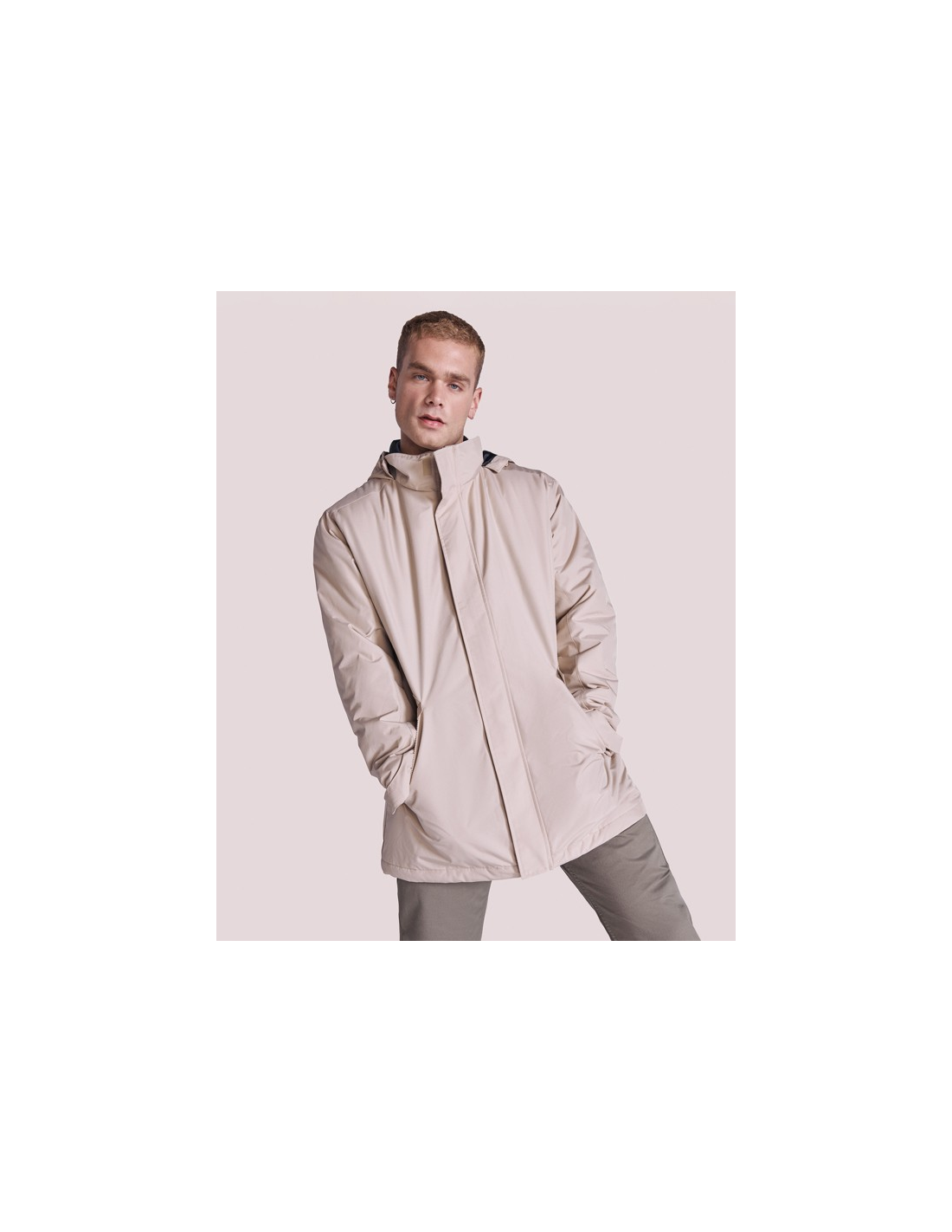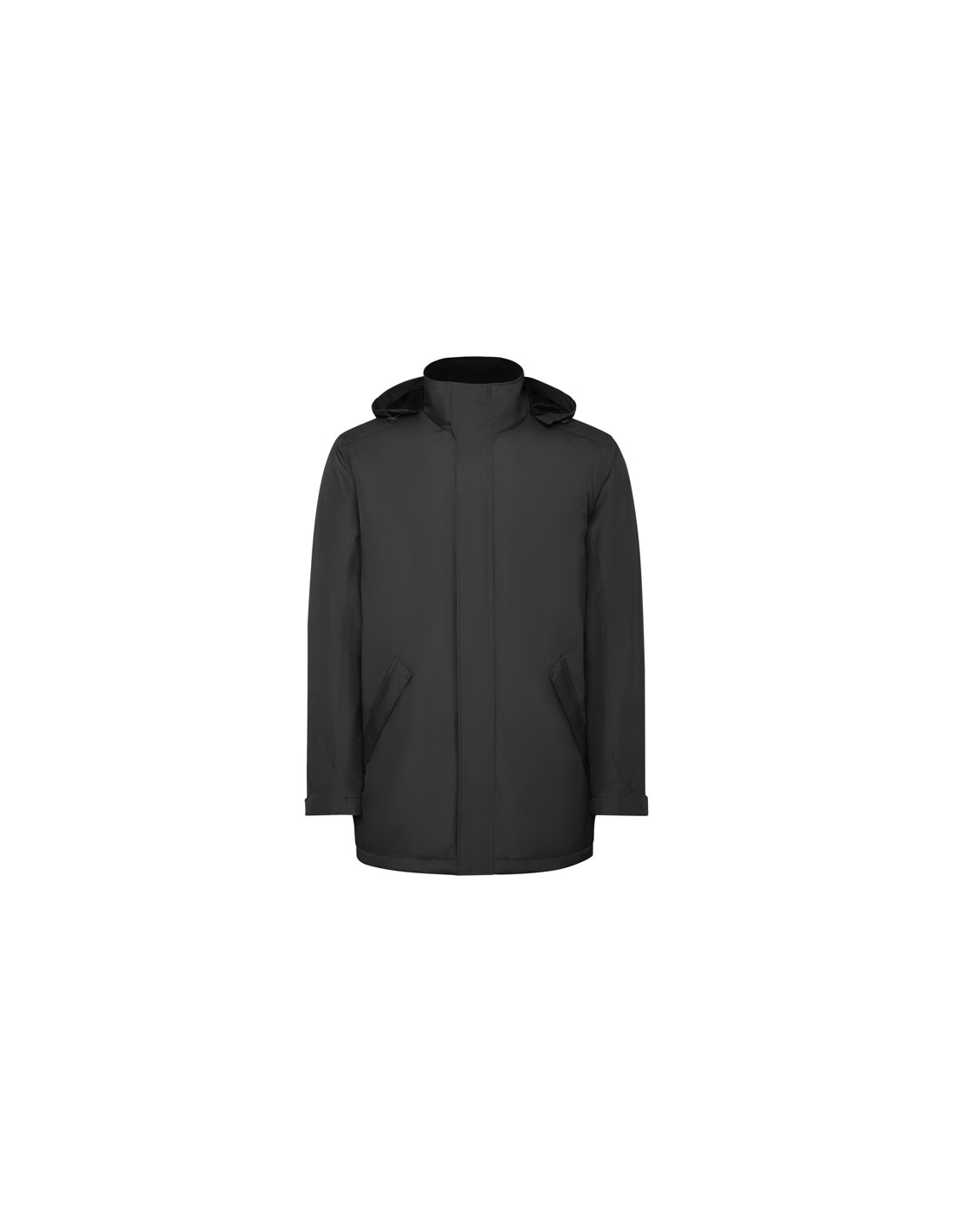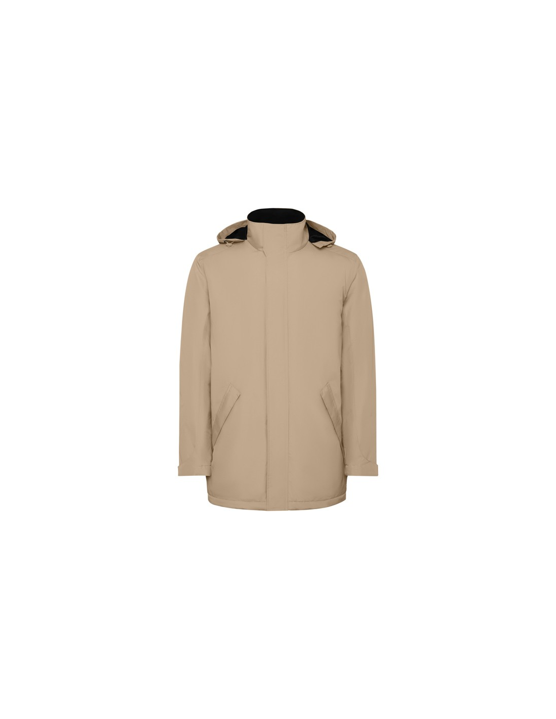 Wodoodporna kurtka typu parka z pikowaną podszewką. Wysoki kołnierz ze zwijanym kapturem i kieszenią na kaptur zapinaną na rzep. Zamek pasujący do koloru klapy. Boczne kieszenie z zapięciem na zamek przykryte klapą. Wewnętrzna kieszeń z zapięciem na rzep. Regulowane mankiety z zapięciem na rzep. Dostęp do wnętrza na plecach i po lewej stronie klatki piersiowej na potrzeby wykonania nadruków.