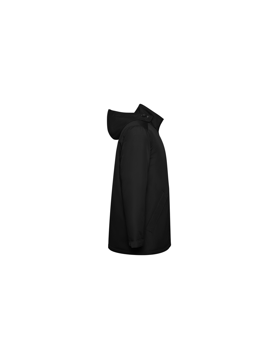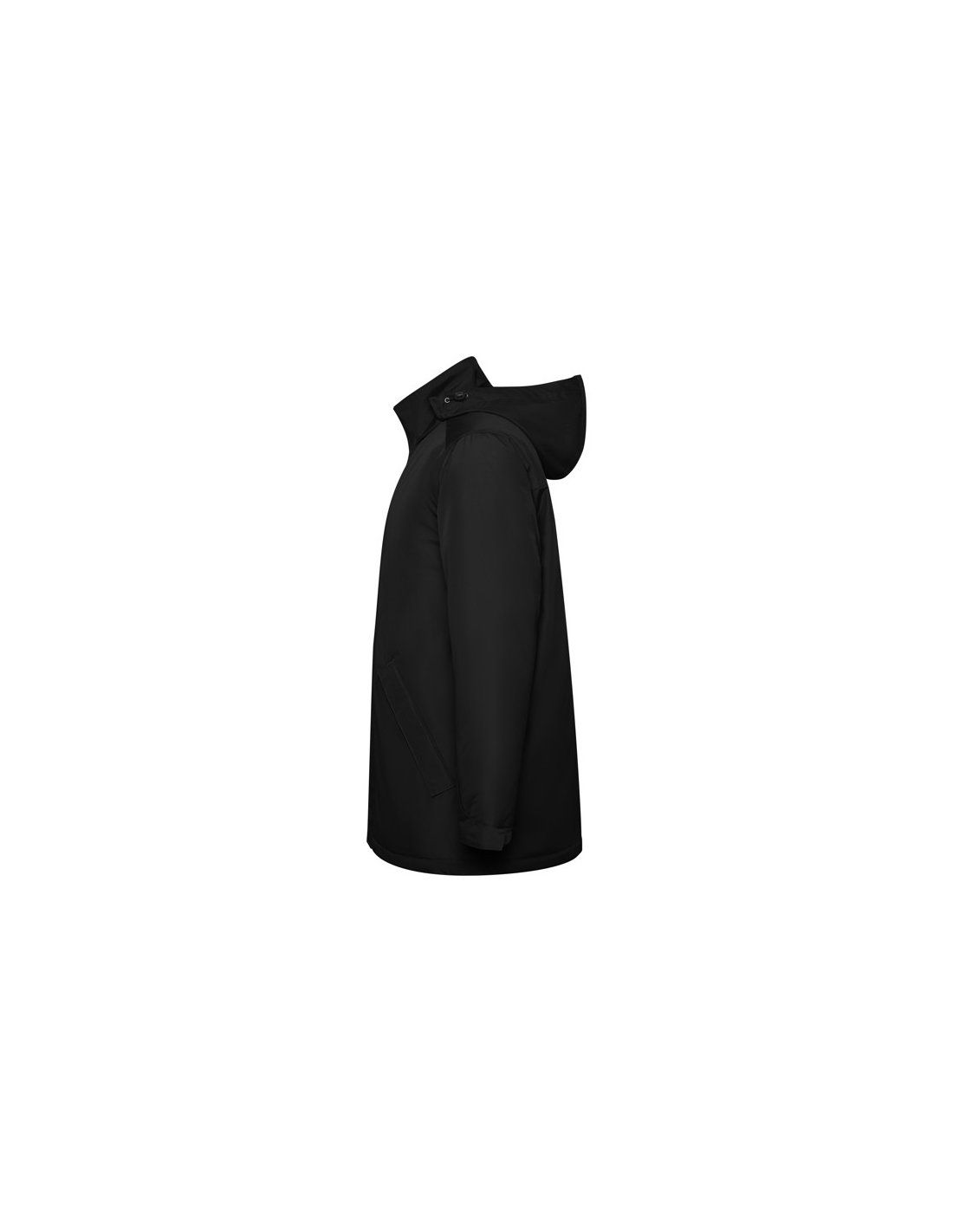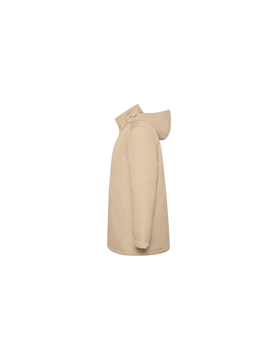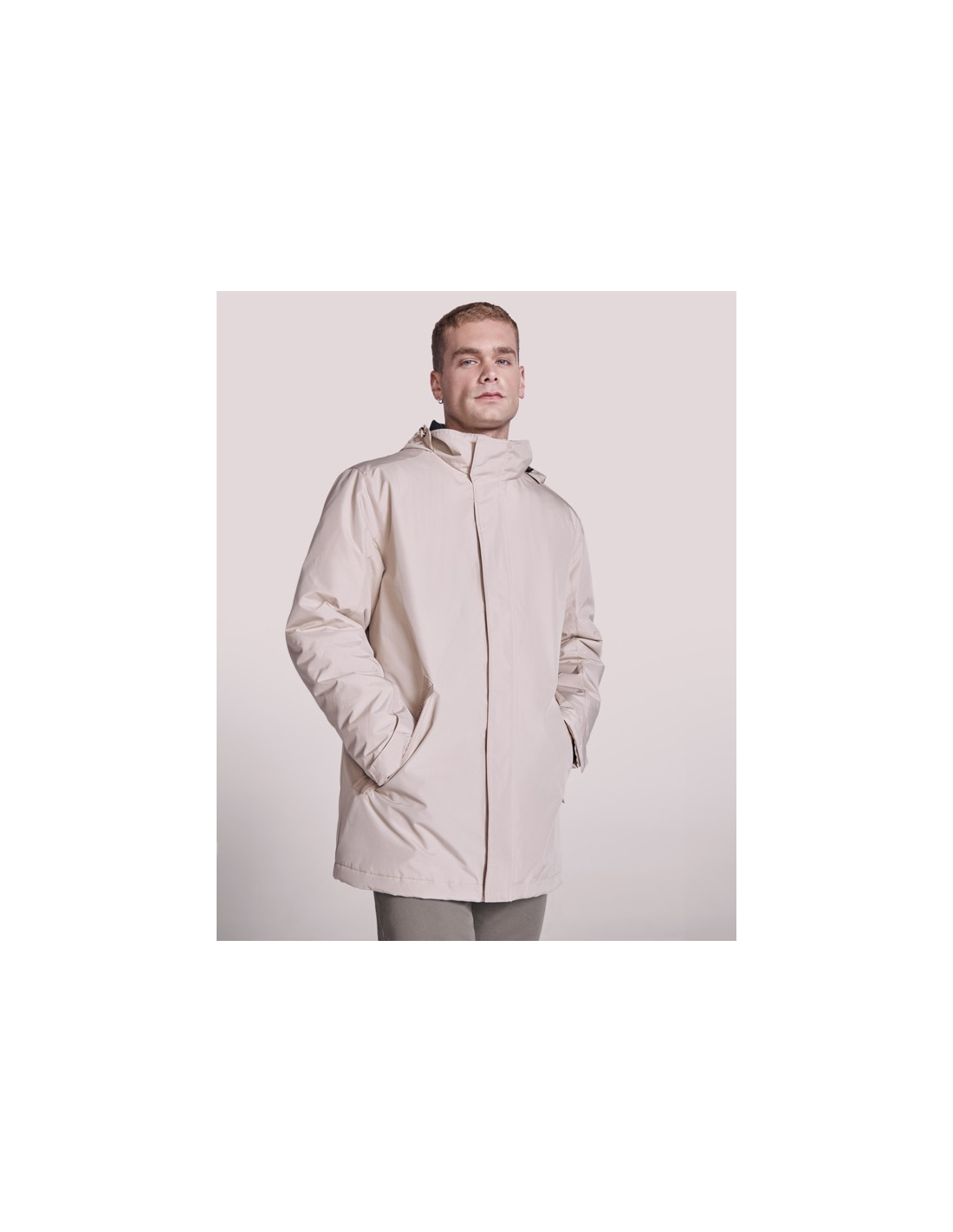 Wodoodporna kurtka typu parka z pikowaną podszewką. Wysoki kołnierz ze zwijanym kapturem i kieszenią na kaptur zapinaną na rzep. Zamek pasujący do koloru klapy. Boczne kieszenie z zapięciem na zamek przykryte klapą. Wewnętrzna kieszeń z zapięciem na rzep. Regulowane mankiety z zapięciem na rzep. Dostęp do wnętrza na plecach i po lewej stronie klatki piersiowej na potrzeby wykonania nadruków.