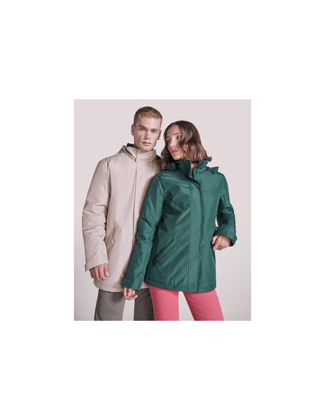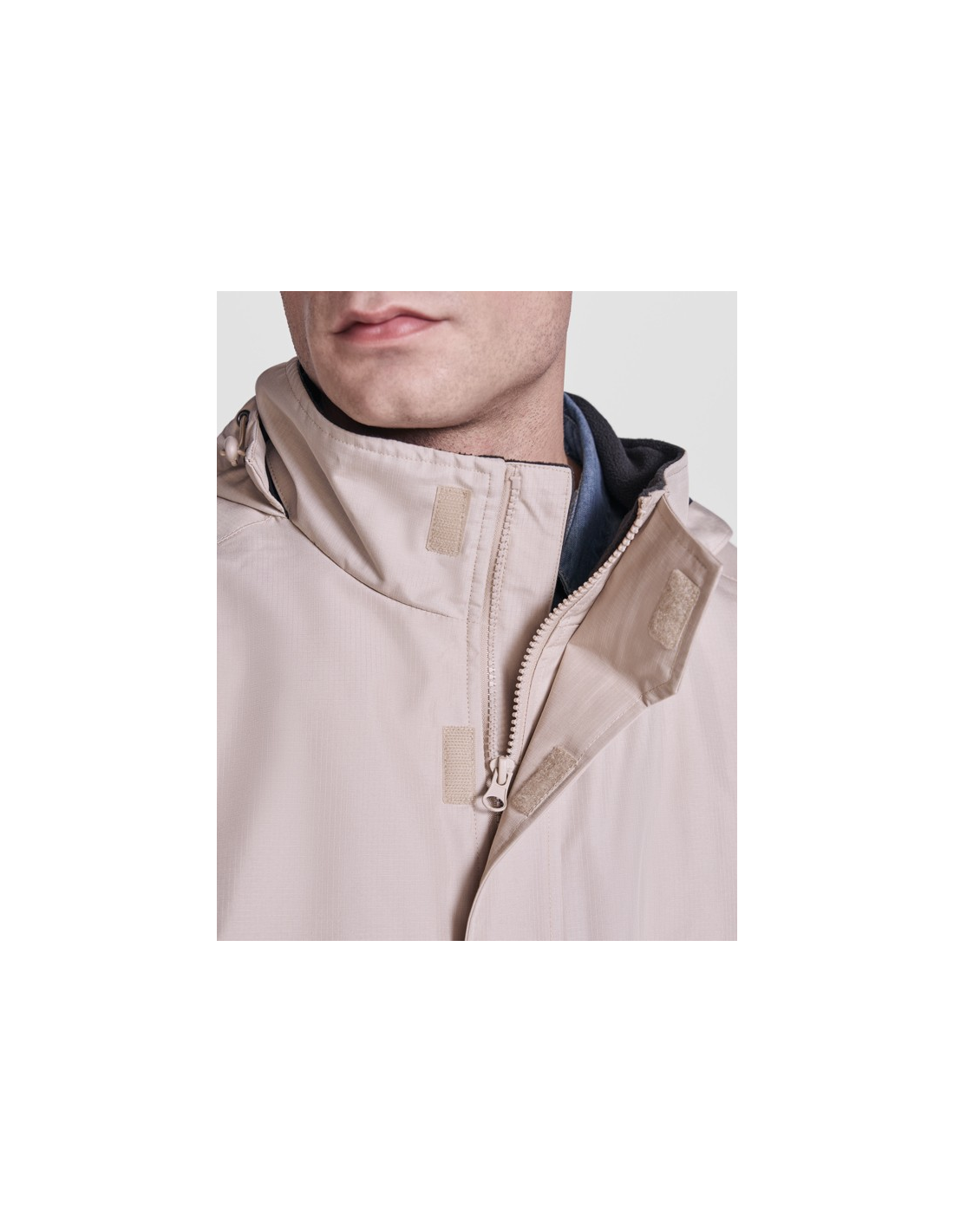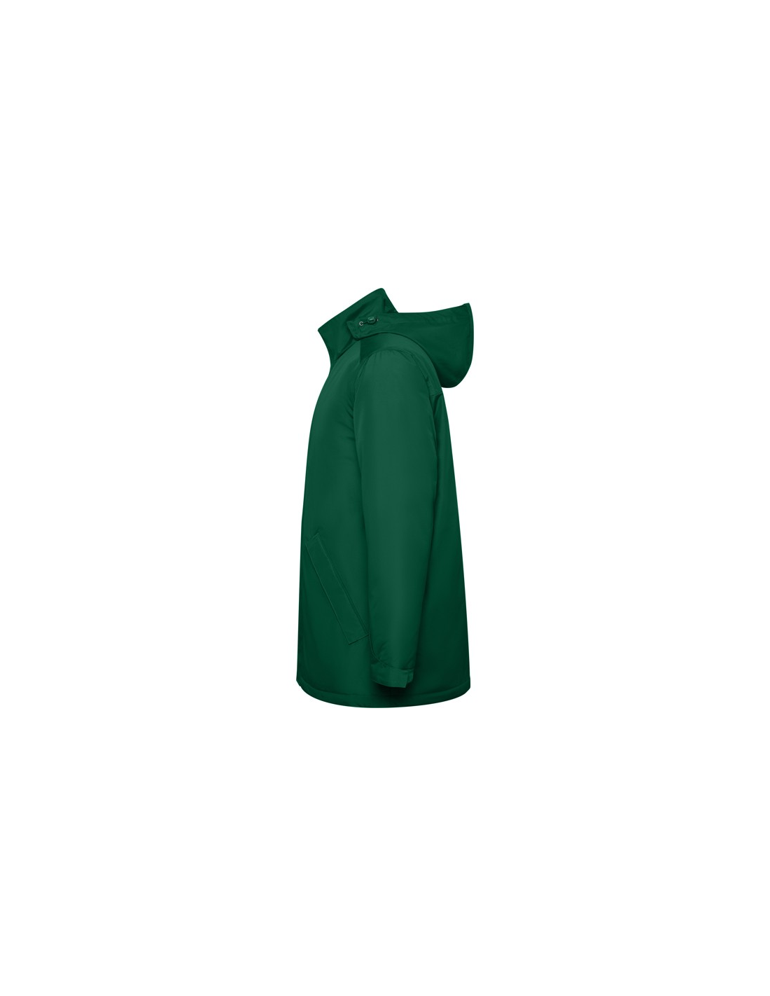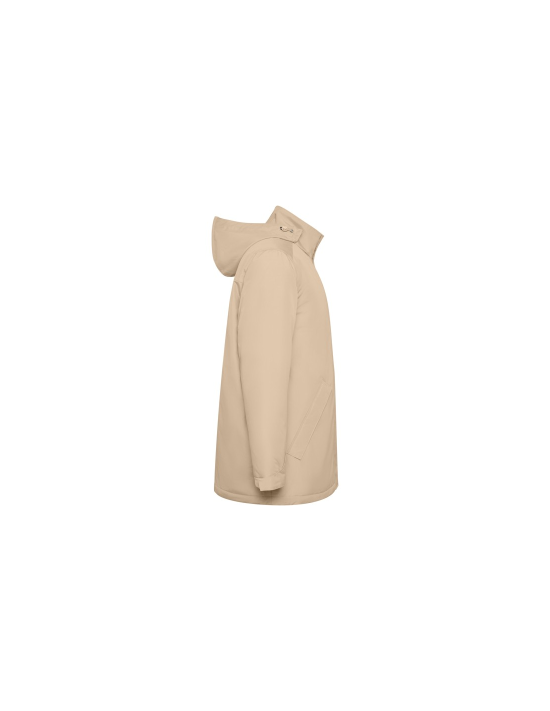 Wodoodporna kurtka typu parka z pikowaną podszewką. Wysoki kołnierz ze zwijanym kapturem i kieszenią na kaptur zapinaną na rzep. Zamek pasujący do koloru klapy. Boczne kieszenie z zapięciem na zamek przykryte klapą. Wewnętrzna kieszeń z zapięciem na rzep. Regulowane mankiety z zapięciem na rzep. Dostęp do wnętrza na plecach i po lewej stronie klatki piersiowej na potrzeby wykonania nadruków.