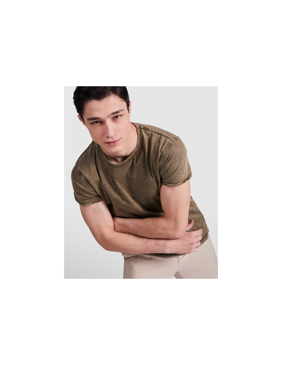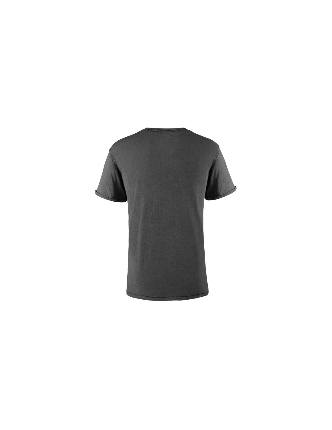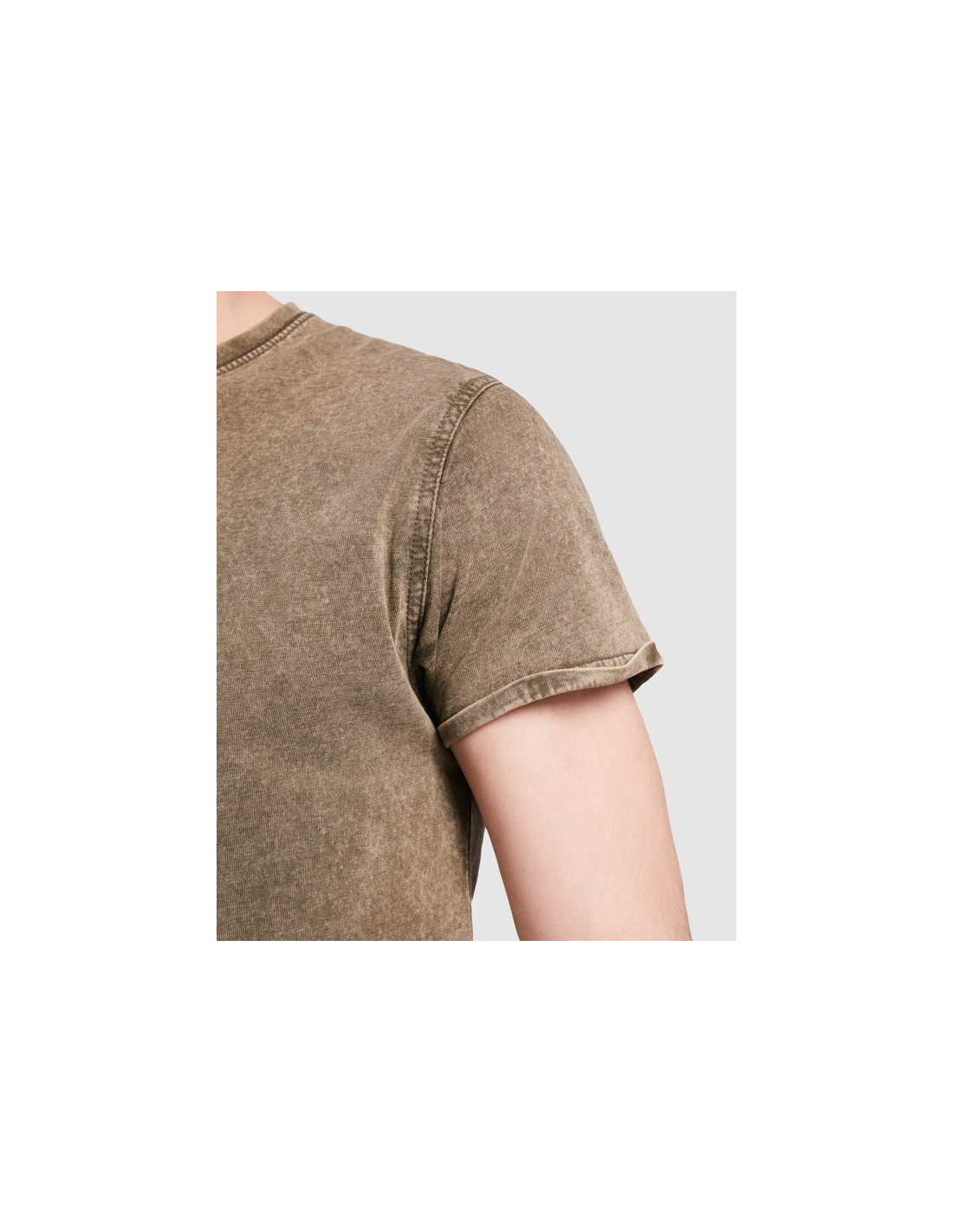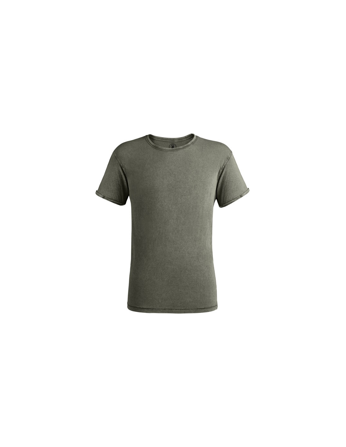 T-shirt z krótkim rękawem, dżinsowy efekt. Okrągły prążkowany dekolt ze wzmocnionym szwem na ramieniu. Podwójne szwy w pachach. Wywijane mankiety.