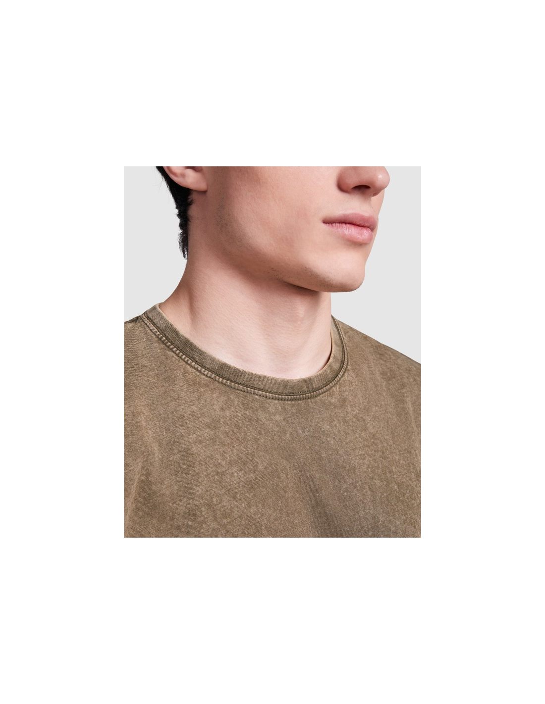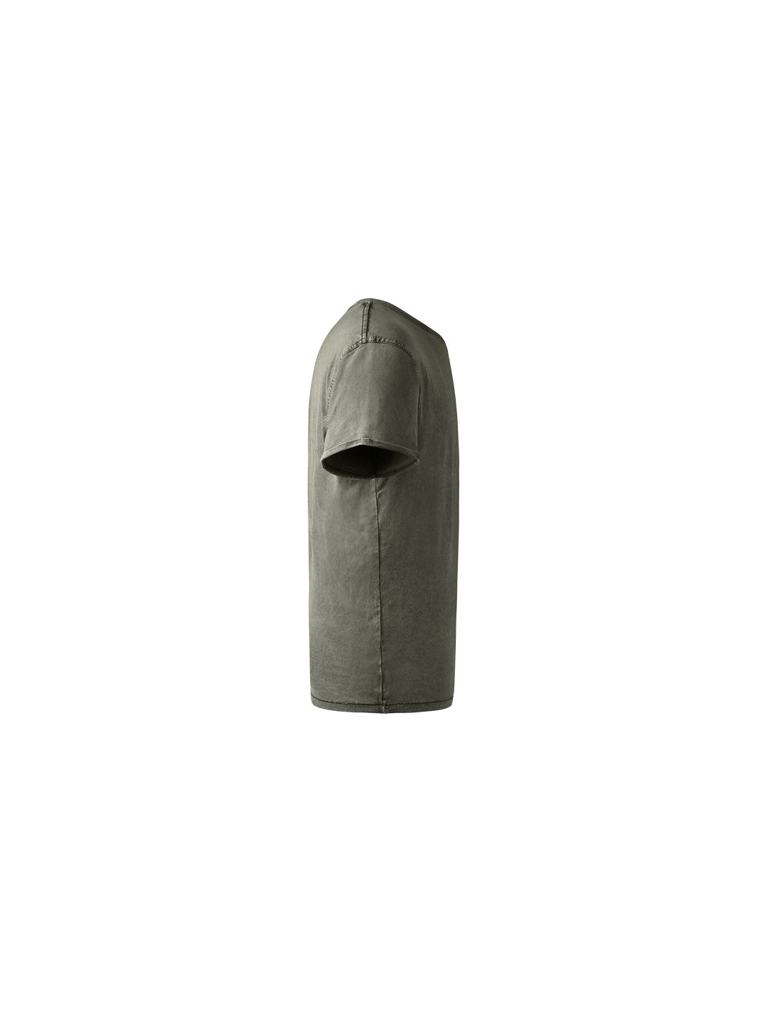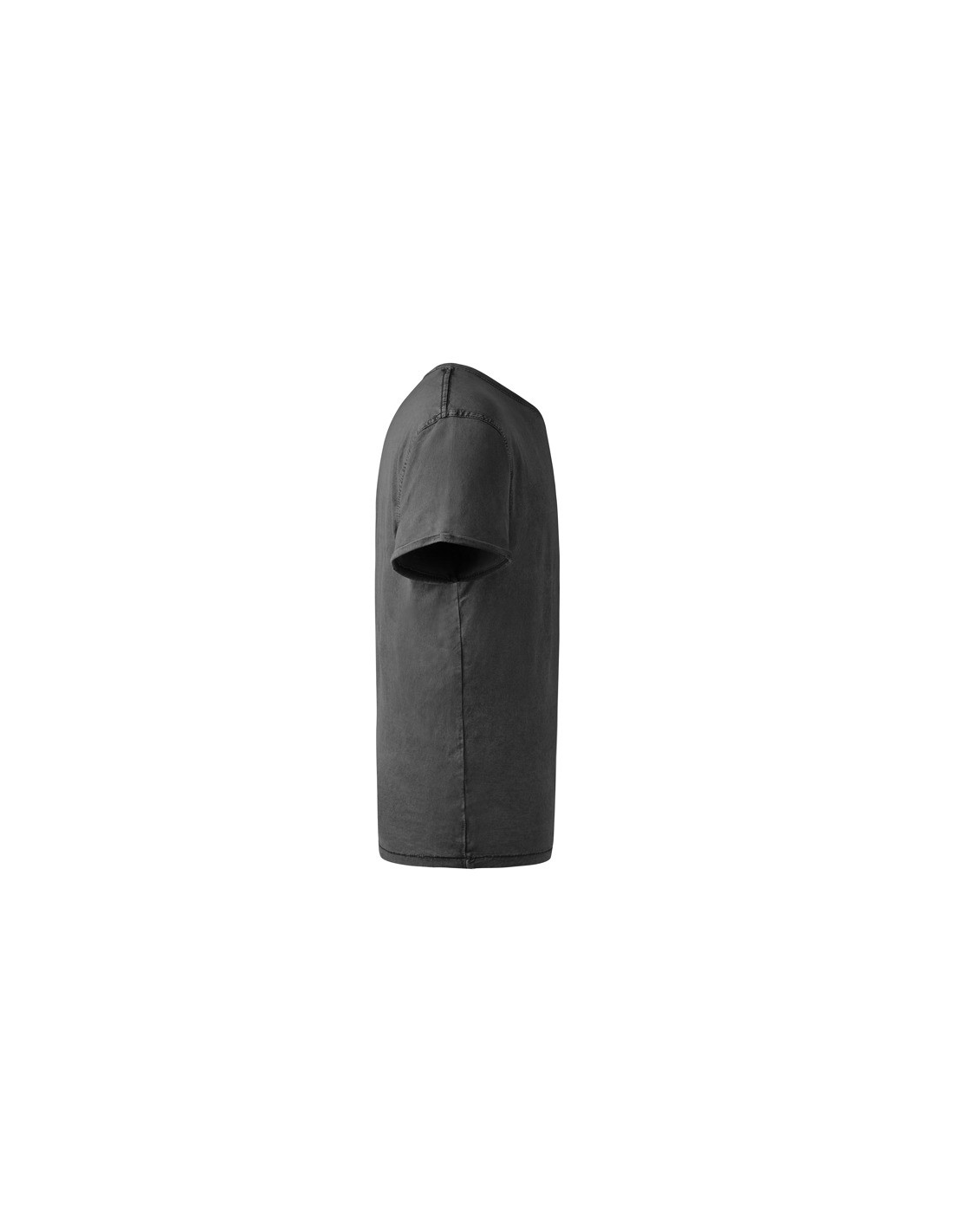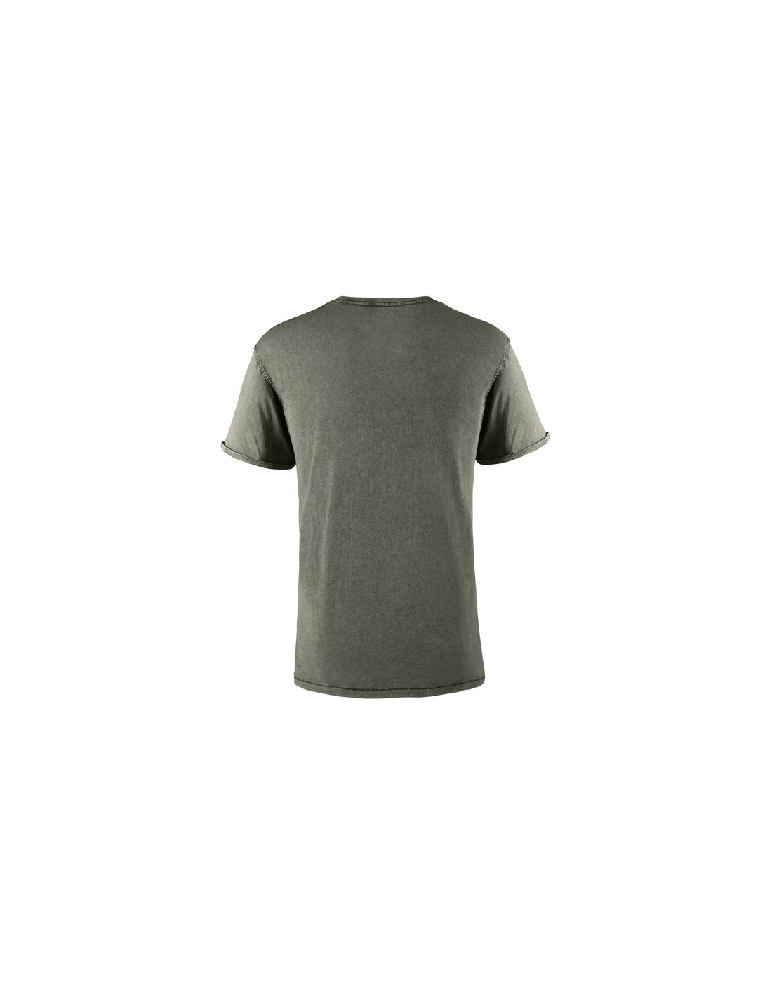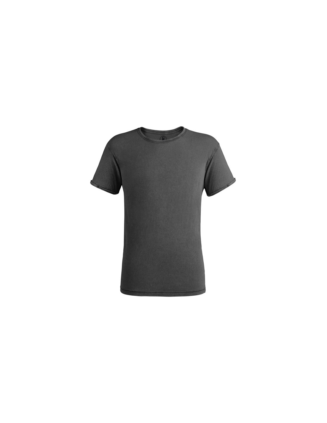 T-shirt z krótkim rękawem, dżinsowy efekt. Okrągły prążkowany dekolt ze wzmocnionym szwem na ramieniu. Podwójne szwy w pachach. Wywijane mankiety.