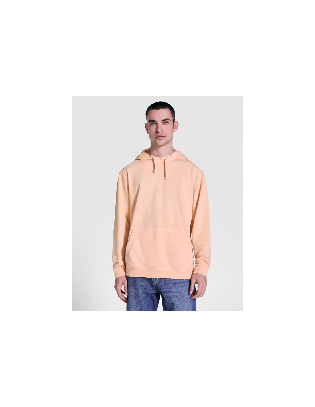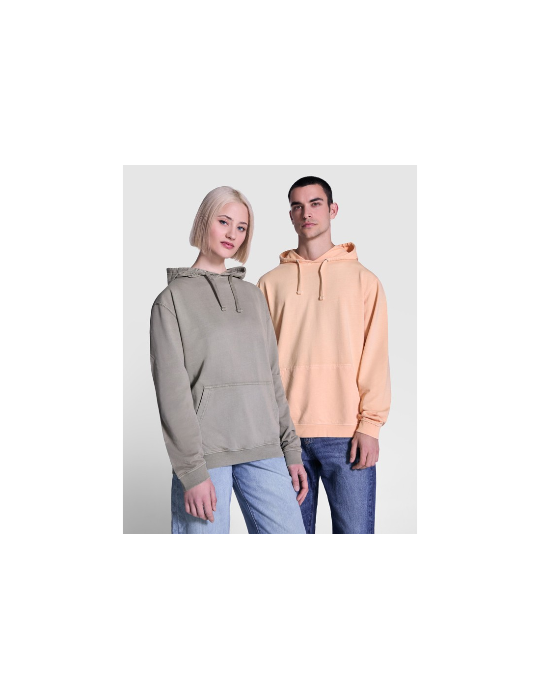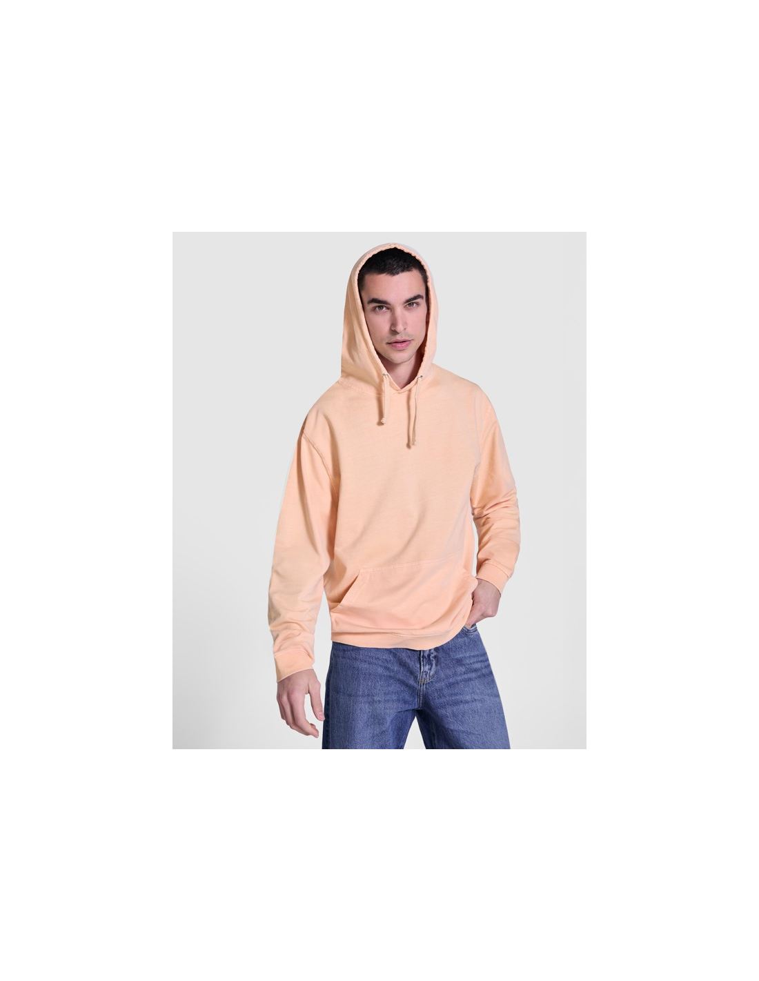 Bluza z kapturem unisex, 100% bawełna Terry z wykończeniem acid-wash. Prążkowane mankiety i dół 2x1. Kaptur z podszewką z materiału Single Jersey, z płaskim sznurkiem ściągającym. Ścieg pod szyją w tym samym kolorze. Kieszeń kangurka.