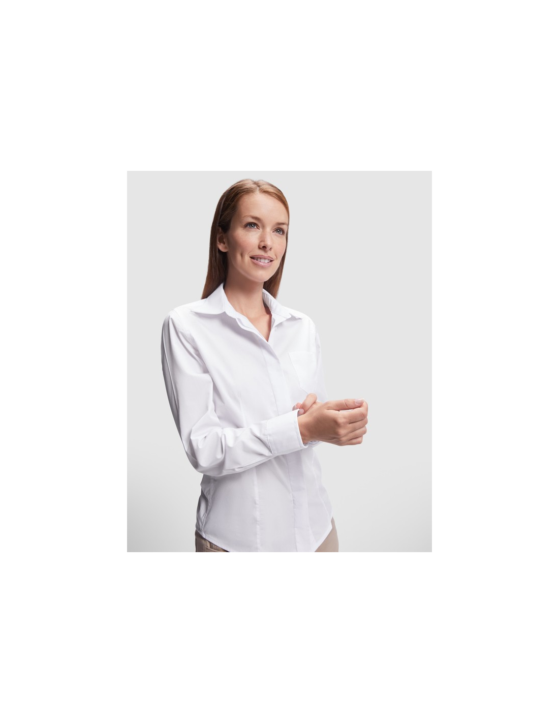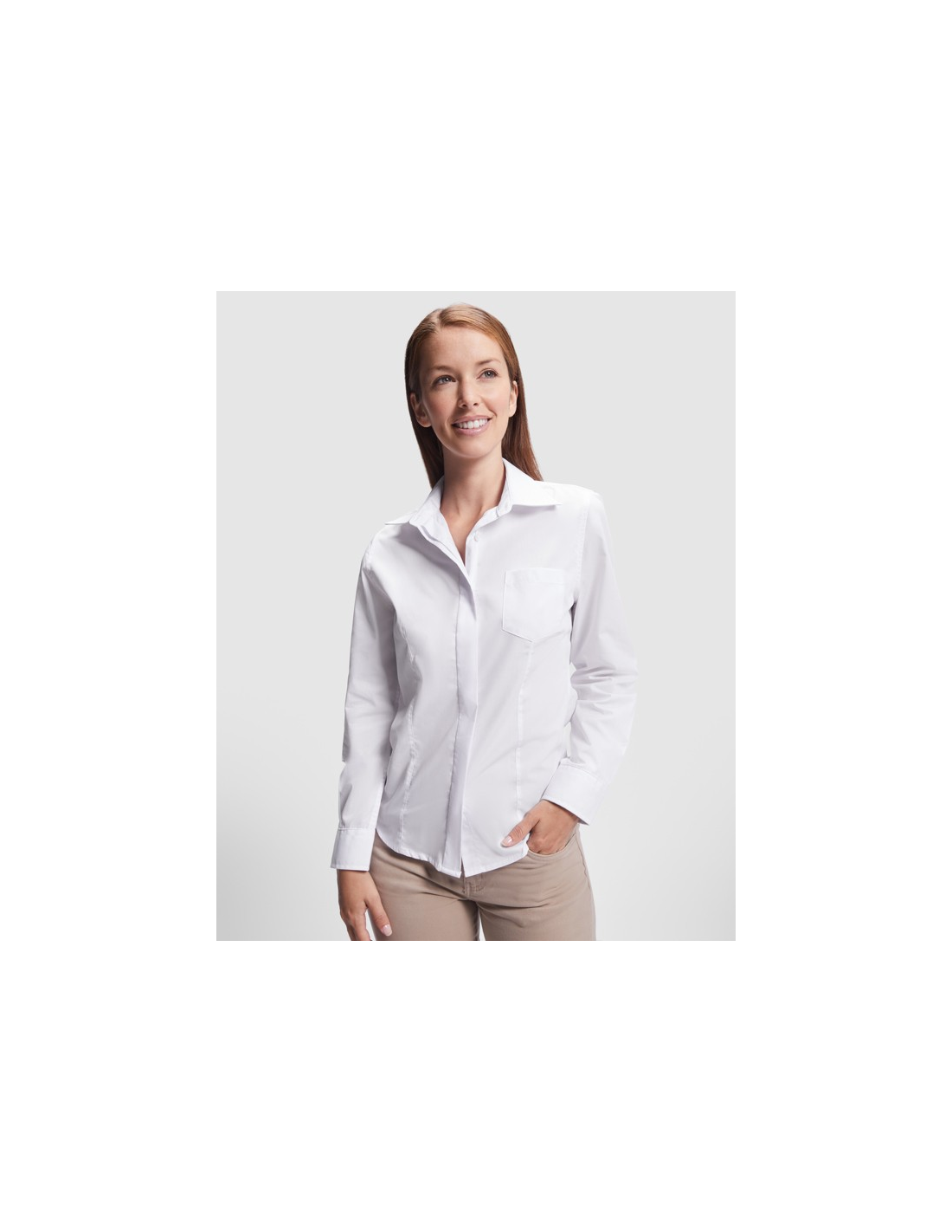 Koszula z długim rękawem, dopasowany krój. · Zaszewki z przodu i z tyłu. · Kieszeń na lewej piersi, plisa zakrywająca guziki. · Mankiet z dwoma guzikami. · Łatwa w pielęgnacji.