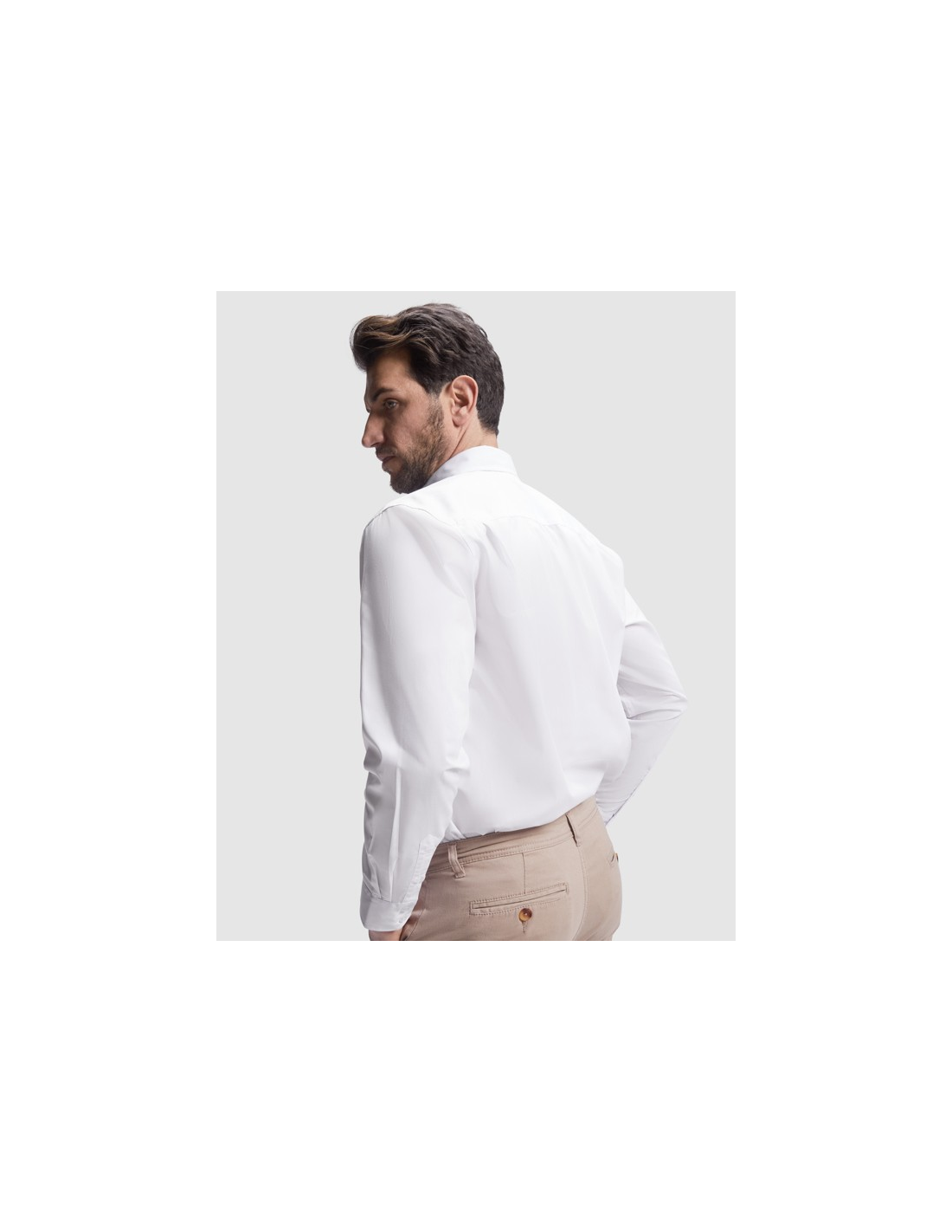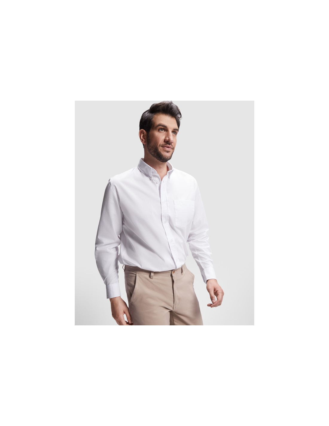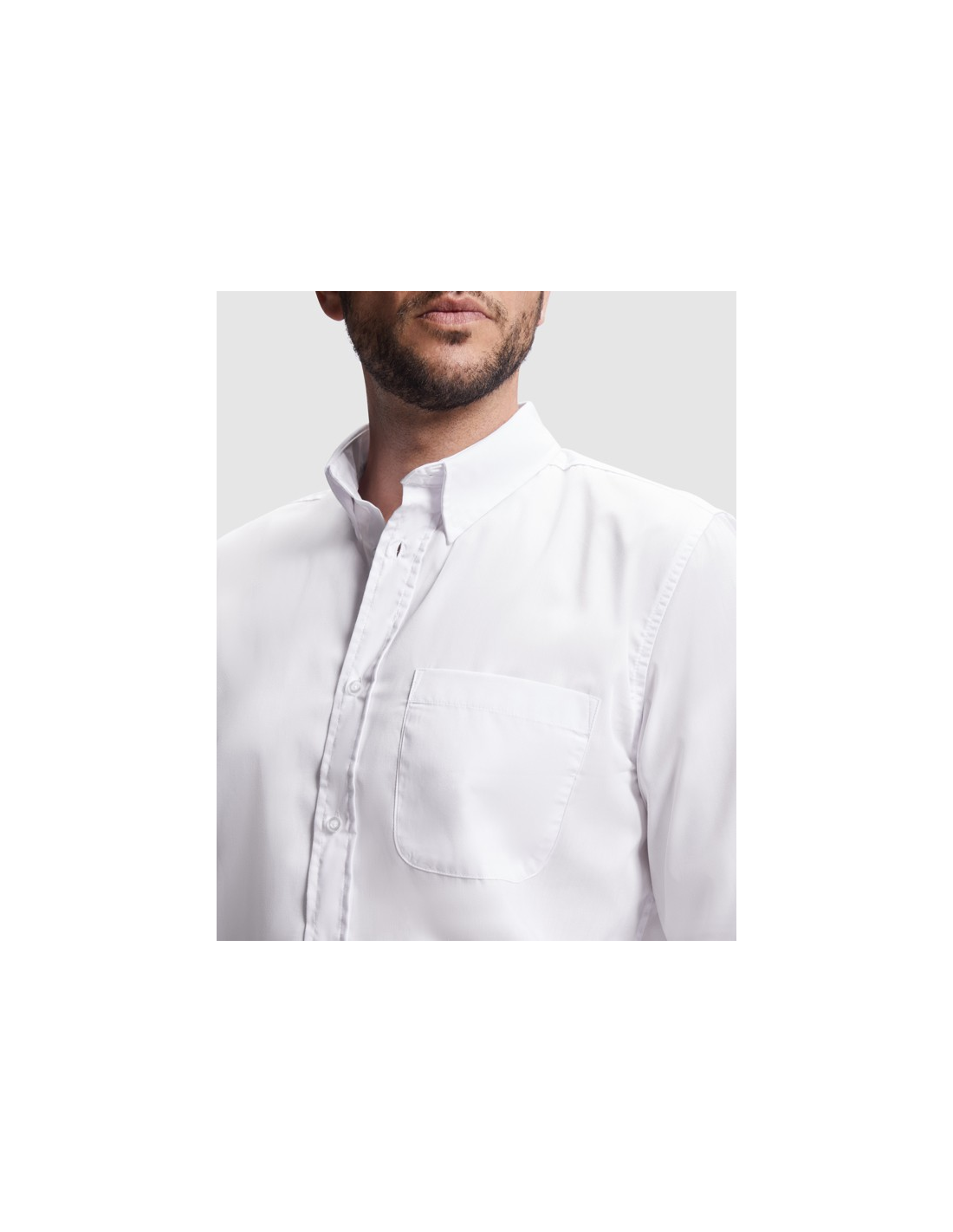 Koszula z długim rękawem, klasycznym kołnierzykiem i kieszonką. · Kieszeń na lewej piersi. · Zapięcie na siedem guzików w tym samym kolorze, co tkanina. · Łatwa pielęgnacja.
