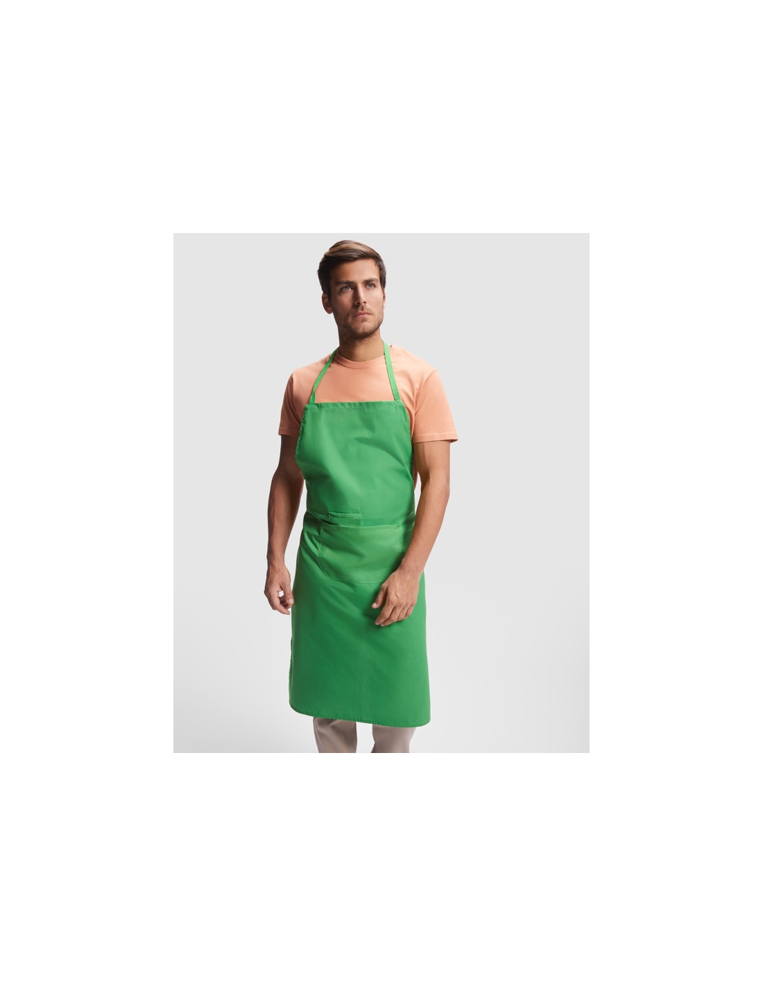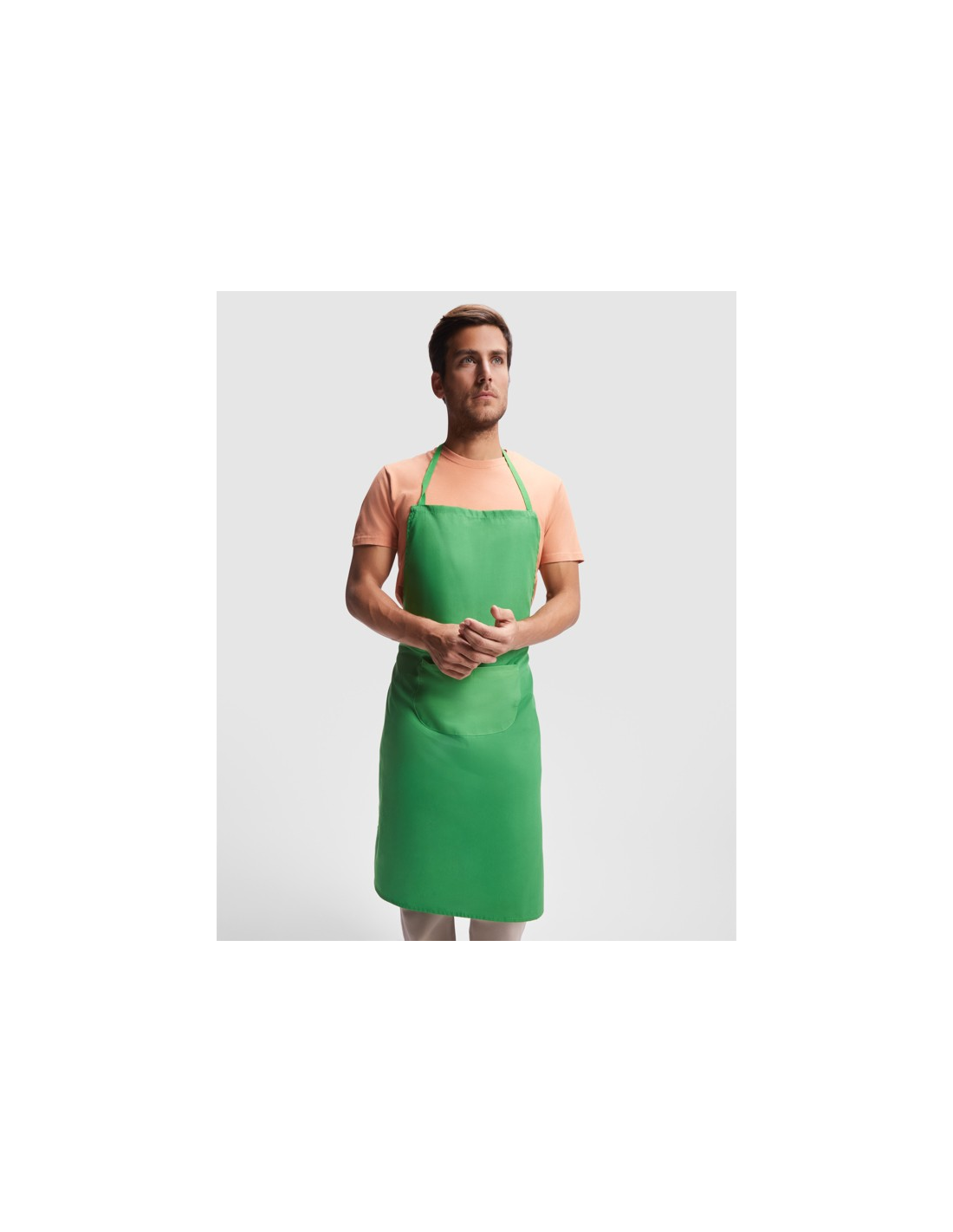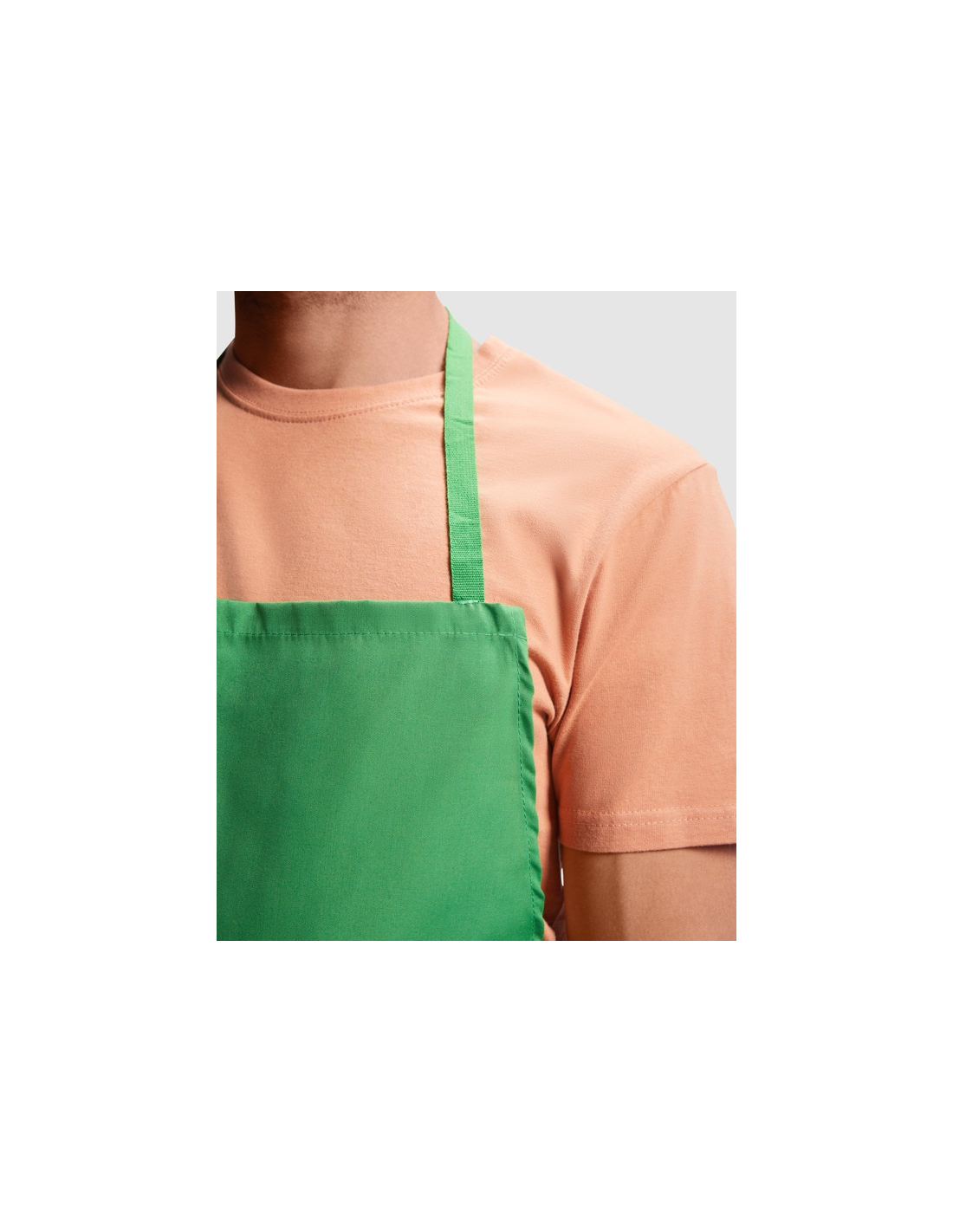 Długi fartuch popelinowy: · Tasiemka na karku w kolorze. · Wiązanie po bokach do sznurowania. · Dwie kieszenie z przodu, jedna wewnętrzna i jedna duża naszywana kieszeń.