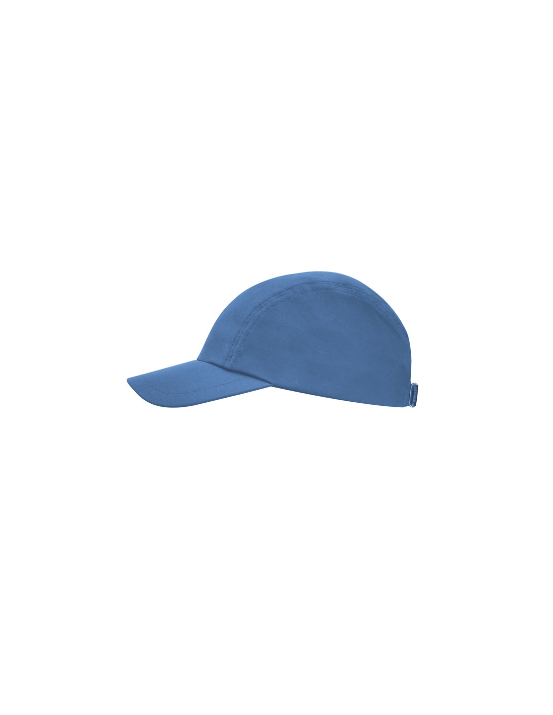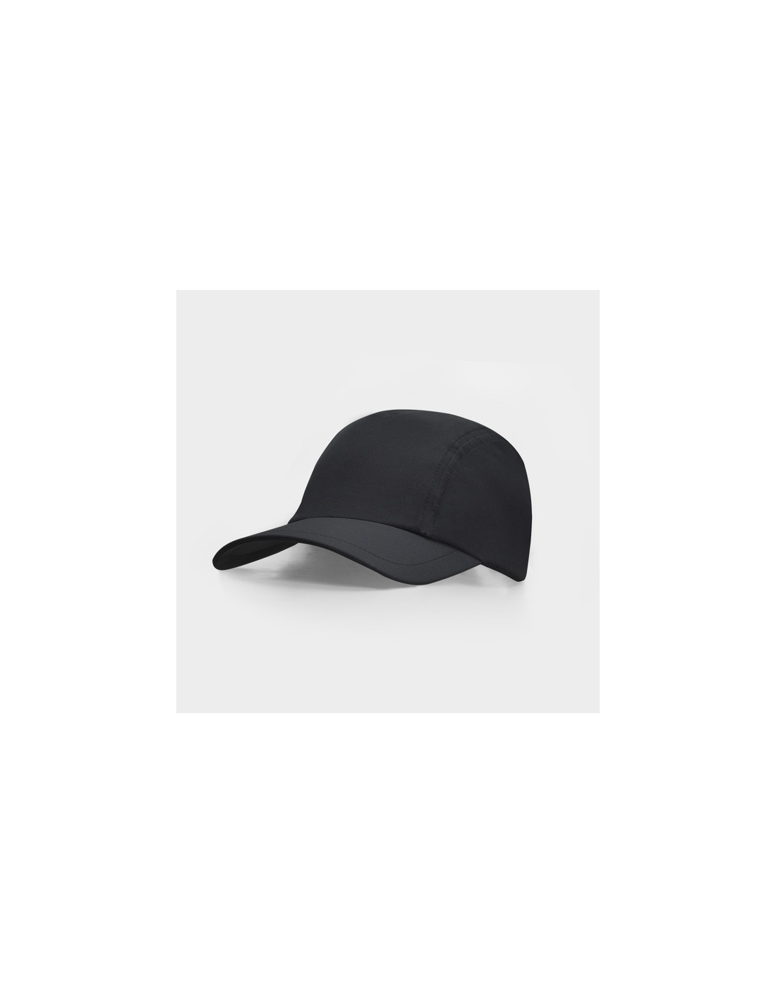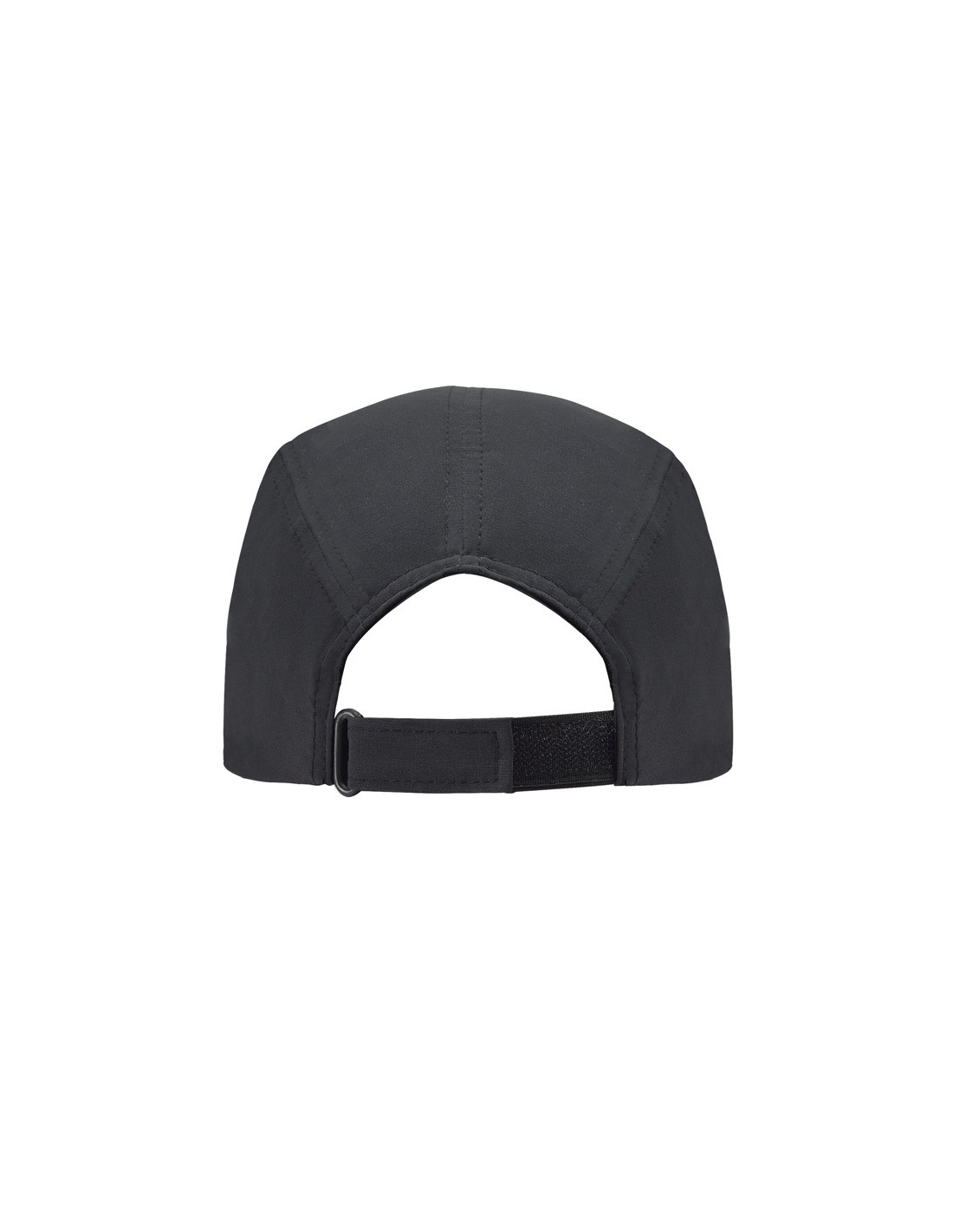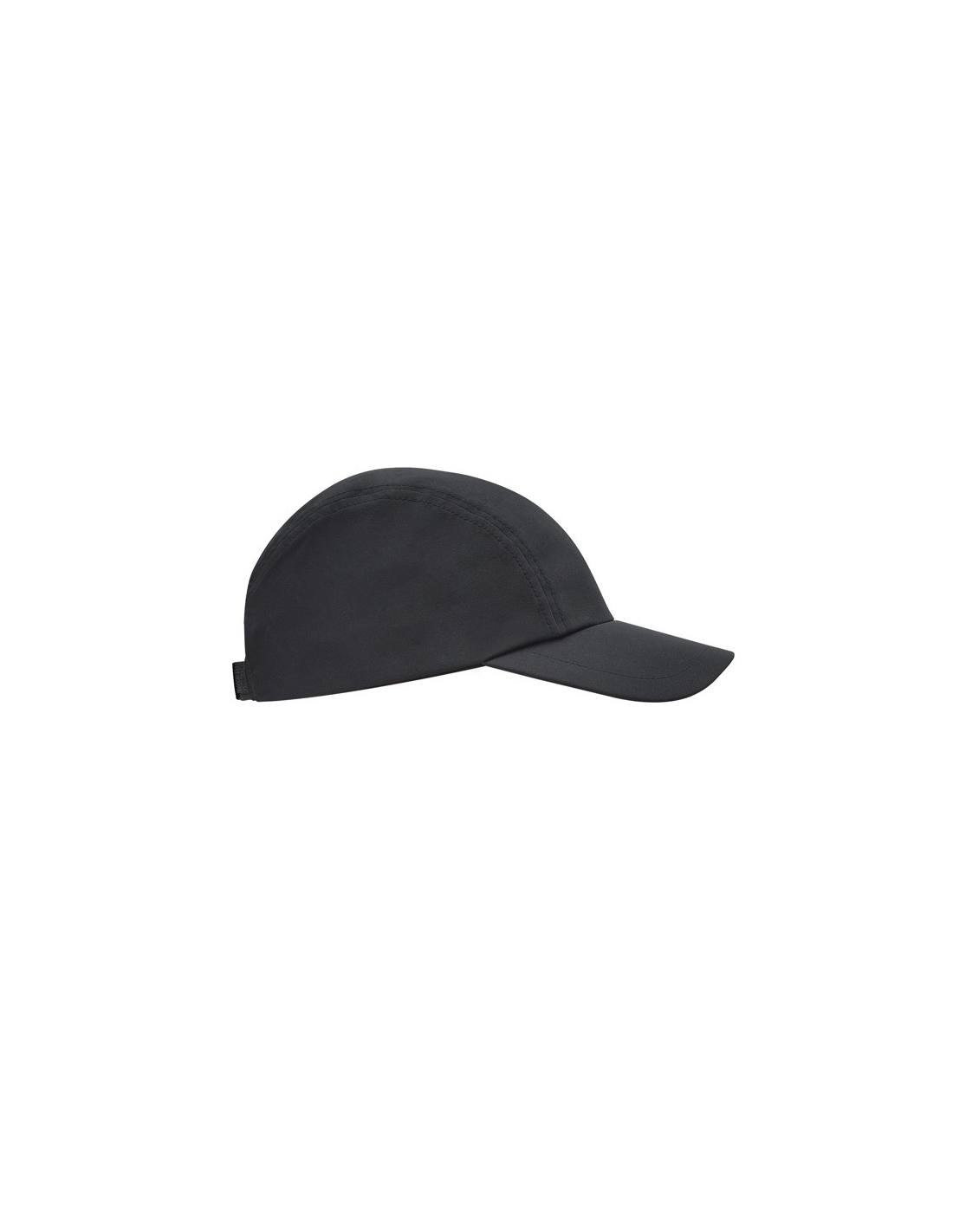 Techniczna czapka z daszkiem, 3 panele. Lekka i oddychająca tkanina. Tylne regulowane zapięcie na rzep. Przednia część czapki przeznaczona do naduku.
