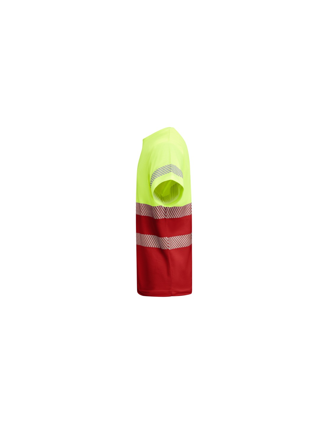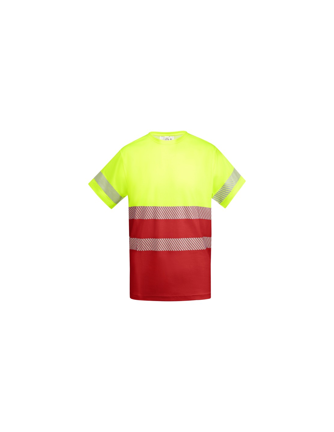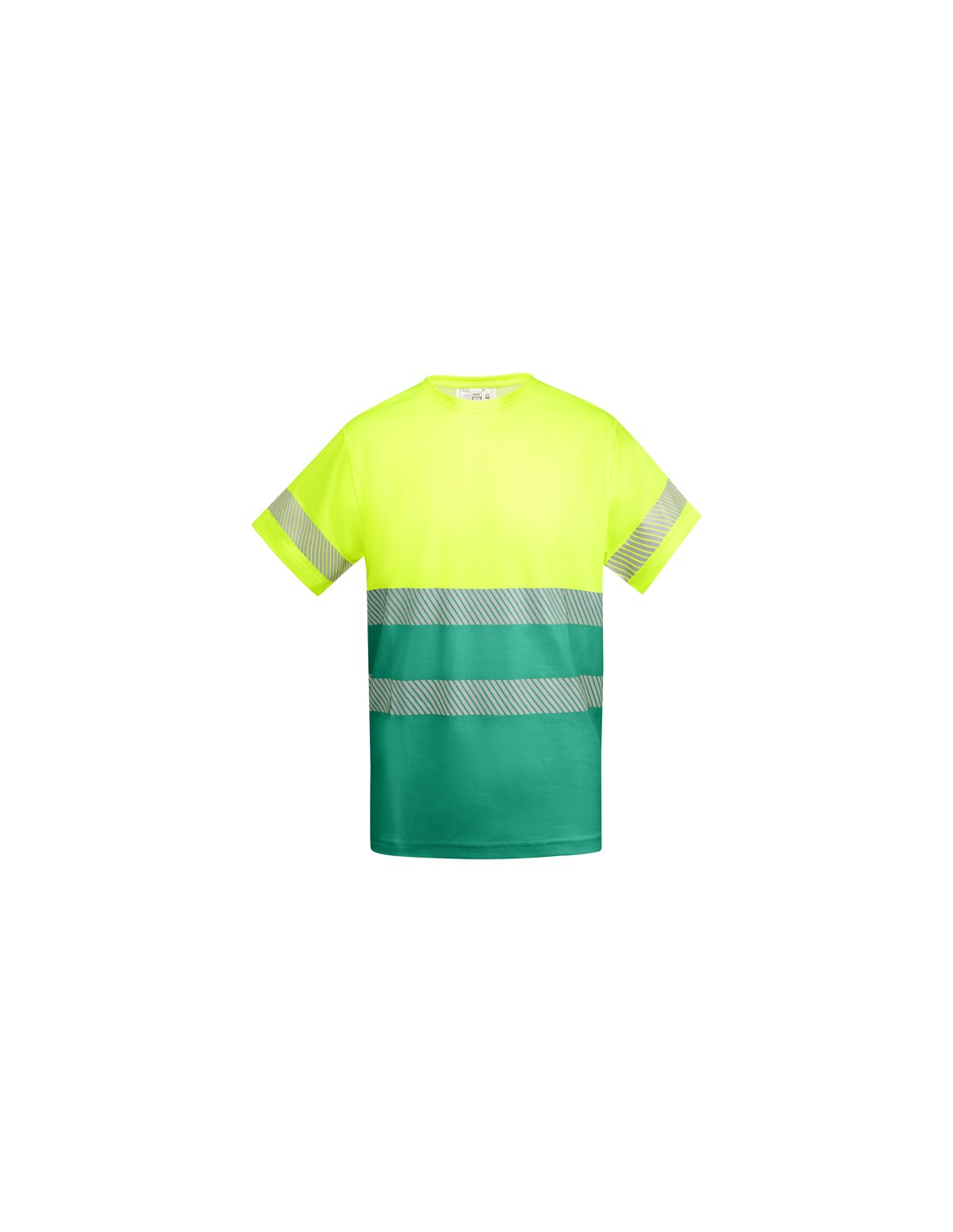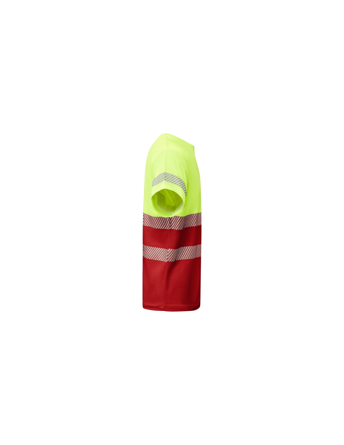 Techniczny T-shirt z krótkim rękawem o wysokiej widoczności. · Dwa segmentowe paski o wysokiej widoczności na klatce piersiowej i jeden na rękawach. · Zaokrąglony dekolt wykonany w głównej tkaninie. · Wygodna tkanina mieszana z poliestru i bawełny zapewnia lepsze oddychanie ubrania.