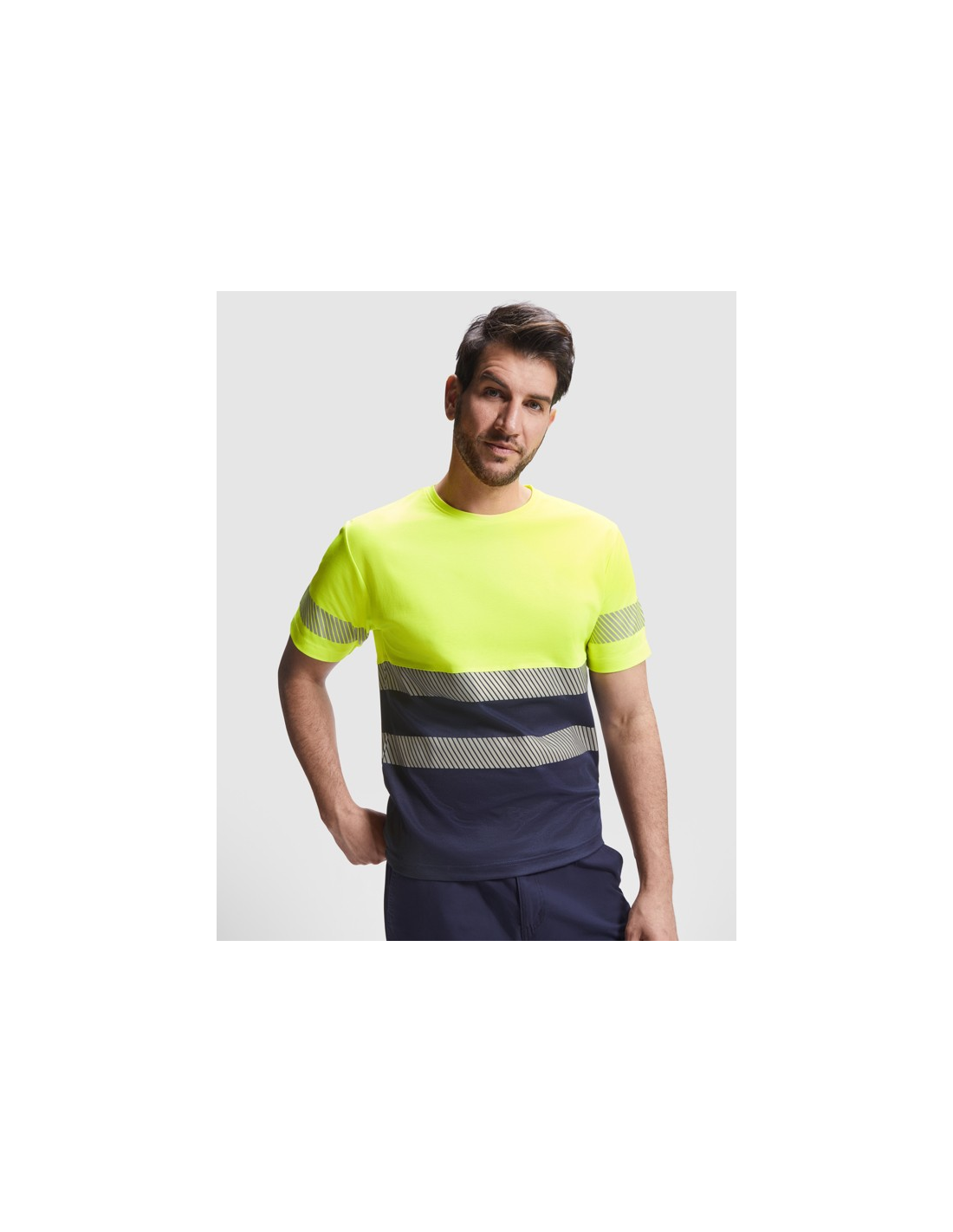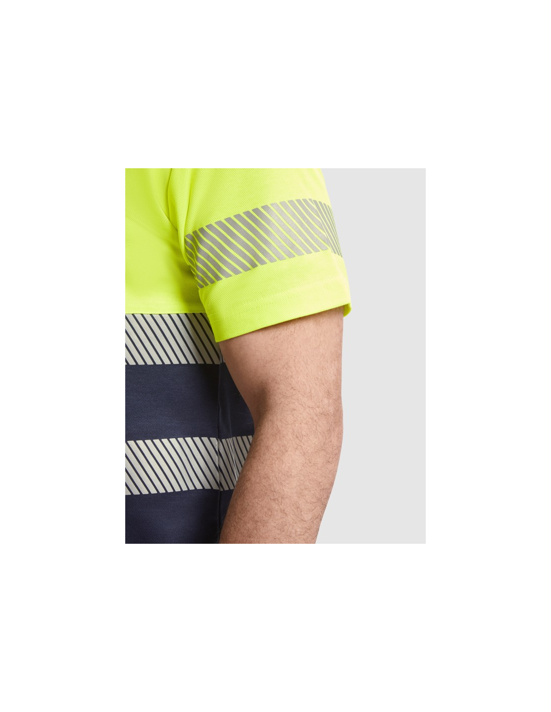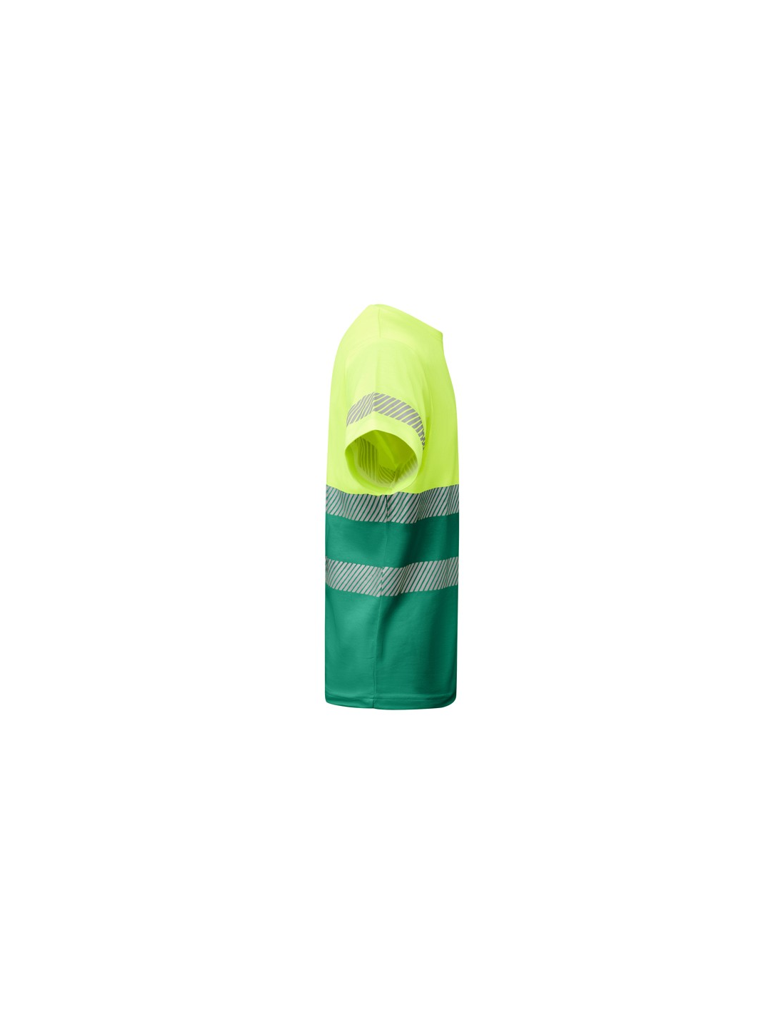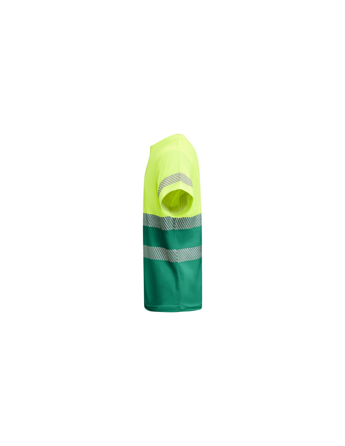 Techniczny T-shirt z krótkim rękawem o wysokiej widoczności. · Dwa segmentowe paski o wysokiej widoczności na klatce piersiowej i jeden na rękawach. · Zaokrąglony dekolt wykonany w głównej tkaninie. · Wygodna tkanina mieszana z poliestru i bawełny zapewnia lepsze oddychanie ubrania.