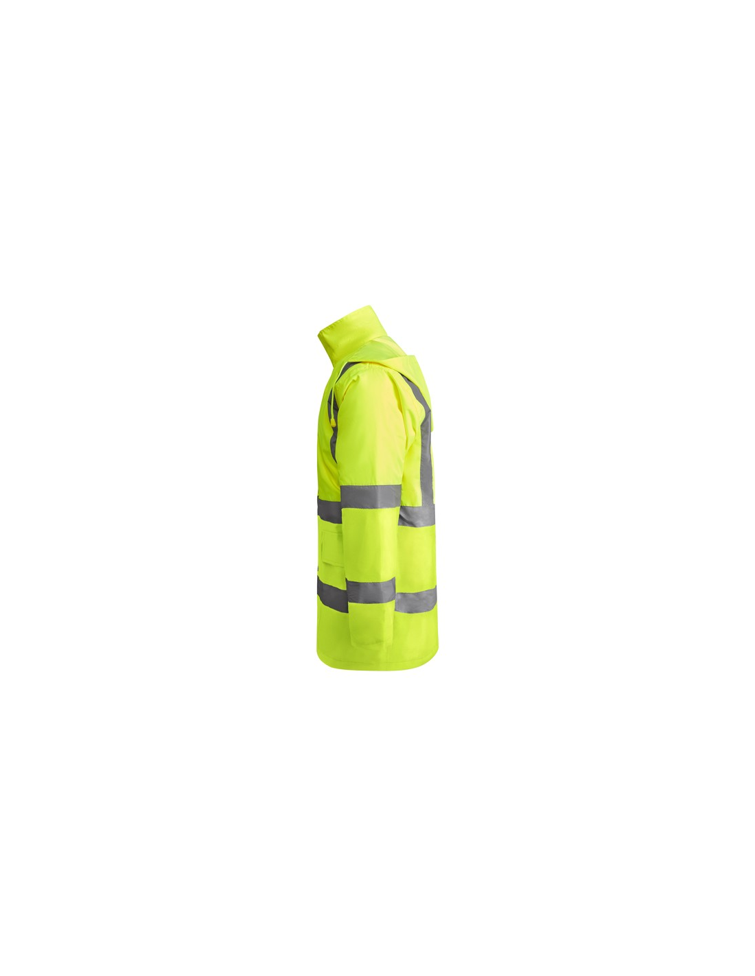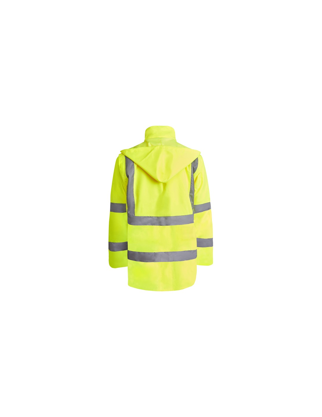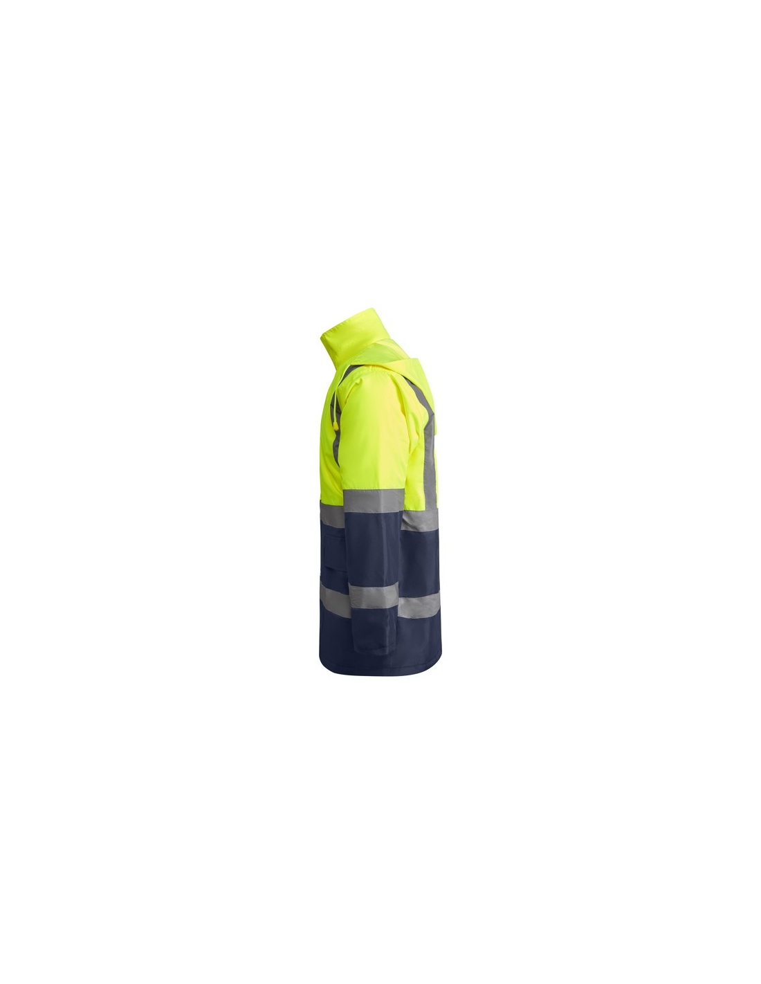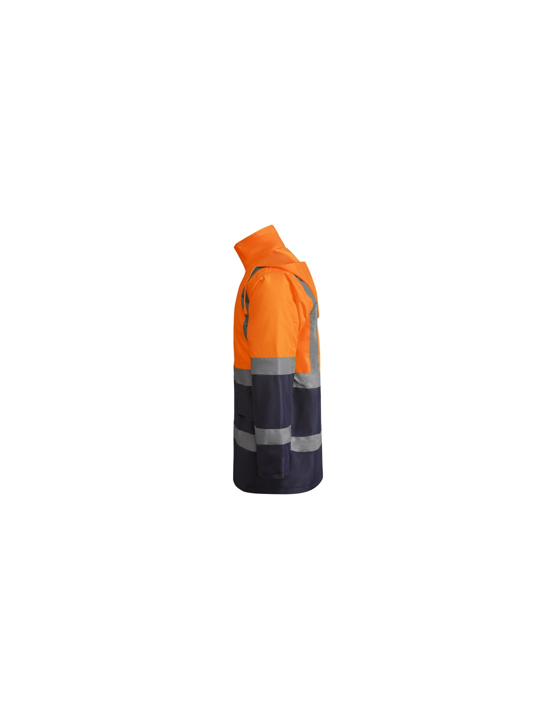 Łączona i wyściełana parka o wysokiej widoczności. · Wodoodporna tkanina z uszczelnionymi szwami. · Dwa poziome paski o wysokiej widoczności na klatce piersiowej i rękawach oraz pionowe paski na ramionach. · Składany kaptur ze ściągaczem do regulacji. · Kieszeń na piersi z klapką, zapięciem na rzepem i identyfikatorem. · Dwie przednie kieszenie z klapkami. · Wewnętrzna kieszeń z zapięciem na zamek błyskawiczny. · Ukryte mankiety ze ściągaczem 1x1. · Przednie rozcięcie z zapięciem na metalowe guziki z podwójnym zamkiem błyskawicznym z przodu. · Wewnętrzny dostęp do sitodruku.