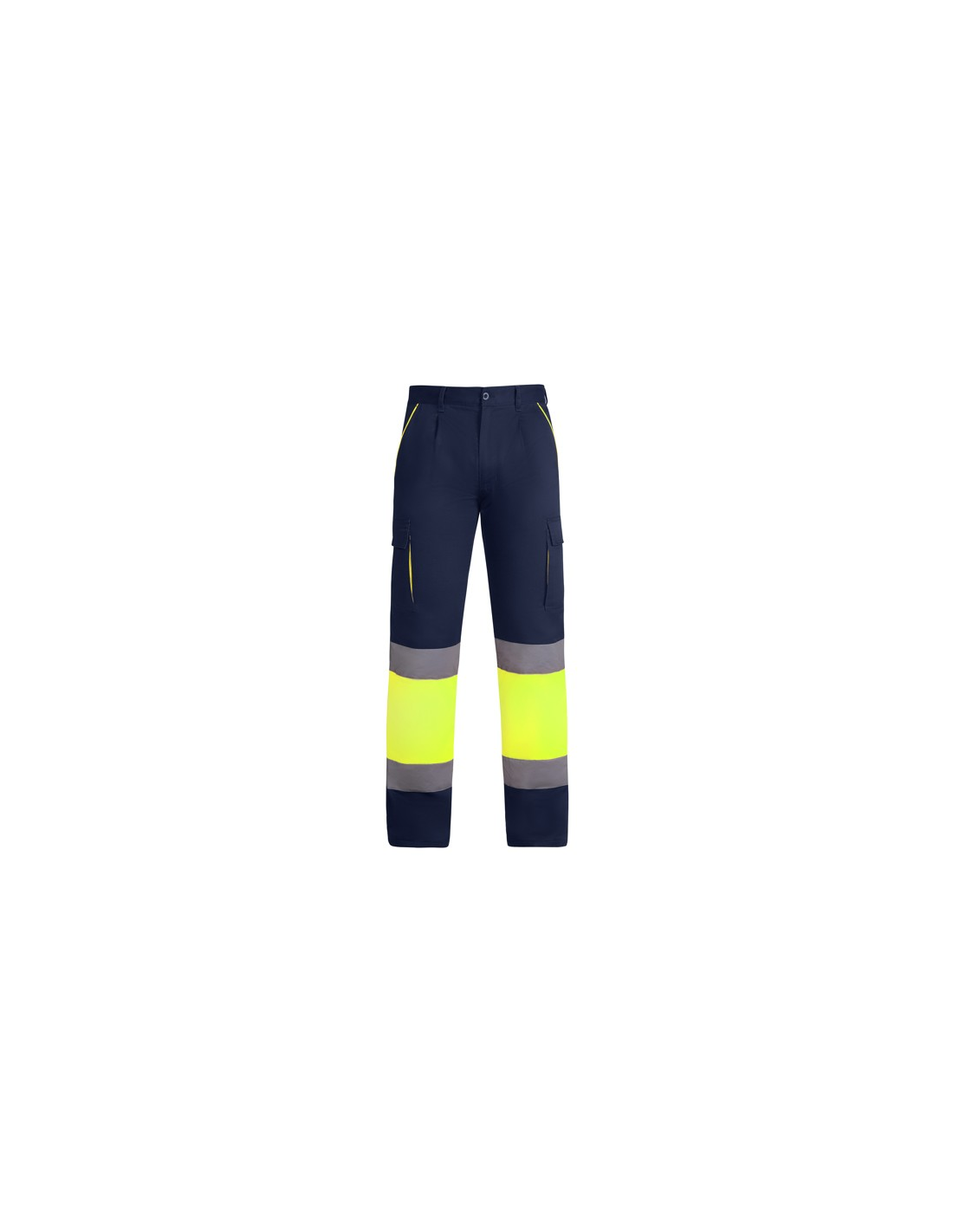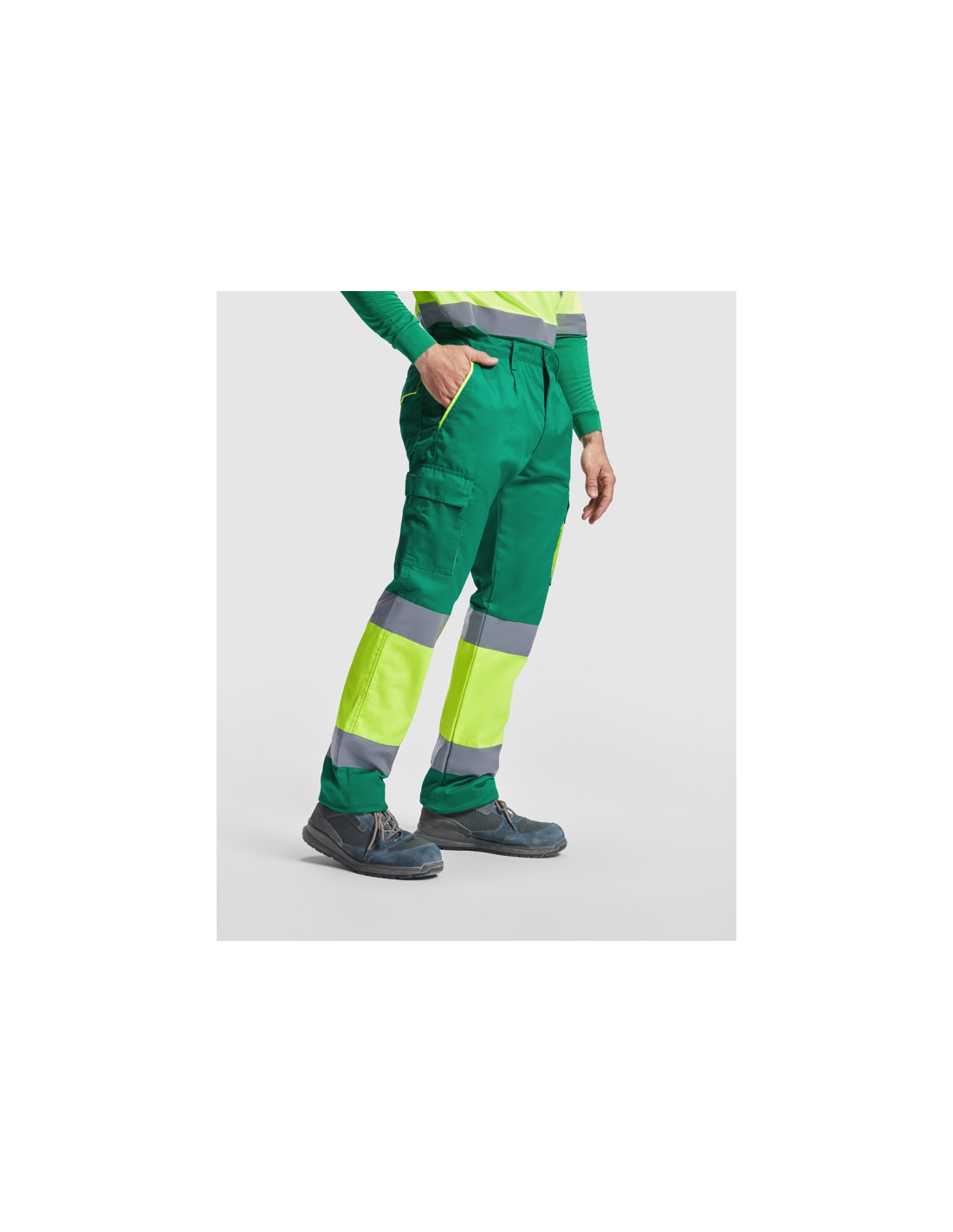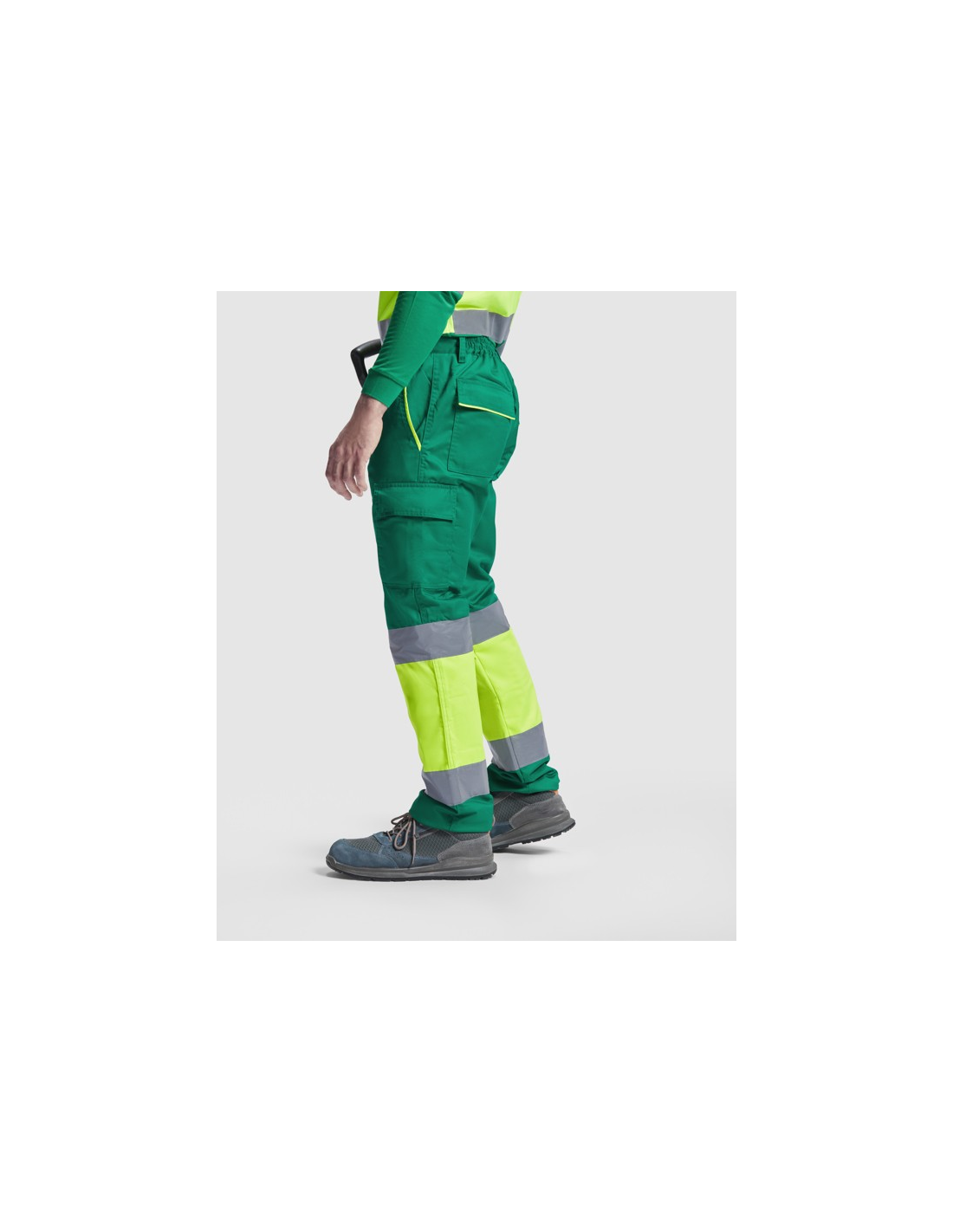 Długie spodnie z podszewką z wieloma kieszeniami o wysokiej widoczności. · Połączenie dwóch kolorów i paski o wysokiej widoczności. · Kontrastowe detale fluorescencyjne w kieszeniach. · Podszewka z polaru. · Elastyczny pas z tyłu. · Dwie przednie kieszenie. · Dwie tylne kieszenie z klapkami i zapięciem na rzep. · Dwie plisowane kieszenie boczne z klapkami i zapięciem na rzep.