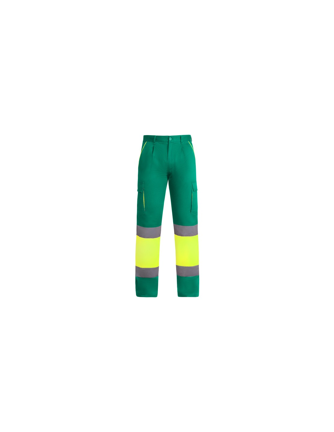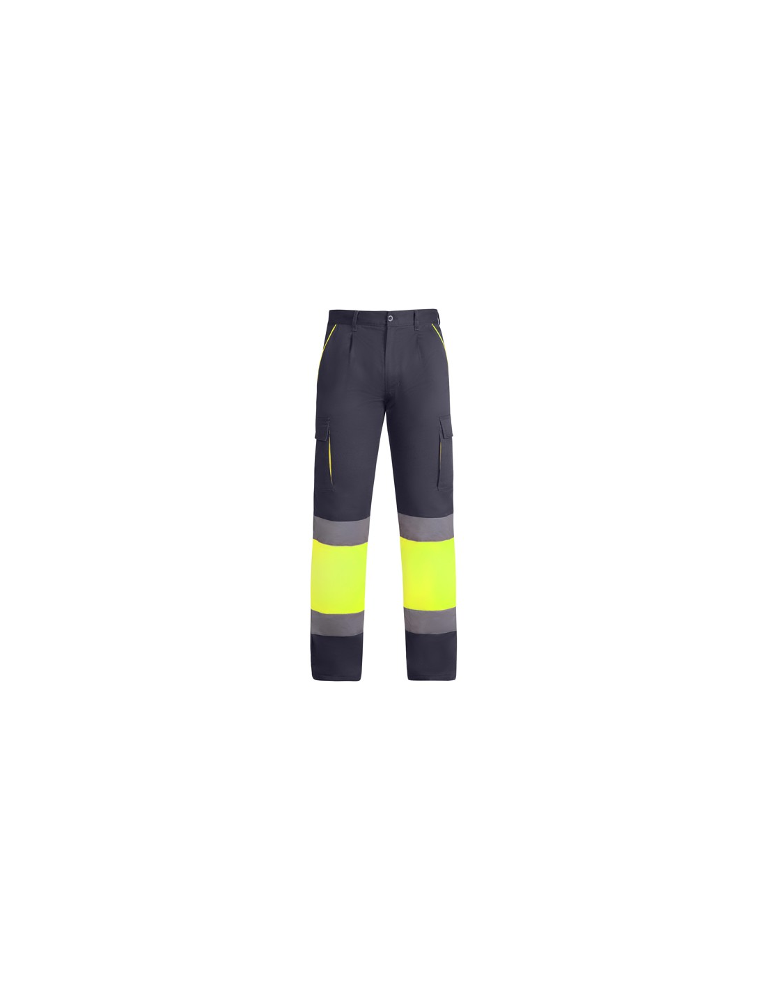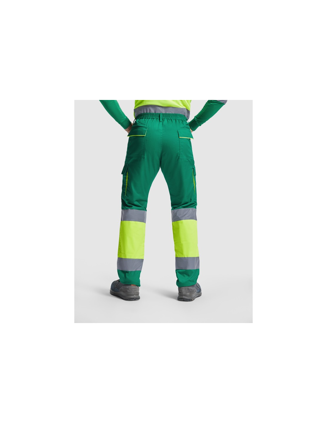 Długie spodnie z podszewką z wieloma kieszeniami o wysokiej widoczności. · Połączenie dwóch kolorów i paski o wysokiej widoczności. · Kontrastowe detale fluorescencyjne w kieszeniach. · Podszewka z polaru. · Elastyczny pas z tyłu. · Dwie przednie kieszenie. · Dwie tylne kieszenie z klapkami i zapięciem na rzep. · Dwie plisowane kieszenie boczne z klapkami i zapięciem na rzep.