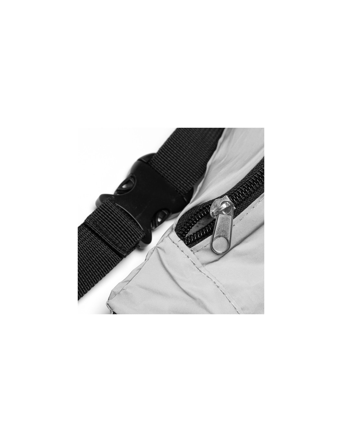 Odblaskowa nerka z dużą przednią kieszenią wykonaną z poliestru.