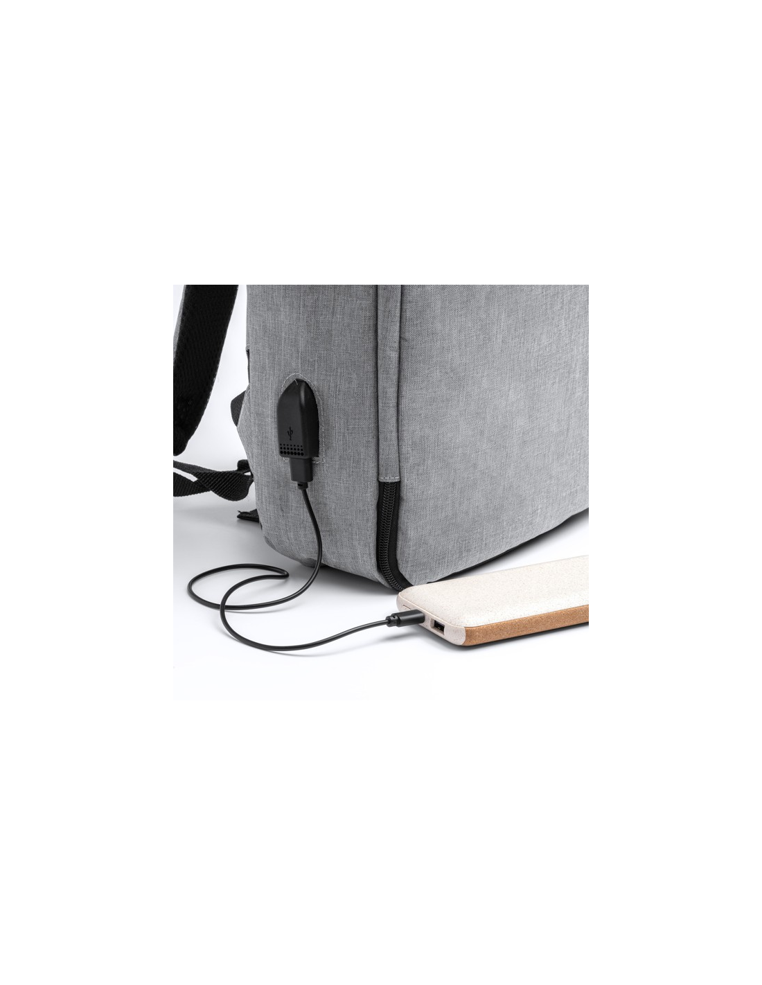 Plecak na dokumenty wykonany z poliestru RPET 300D pochodzącego z recyklingu w stylu Vigore to idealny wybór dla osób, które szukają równowagi między stylem, funkcjonalnością i trwałością. Plecak wykonany z materiałów pochodzących z recyklingu to wybór przyjazny dla środowiska. Główna kieszeń plecaka jest wyściełana, zapewniając bezpieczną i wygodną ochronę dla laptopa o przekątnej 13 cali lub tabletu. Ponadto posiada poręczny port USB do podłączenia power banku (brak w zestawie), co pozwala na ładowanie urządzeń elektronicznych w podróży. Uchwyty i plecy plecaka są wyściełane, zapewniając optymalny komfort przez cały dzień, nawet podczas przenoszenia ciężkich ładunków. Pasek do mocowania daje możliwość przymocowania plecaka do walizki na kółkach, co ułatwia poruszanie się po lotniskach i dworcach. Dzięki stylowi Vigore ten plecak łączy w sobie styl i uniwersalność. Niezależnie od tego czy używasz go do pracy, podczas spotkań czy w podróży, wspomniana aktówka zapewnia przestrzeń i funkcjonalność, których potrzebujesz, aby zabrać ze sobą wszystko, czego potrzebujesz. Wybierz plecak wykonany z poliestru RPET 300D pochodzącego z recyklingu w stylu Vigore i noś swoje rzeczy osobiste w dobrym stylu, jednocześnie przyczyniając się do ochrony środowiska.