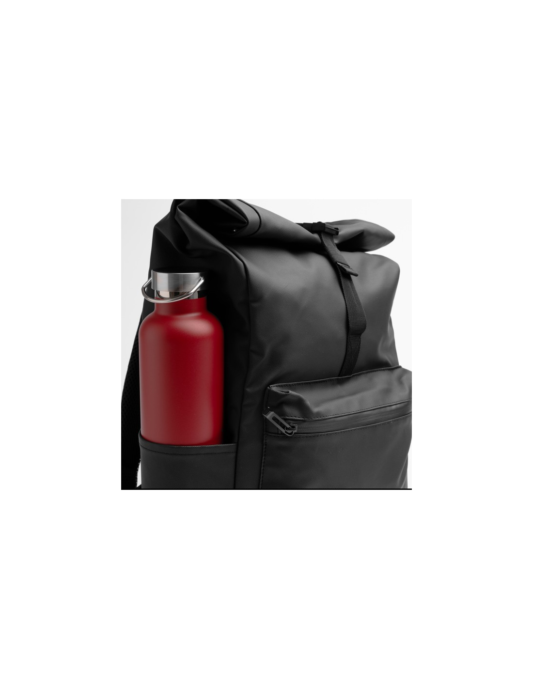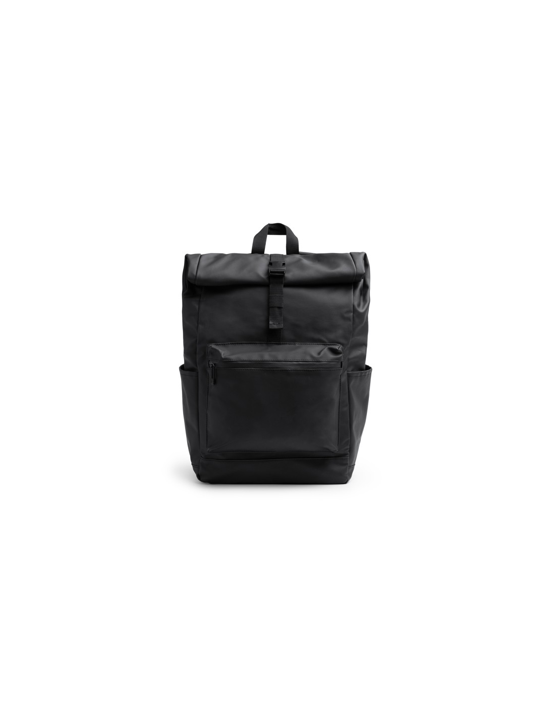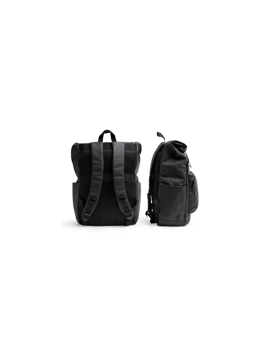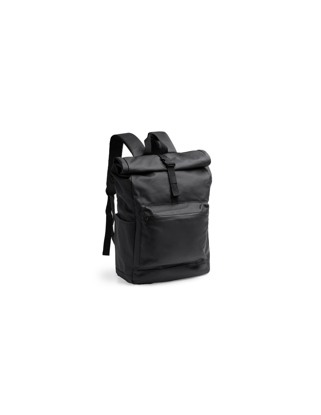 Wielofunkcyjny plecak wykonany ze skóry Pu. Duża komora główna z bocznymi zapięciami na rzepy i zapięciem zabezpieczającym. Wewnętrzna wyściełana kieszeń 18”. Zewnętrzna wodoodporna kieszeń zapinana na zamek i dwie kieszenie boczne. Pasek do wózka. Pojemność 21 l.