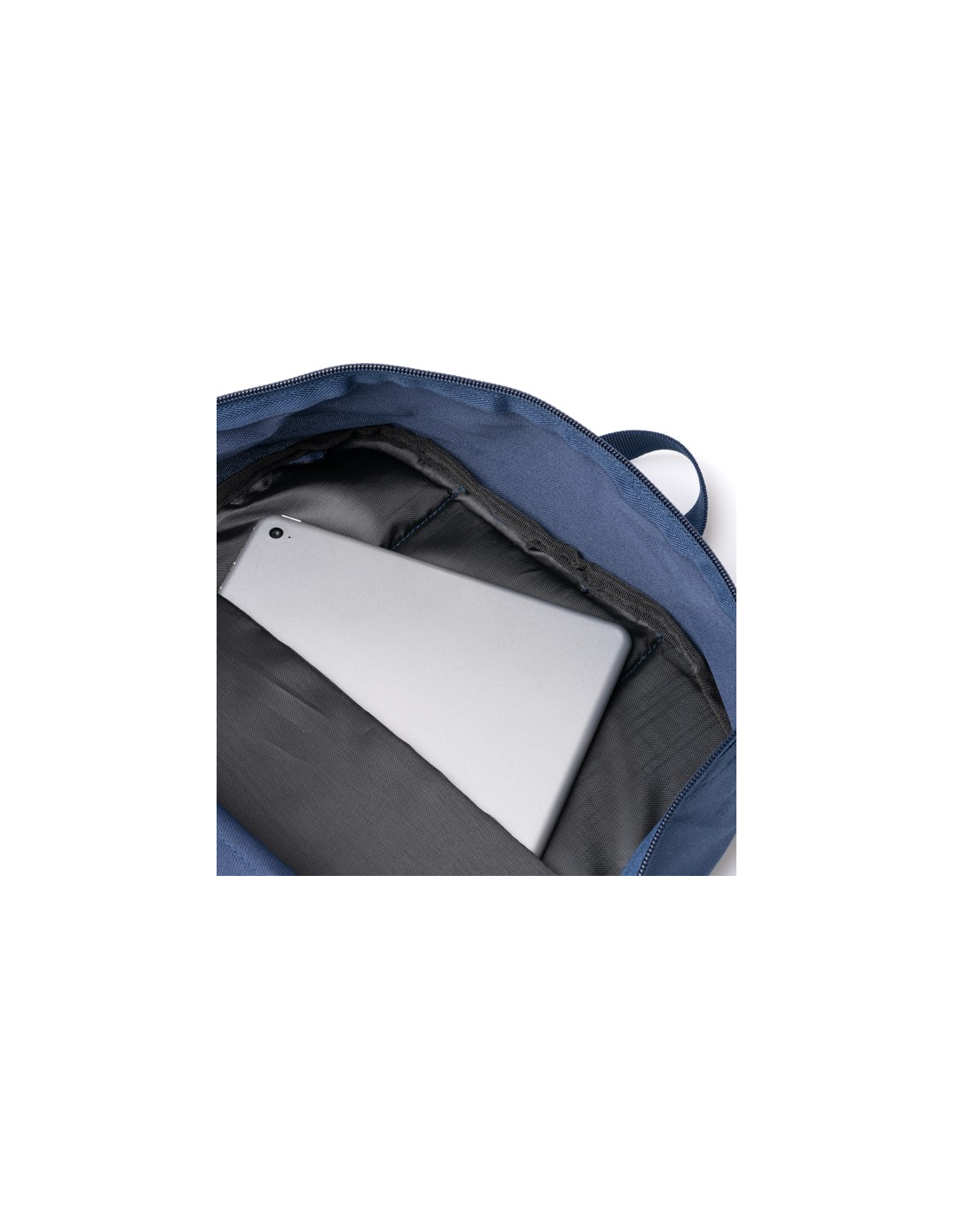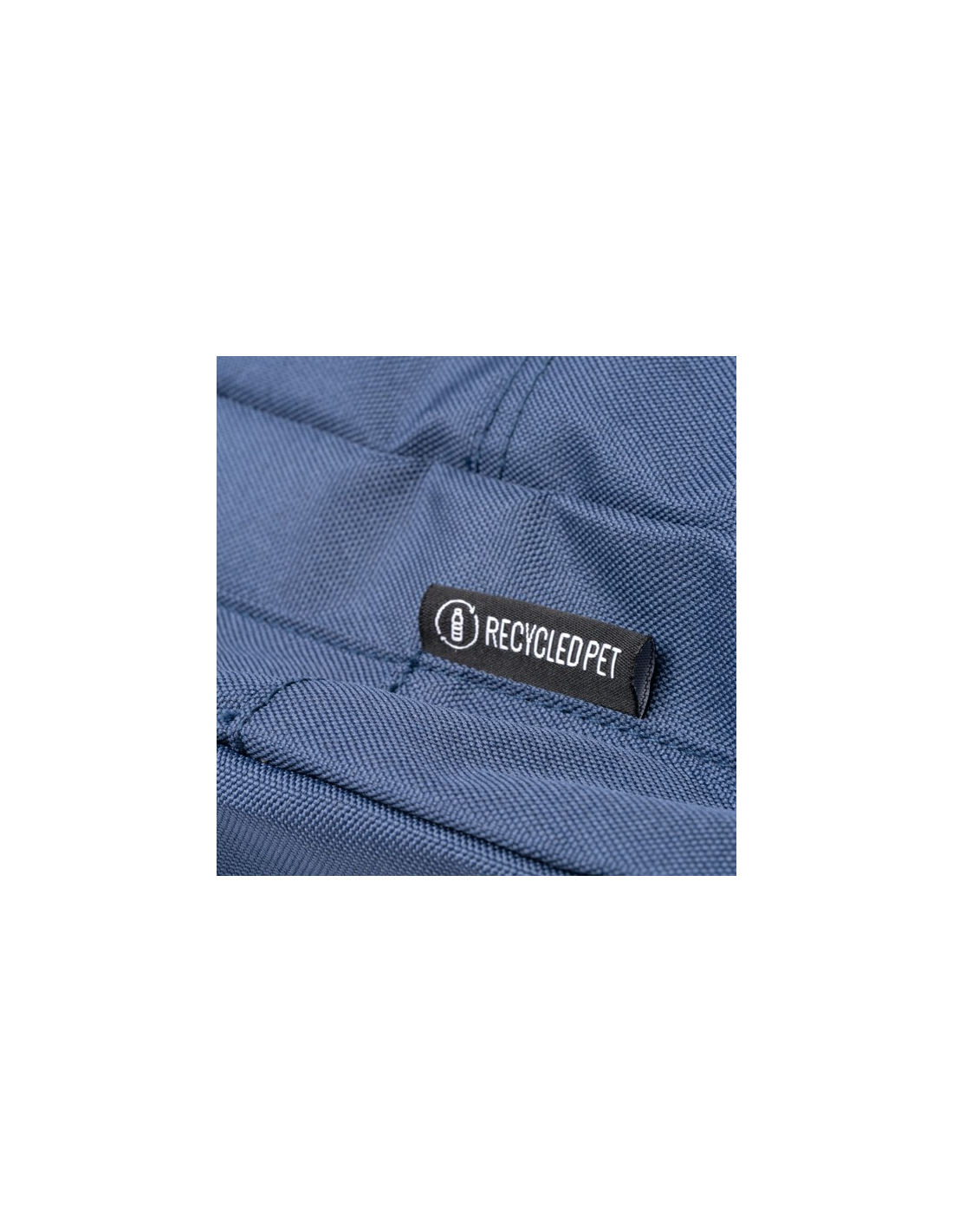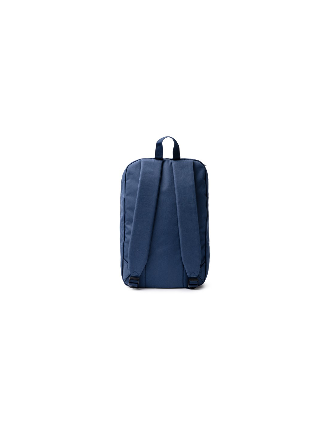 Plecak wykonany z tkaniny 600D RPET. Dwie przednie kieszenie, wewnętrzna komora z wyściełaną kieszenią na laptopa o przekątnej 15 cali. Górna kieszeń z przodu z odblaskową taśmą i wodoodpornym zapięciem na zamek błyskawiczny. Wyściełane uchwyty i plecy.