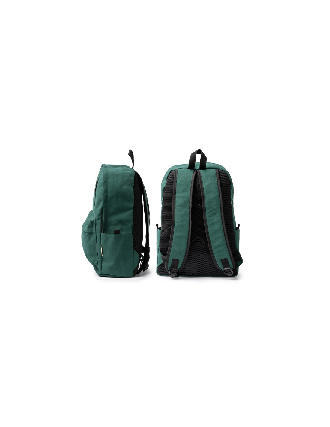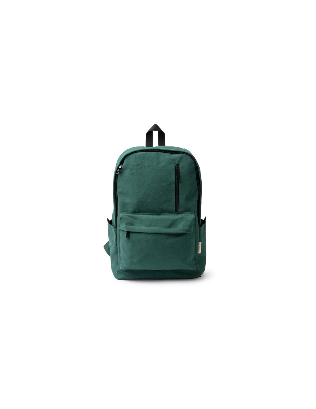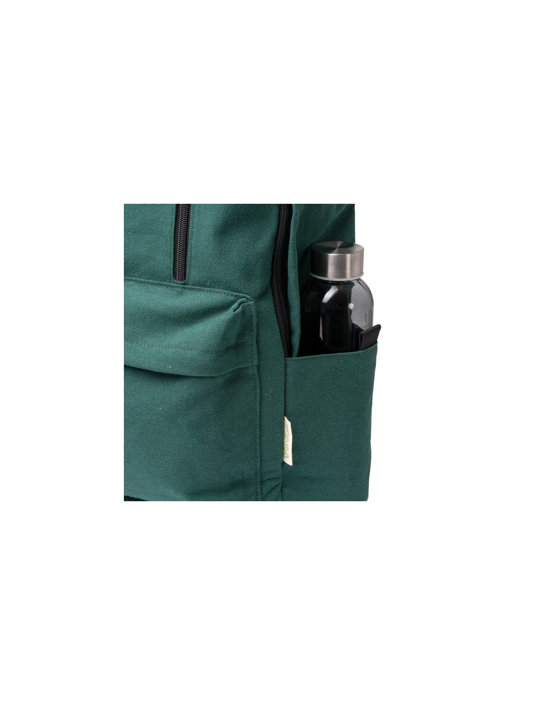 Plecak wykonany z bawełny pochodzącej z recyklingu o gramaturze 330 g/m². Duża komora główna z wewnętrzną kieszenią na laptopa o przekątnej 15 cali. 2 kieszenie zewnętrzne z zapięciem na zamek błyskawiczny oraz 2 kieszenie boczne. Wyściełane uchwyty i plecy. Pojemność: 20 l.