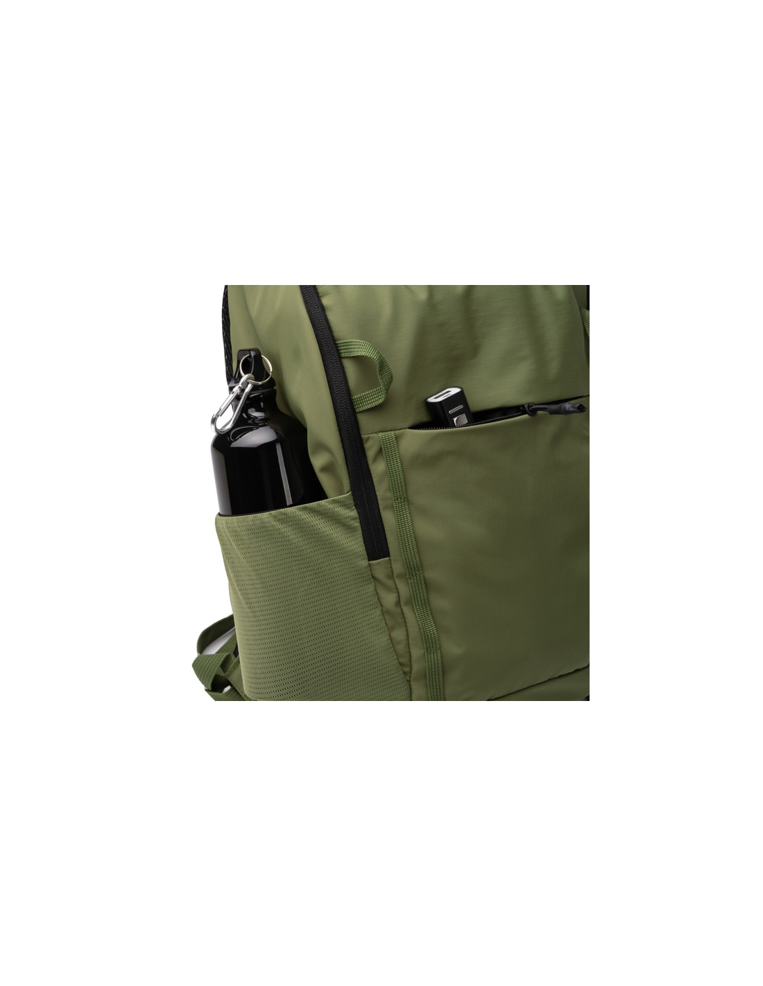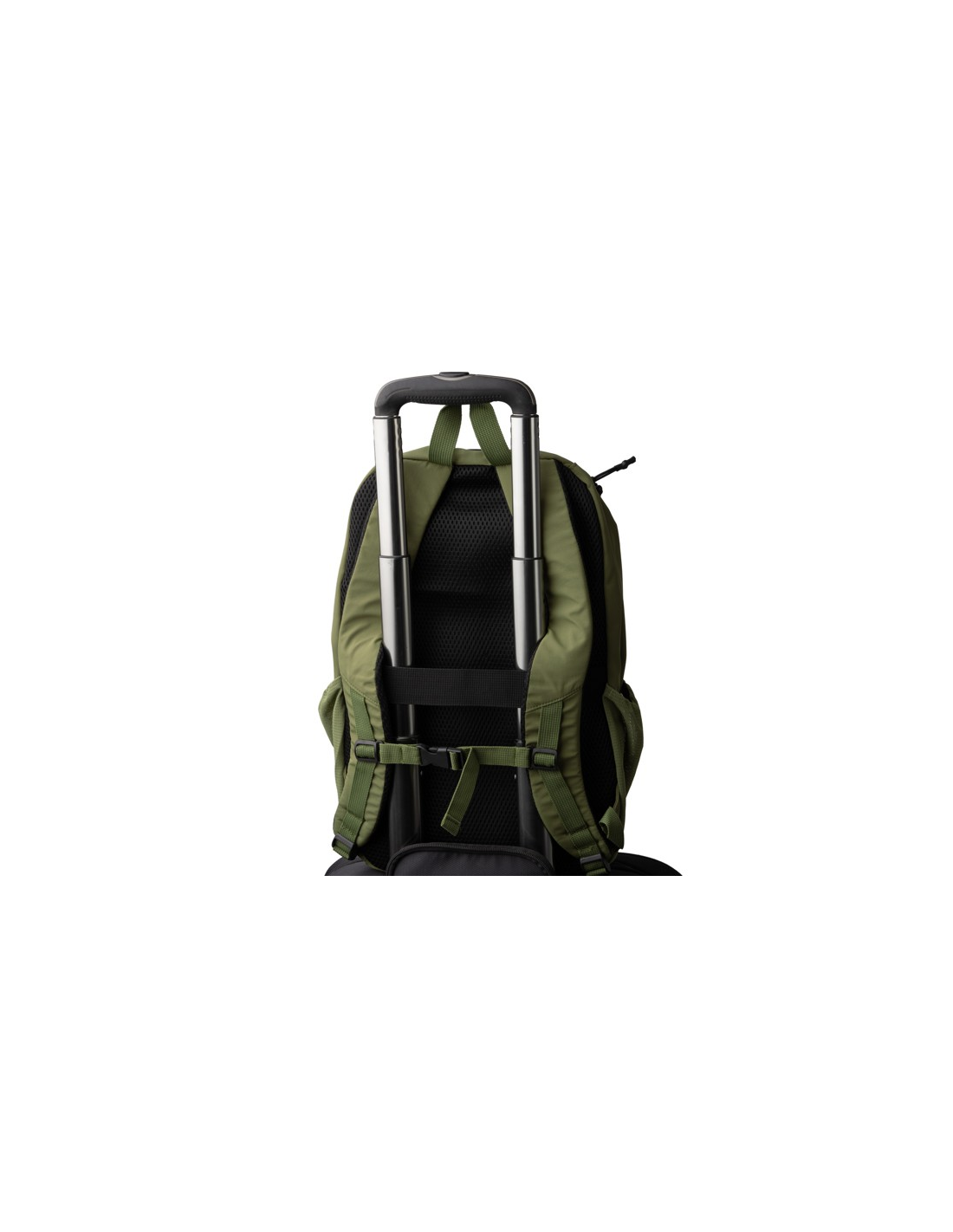Plecak wykonany z nylonu Taslon 280D. Posiada komorę główną zapinaną na podwójny zamek błyskawiczny. Wewnątrz posiada wyściełaną kieszeń na laptopa o przekątnej ekranu do 15 cali, a także mniejszą kieszeń zapinaną na zamek błyskawiczny. Posiada dwie zewnętrzne przednie kieszenie zapinane na zamek błyskawiczny oraz dwie boczne kieszenie z siatki z gumką specjalnie zaprojektowane do przechowywania butelek, razem z korpusem plecaka. Jego szelki i plecy są wyściełane dla większego komfortu. Ponadto zawiera boczny pasek do wózka.