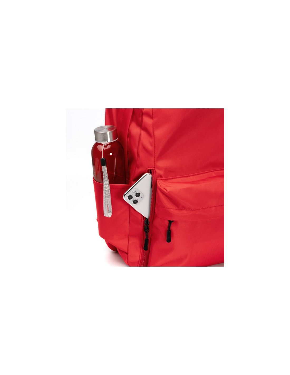Plecak wykonany z nylonu pochodzącego z recyklingu. Komora główna posiada kieszeń do przenoszenia urządzeń, takich jak laptop o przekątnej ekranu do 15 cali. Dwie boczne kieszenie służące do transportu przedmiotów, takich jak butelki z wodą. Dwie przednie komory z poziomym i pionowym zapięciem na zamek błyskawiczny. Dopasowane szwy w kolorze plecaka oraz wyściełane szelki i plecy dla większego komfortu.