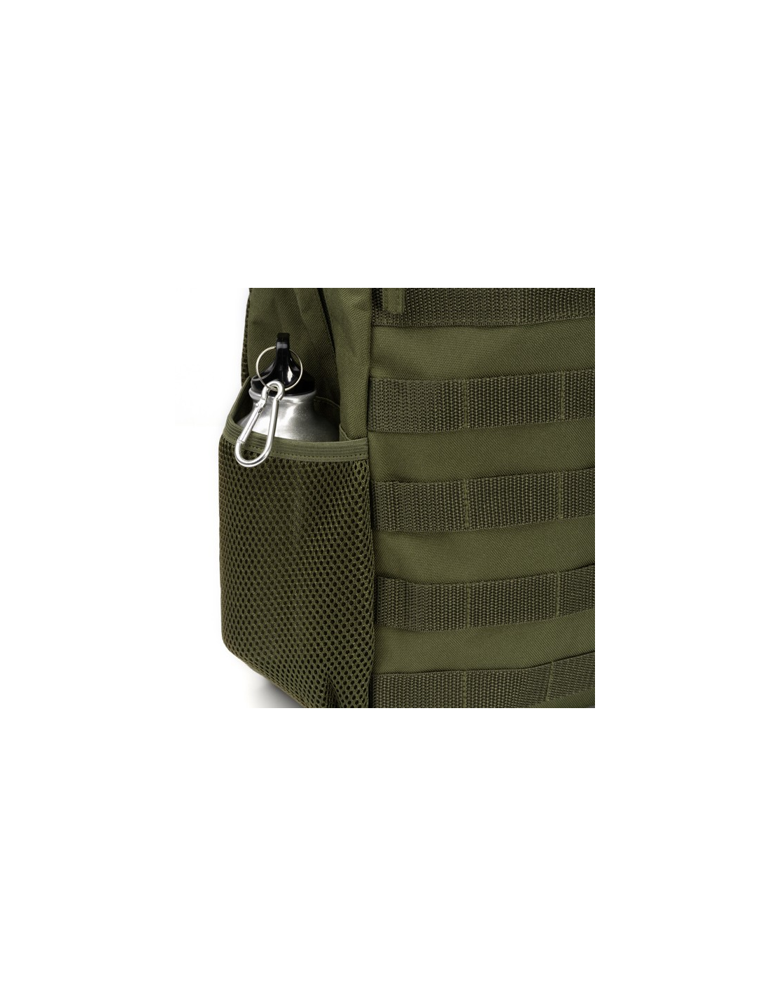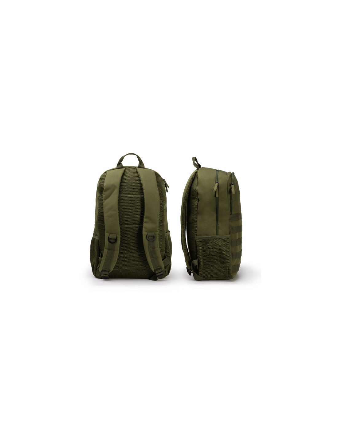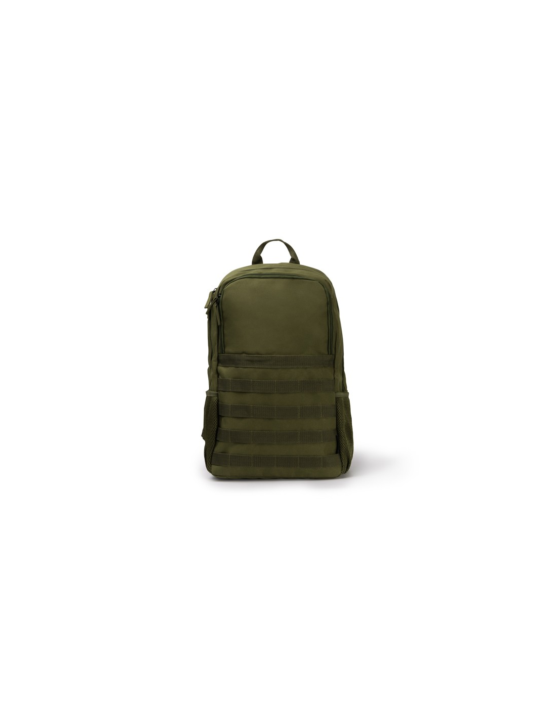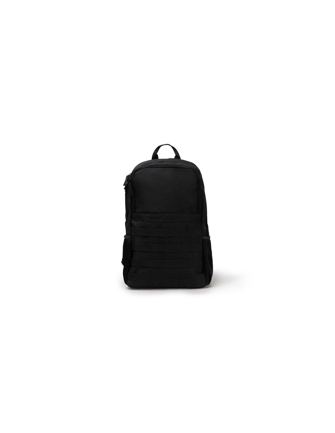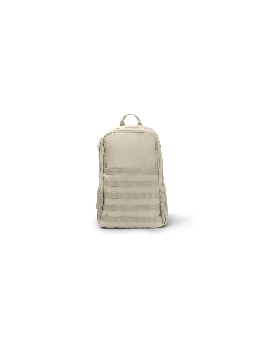 Plecak wykonany z wytrzymałego poliestru RPET 900D z wyściełanymi plecami. Komora główna posiada wyściełaną kieszeń na laptopa o przekątnej ekranu do 15 cali oraz drugą do przenoszenia małych i średnich przedmiotów. Przednia kieszeń i dwie kieszenie boczne z mikroperforacjami z karabińczykiem zapewniającym dopasowanie i bezpieczeństwo.
