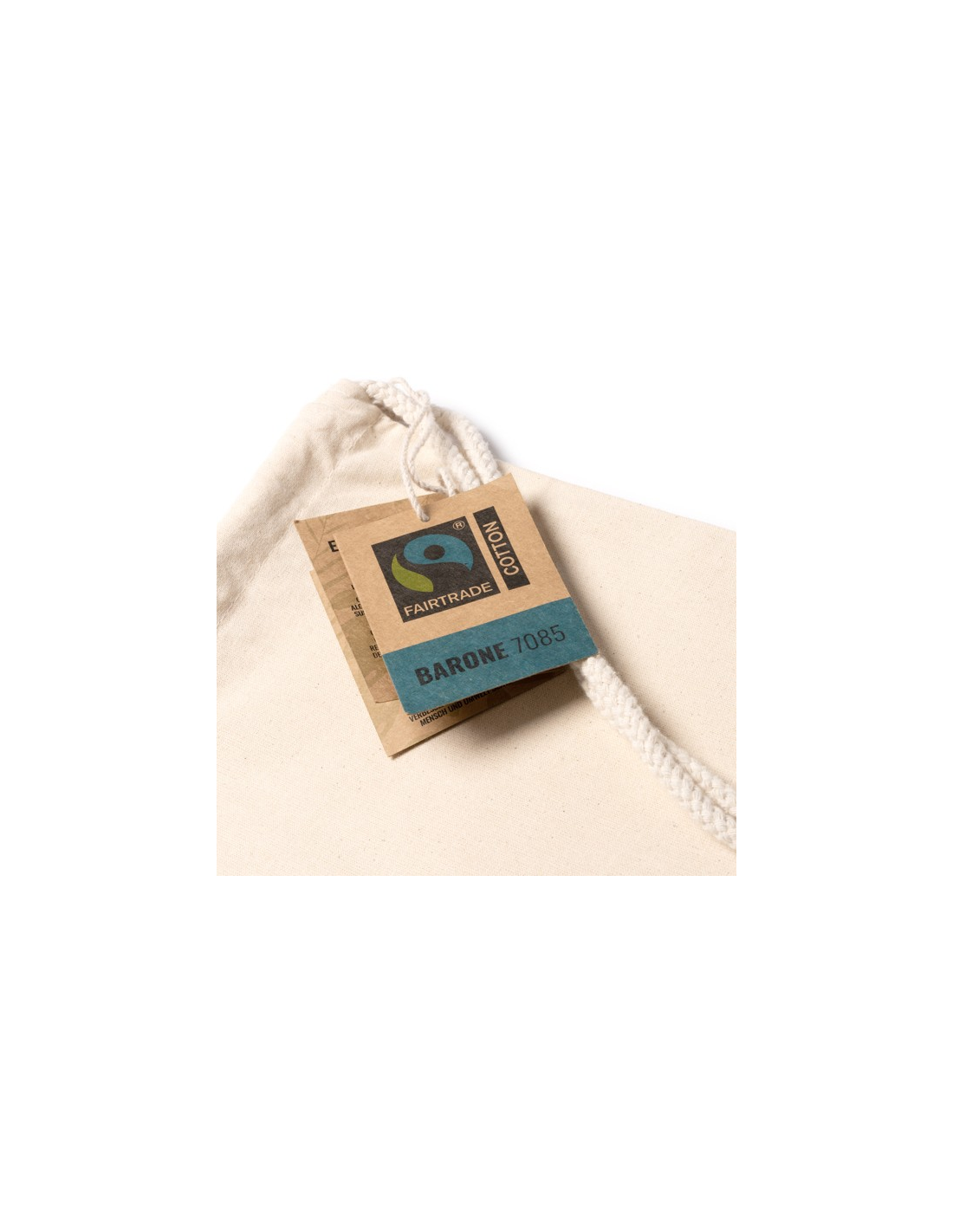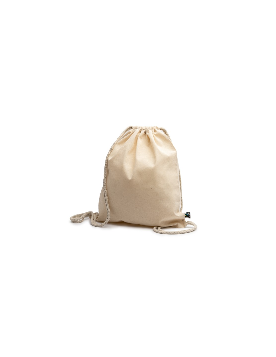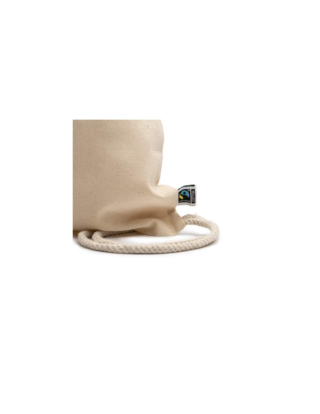 Torba ze ściąganymi uszami wykonana w 100% z bawełny Fairtrade (gramatura: 180 g/m2), z pasującymi sznurkami.