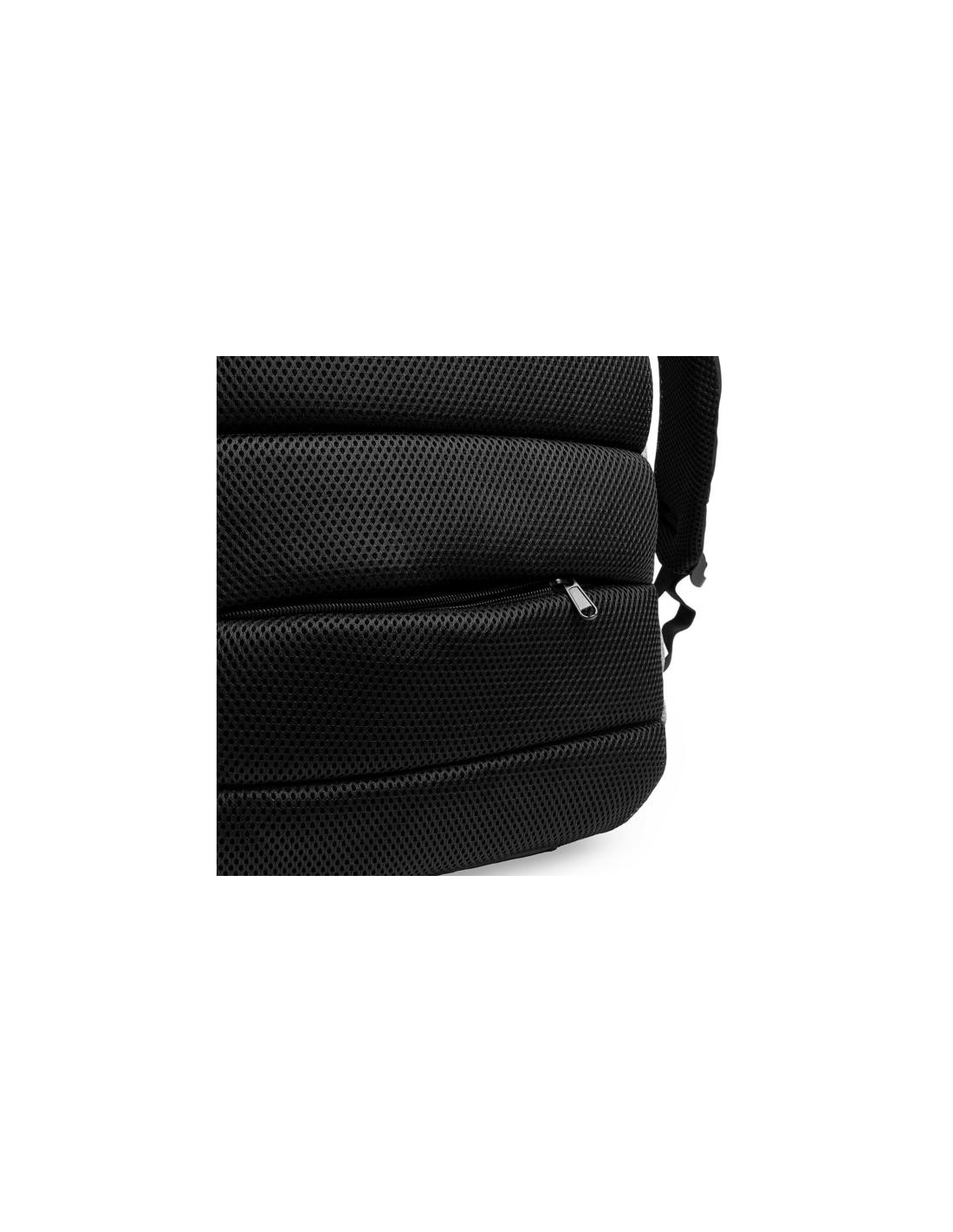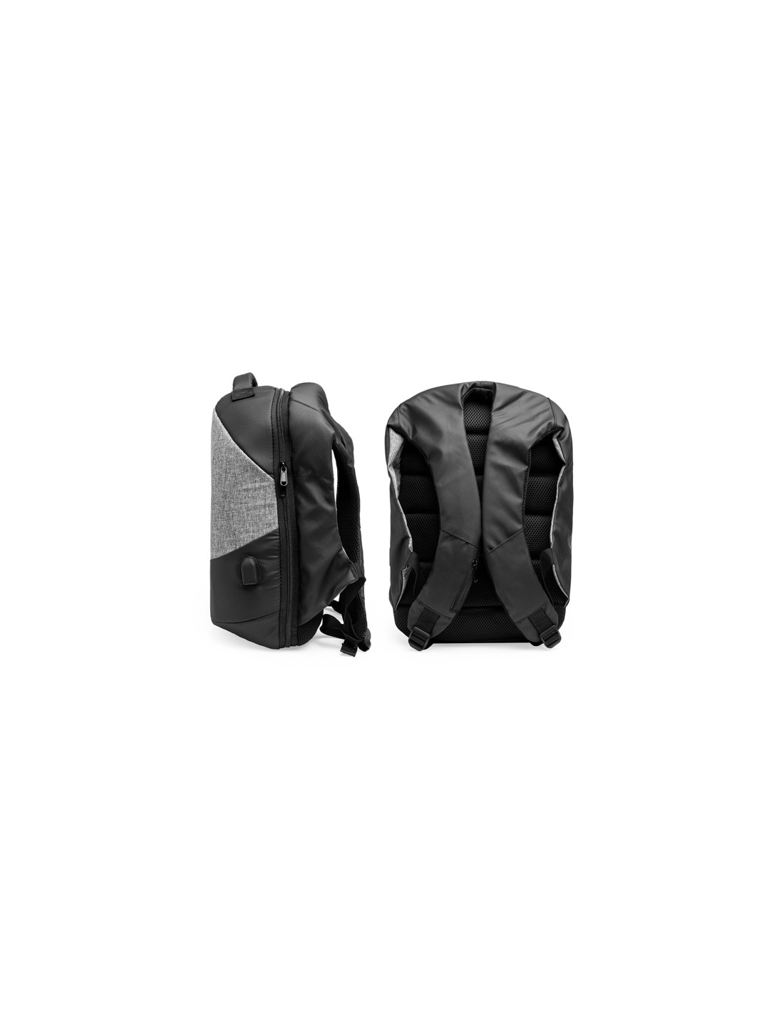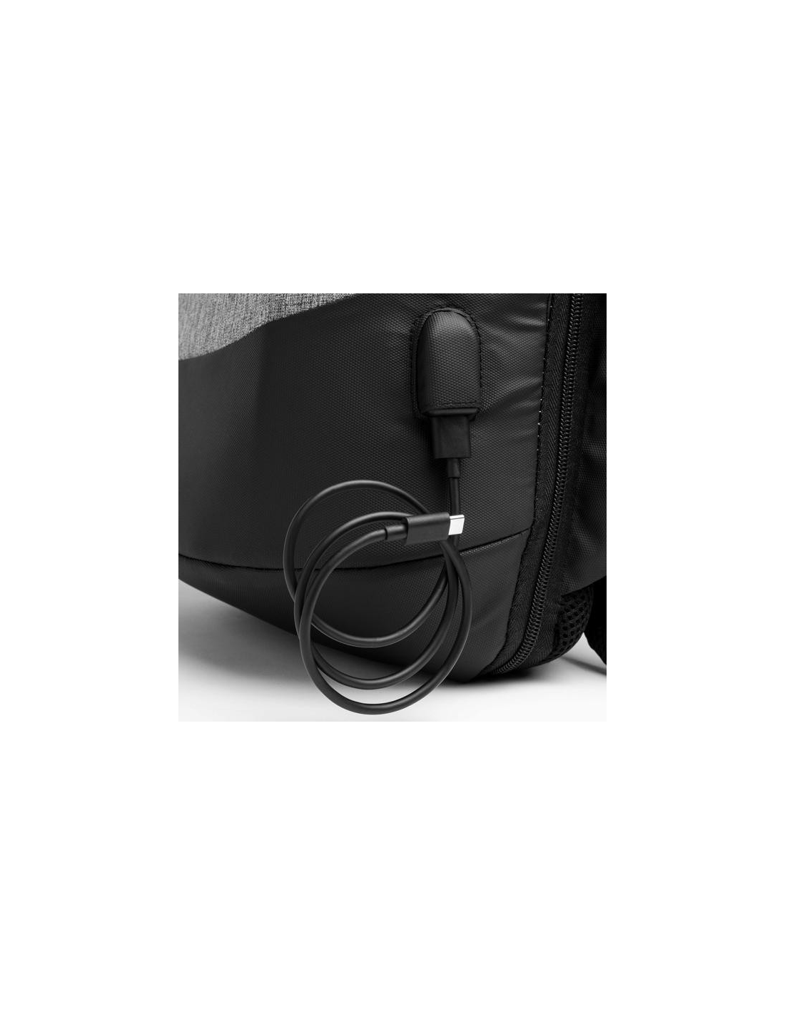 Plecak antykradzieżowy wykonany z nylonu. Komora z wyjściem USB do podłączenia Power Banku (nie należy do wyposażenia). Zawiera kabel micro USB. Wielofunkcyjna kieszeń na prawym pasku. Główna kieszeń z dwiema wyściełanymi przegrodami, idealna na laptopa i tablet.