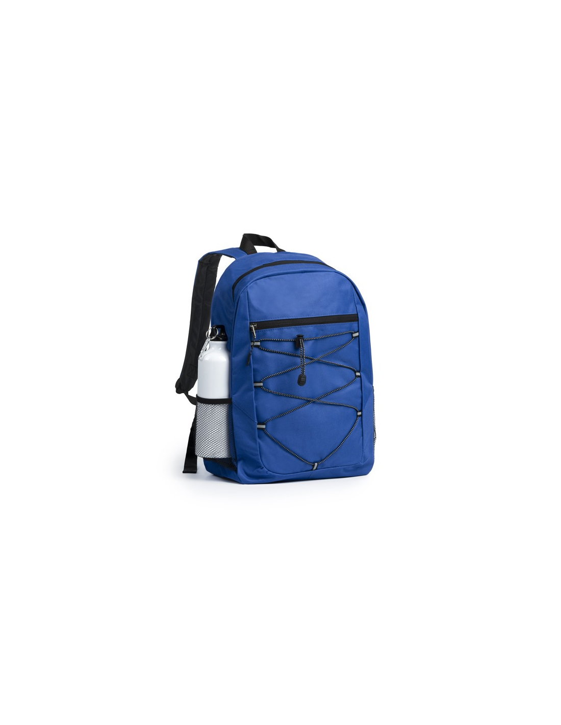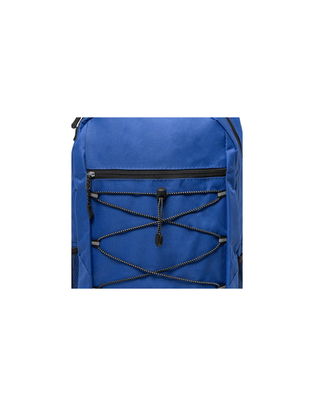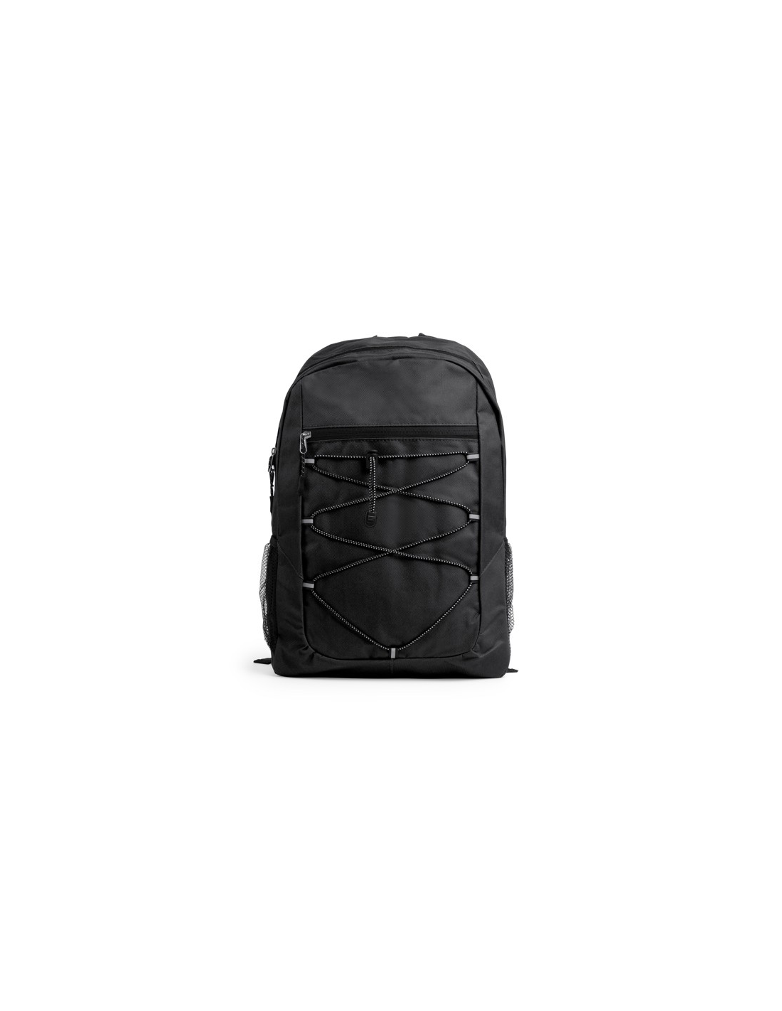 Sportowy plecak wykonany z poliestru 600D. Kieszeń główna i przednia z zapięciem na zamek błyskawiczny. Elastyczny ściągacz z przodu i boczne kieszenie wykonane z siatki. Wyściełane plecy i szelki.