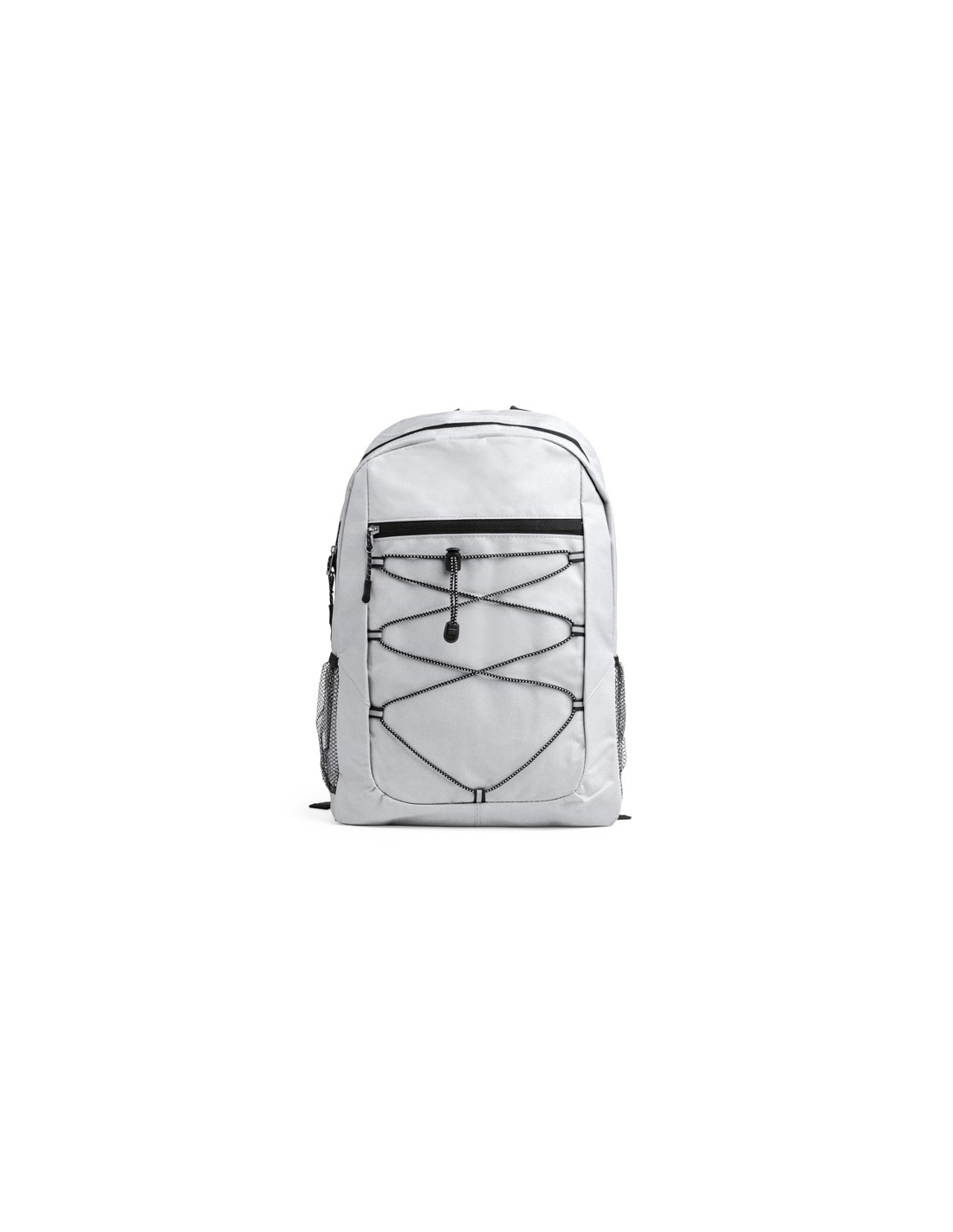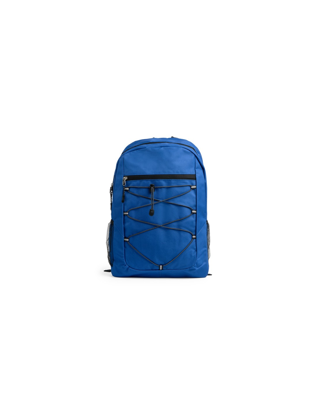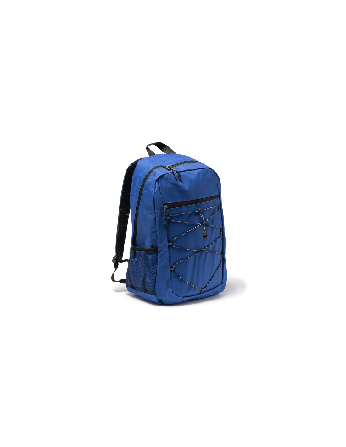 Sportowy plecak wykonany z poliestru 600D. Kieszeń główna i przednia z zapięciem na zamek błyskawiczny. Elastyczny ściągacz z przodu i boczne kieszenie wykonane z siatki. Wyściełane plecy i szelki.