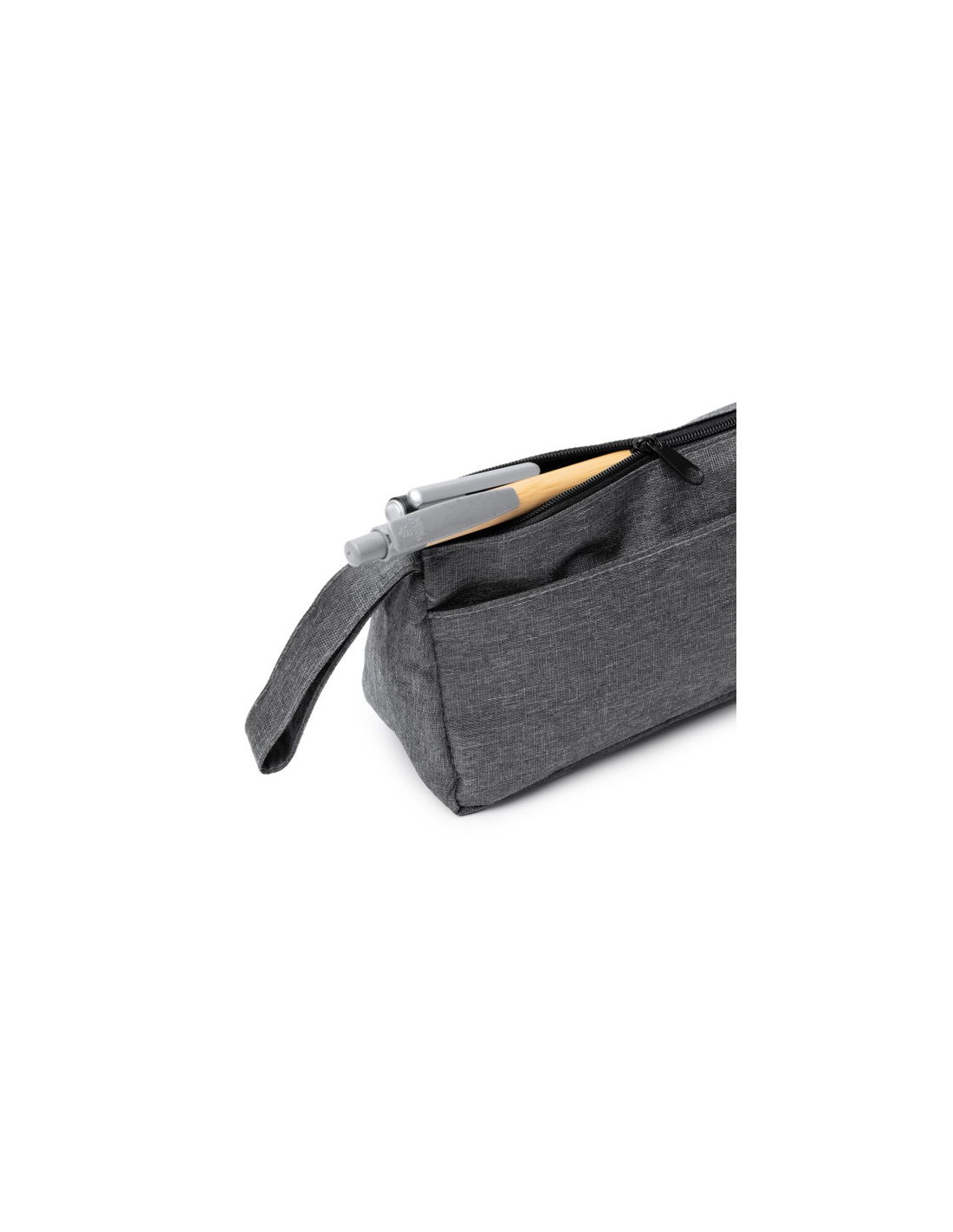 Kosmetyczka wykonana z tkaniny 300D RPET. Komora główna i kieszeń zewnętrzna z zapięciem na zamek błyskawiczny. Praktyczny uchwyt do przenoszenia w zestawie.