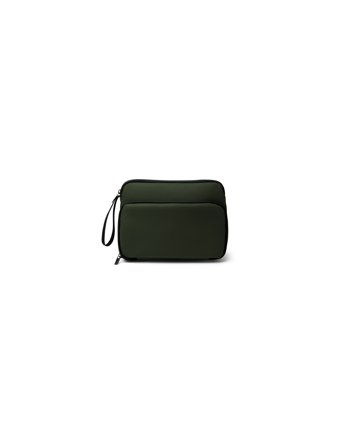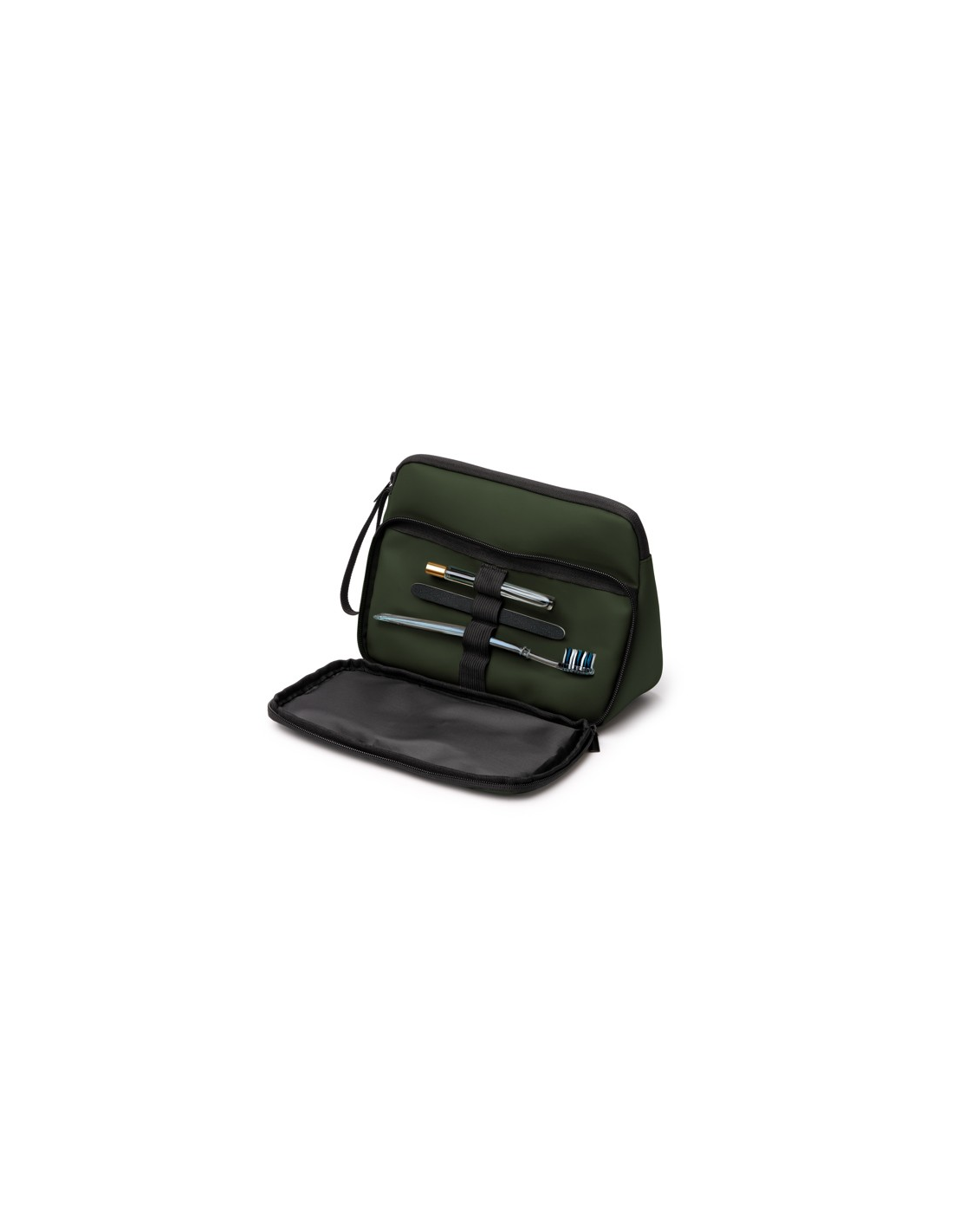 Kosmetyczka wykonana z miękkiej skóry PU w kształcie trójkąta. Komora główna z wewnętrznymi kieszeniami z siatki. Przednia kieszeń z podwójnym zamkiem błyskawicznym i pełnym otwarciem z elastycznymi separatorami do klasyfikacji różnych przedmiotów. Boki wspomnianej kosmetyczki są wyściełane, co sprawia, że można w niej bezpiecznie przechowywać i chronić artykuły higieniczne i kosmetyki. Posiada również uchwyt do przenoszenia, aby zabrać ją w dowolne miejsce.