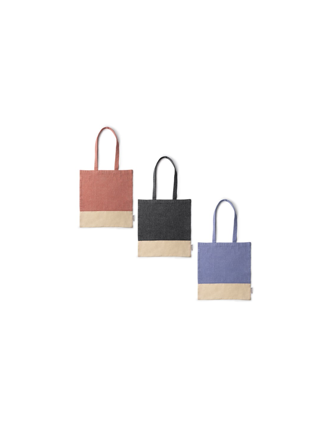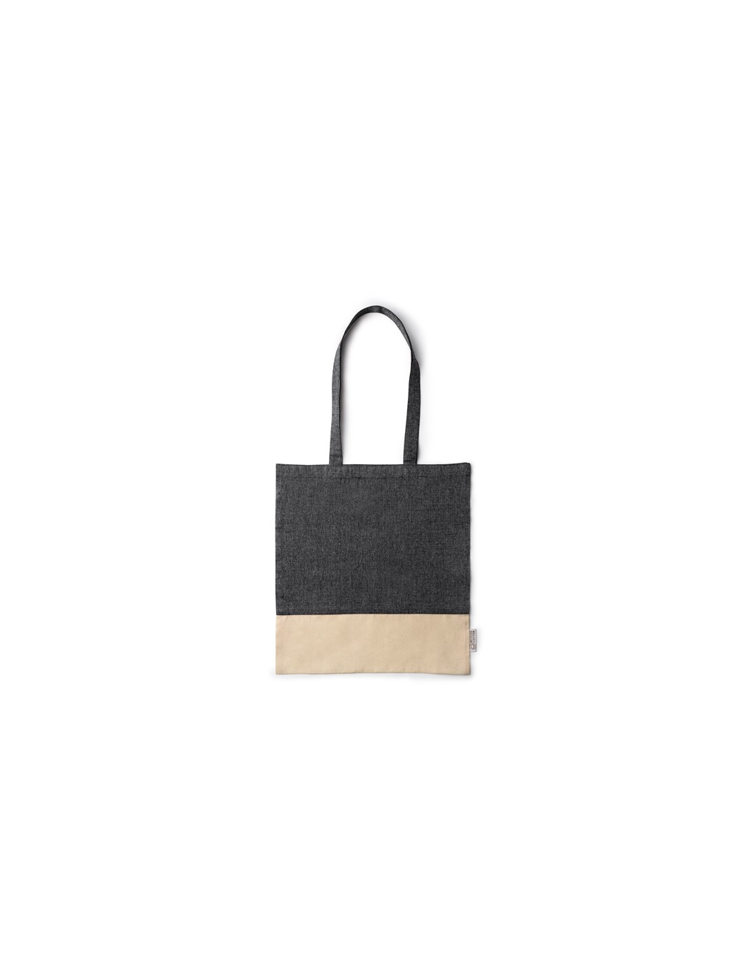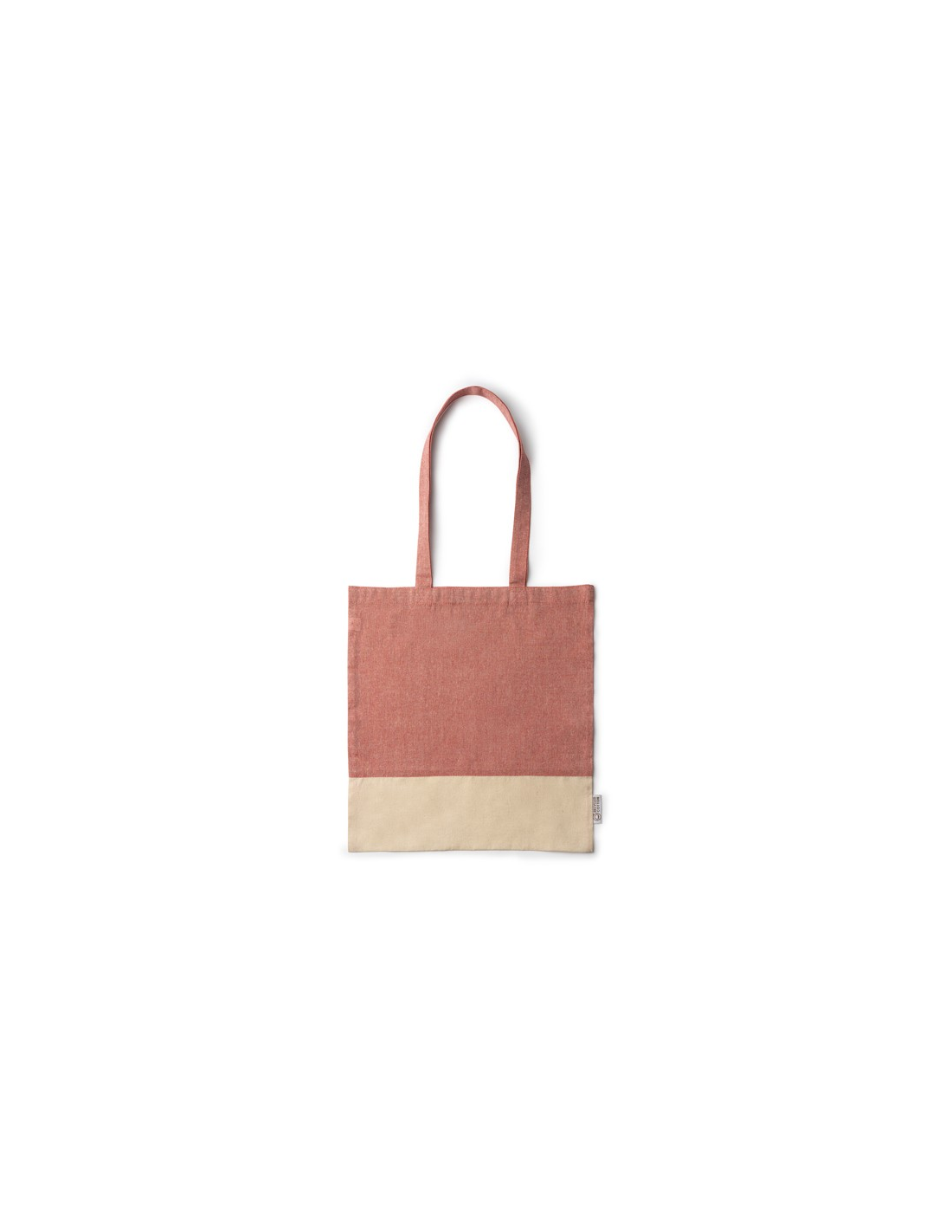 Torba wykonana z bawełny pochodzącej z recyklingu o gramaturze 120 g/m2 z wrzosowym wykończeniem. Wzmocnione uchwyty o długości 70 cm.