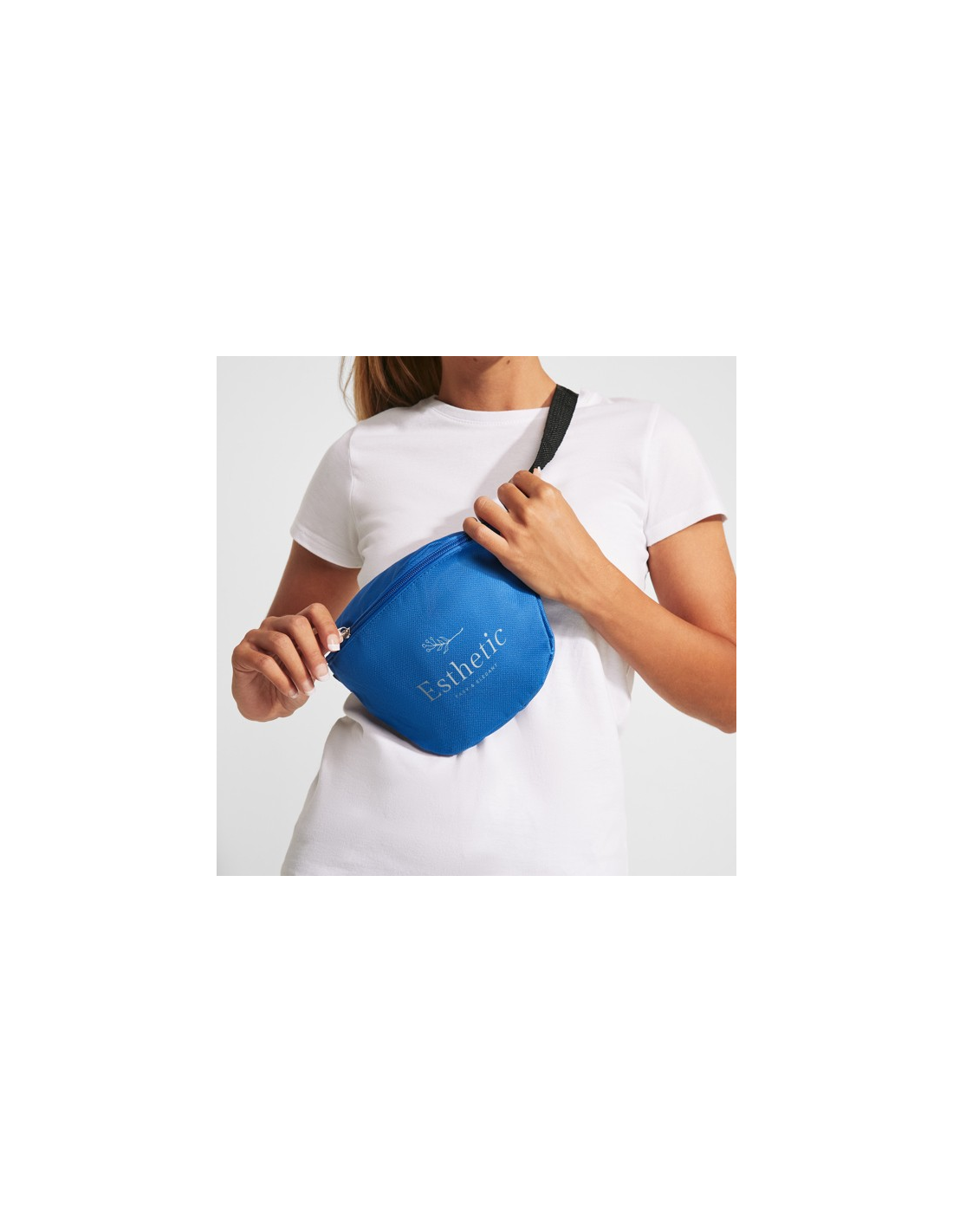 Saszetka z jedną kieszenią z przodu i jedną z tyłu. Suwaki i ściągacze w tym samym kolorze co plecak. Regulacja taśmy i klamry w kolorze czarnym.